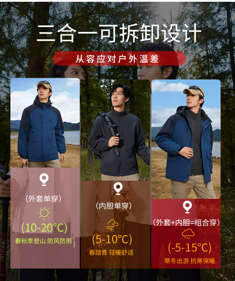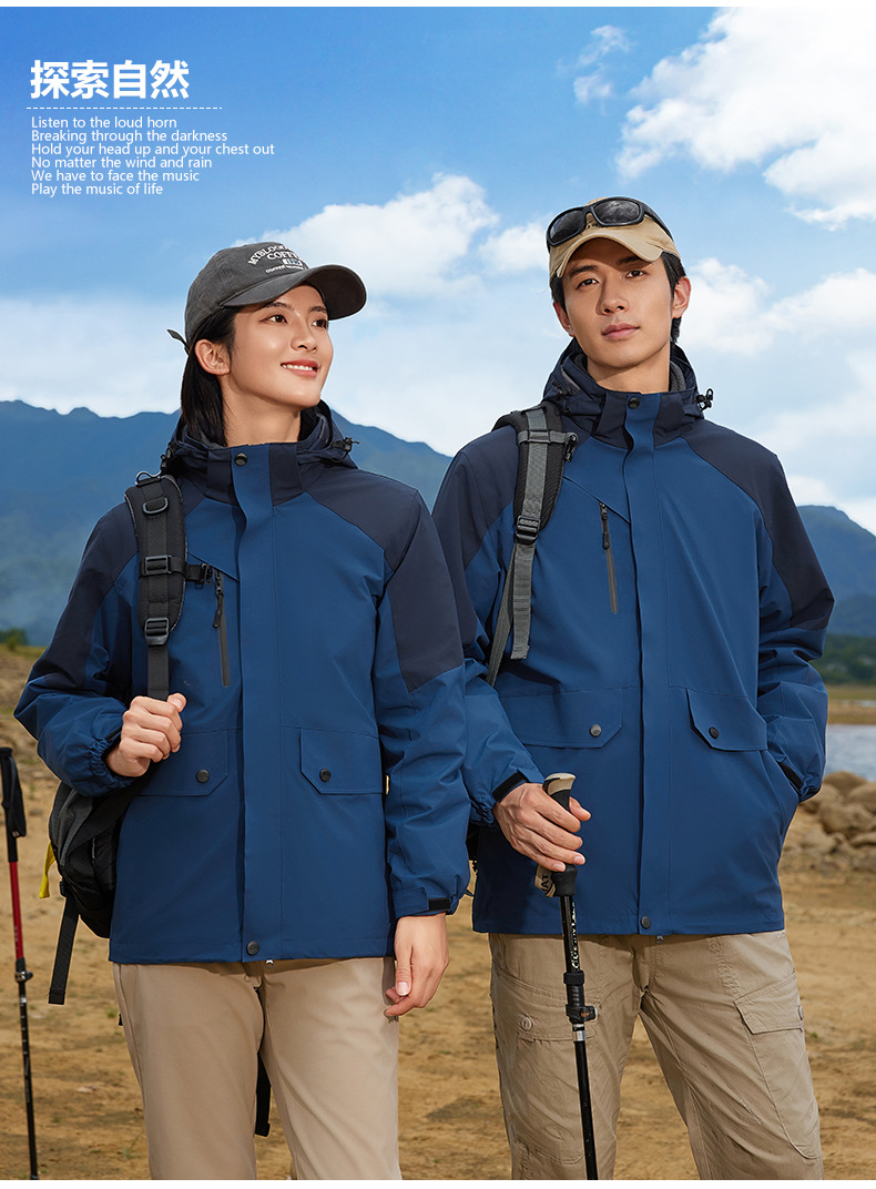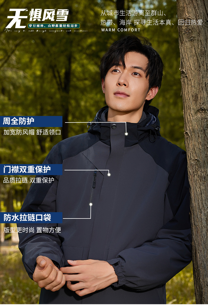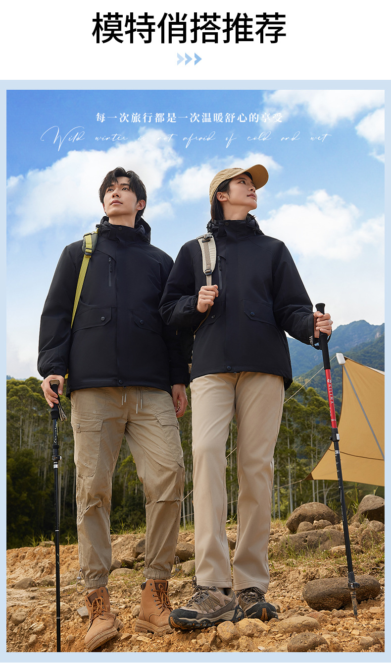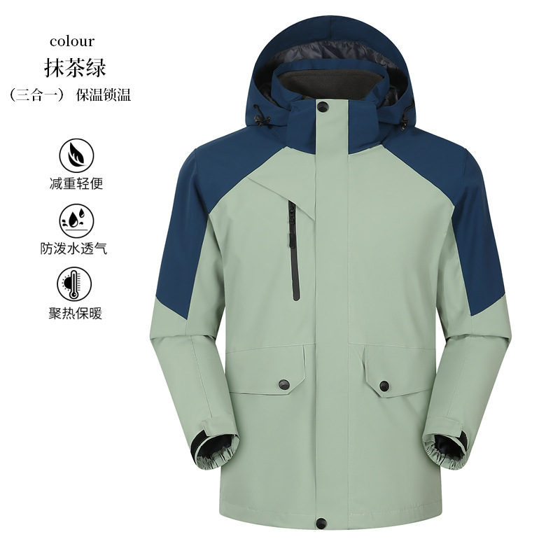 남성과 여성을위한 3 대 1 겨울 옷 투피스 탈착식 방풍 방수 따뜻한 두꺼운 스키 작업복스토어 가기