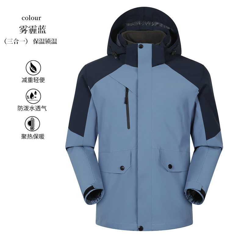 남성과 여성을위한 3 대 1 겨울 옷 투피스 탈착식 방풍 방수 따뜻한 두꺼운 스키 작업복