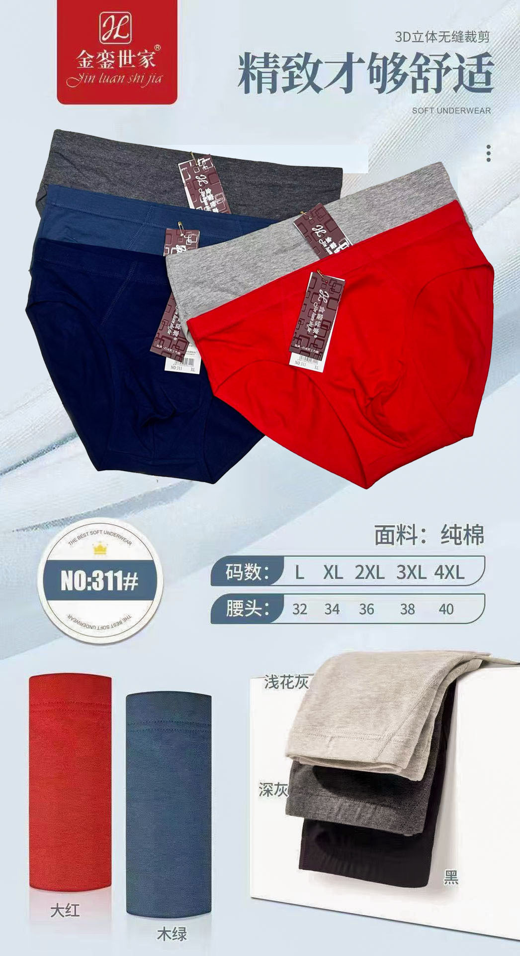 本店所售男士包装底裤(冰丝花色款除外)均按一包10条整装出售,不拆包!一包含4-5个 不同的颜色。