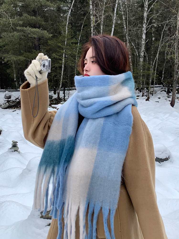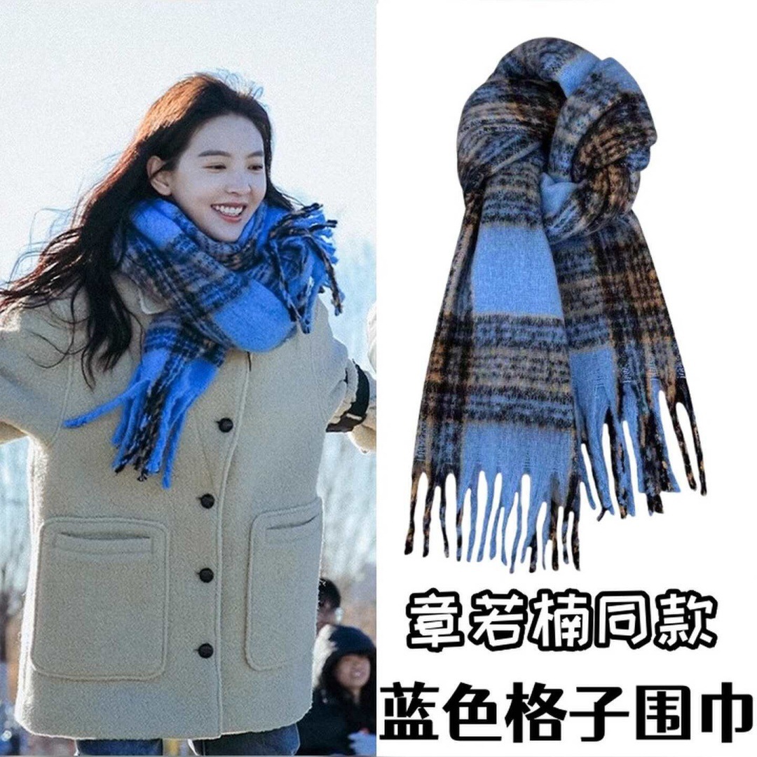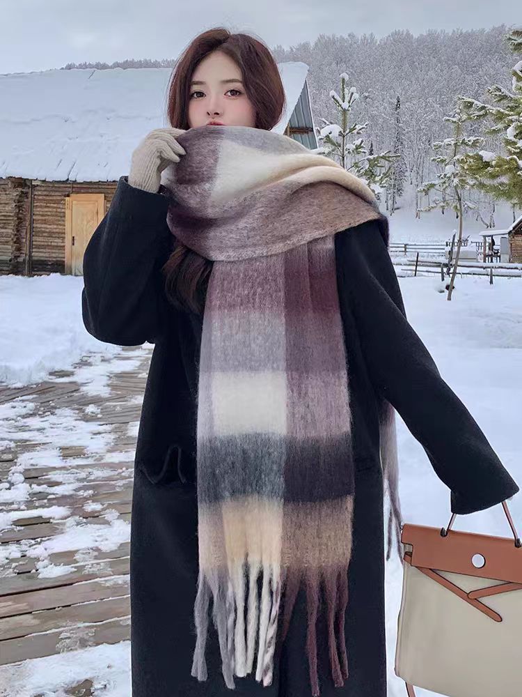 2024 가을 · 겨울 신형 모헤어 격자 두꺼운 스카프 분위기 고급 따뜻한 남녀 복고풍 올매치스토어 가기