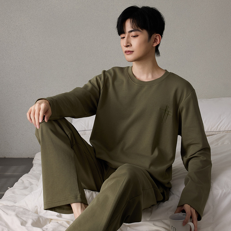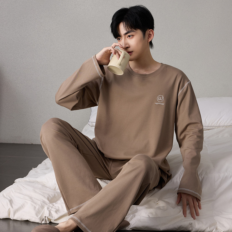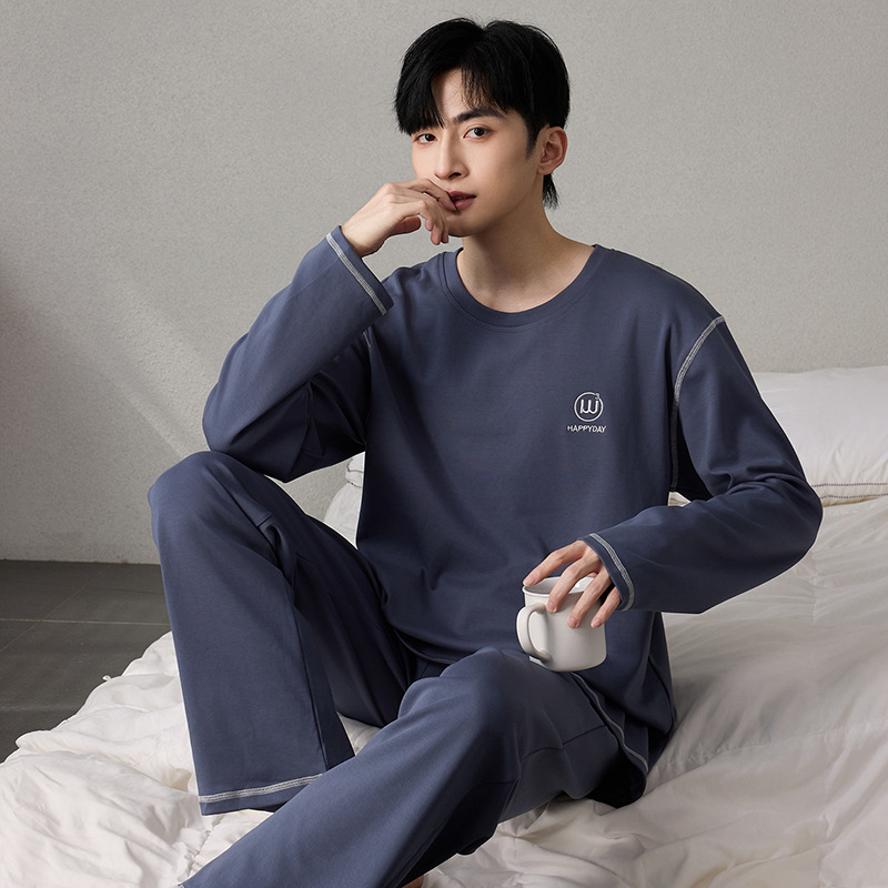 순면 남성 잠옷 긴팔 긴바지 가을 겨울 순면 홈웨어 남성용 청년 성인 세트 외출복 가능스토어 가기
