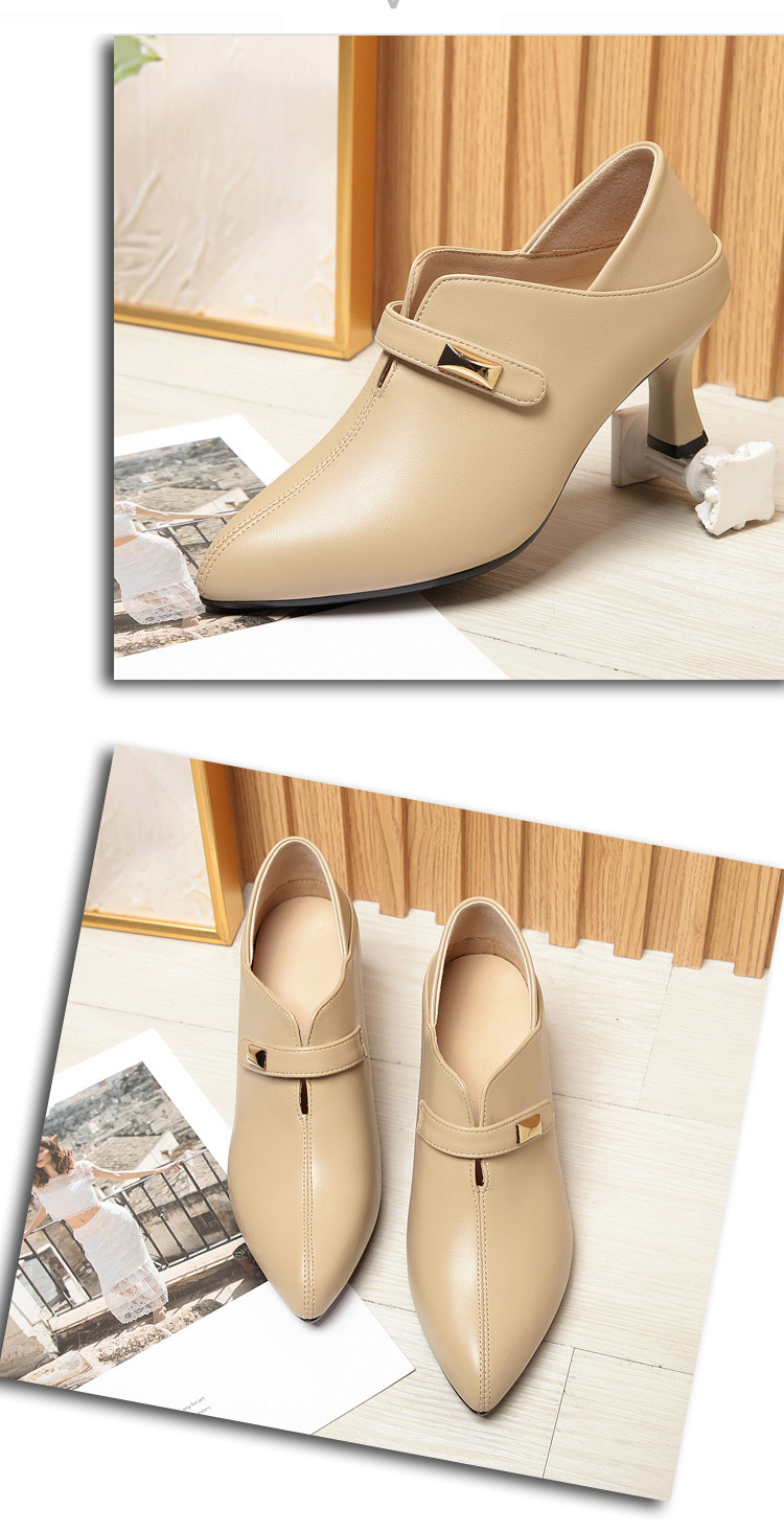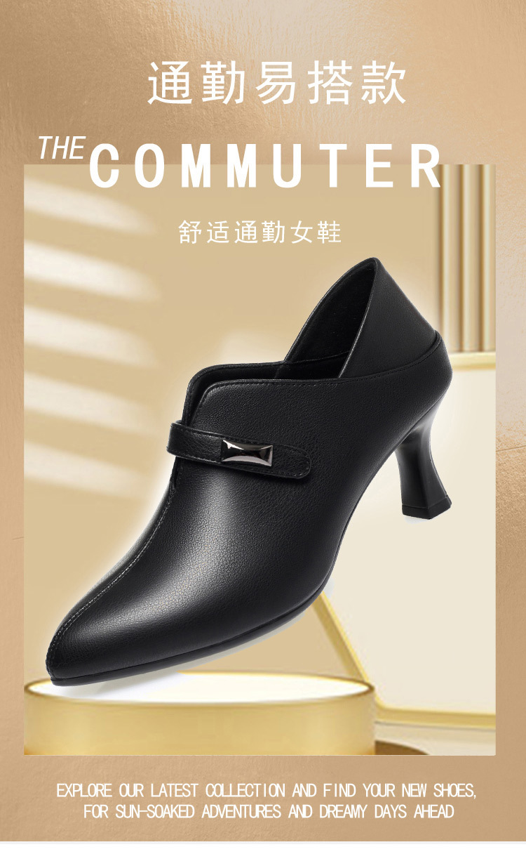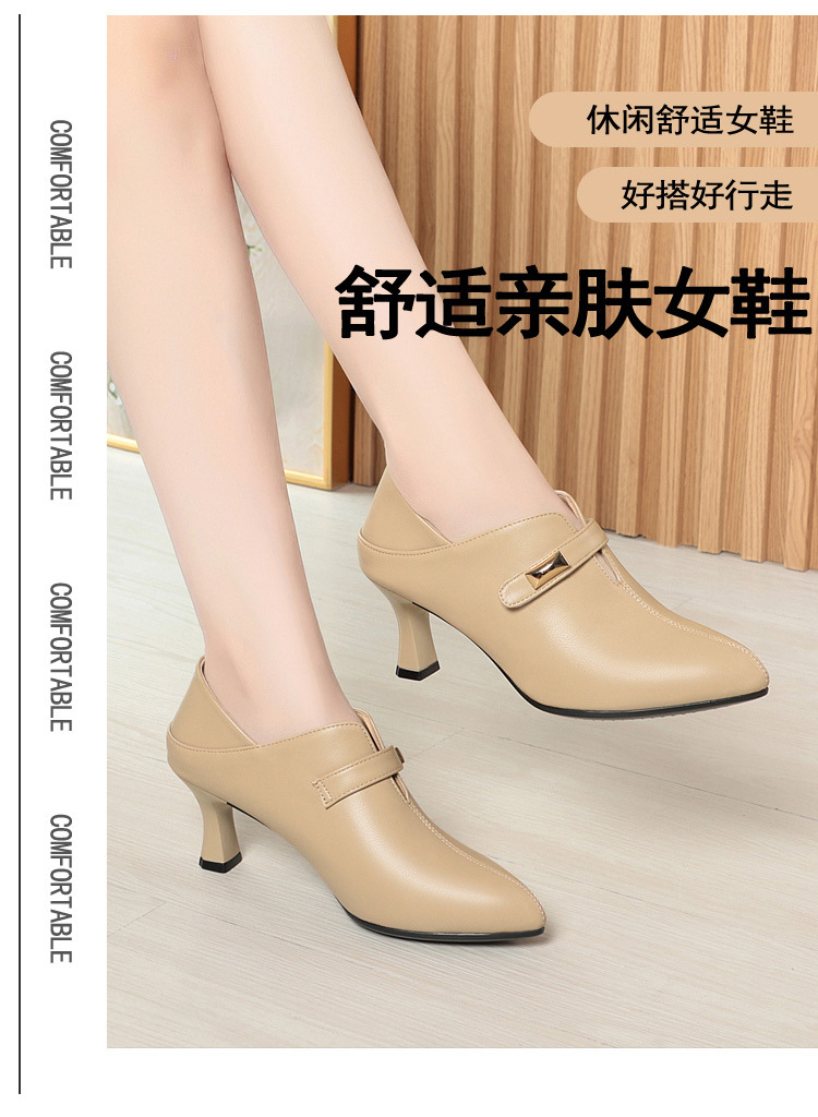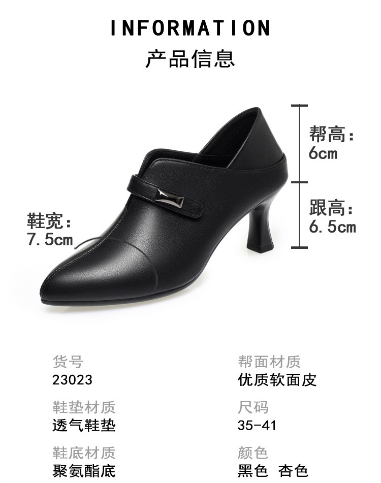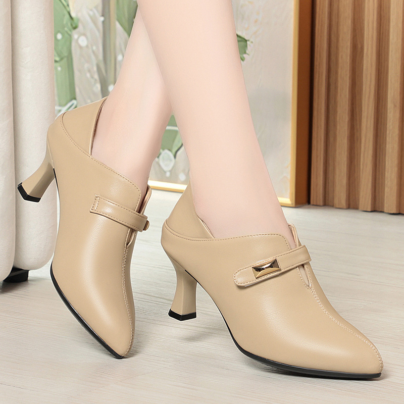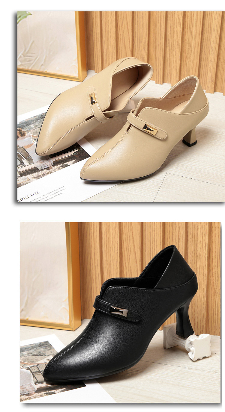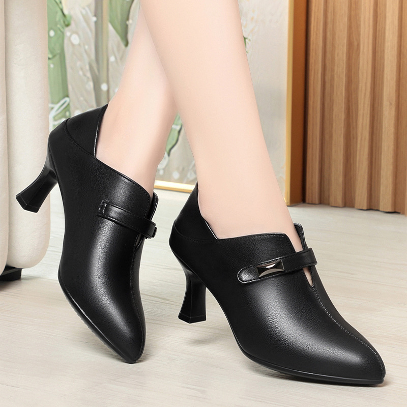 거친 발 뒤꿈치 깊은 입 신발 여성의 봄과 가을 새로운 부드러운 가죽 기질 뾰족한 하이힐 여성 신발 전문 작업 신발 머리카락 세대스토어 가기