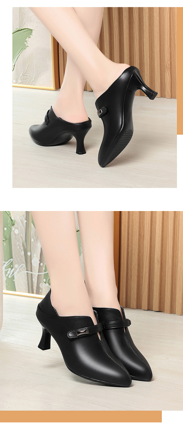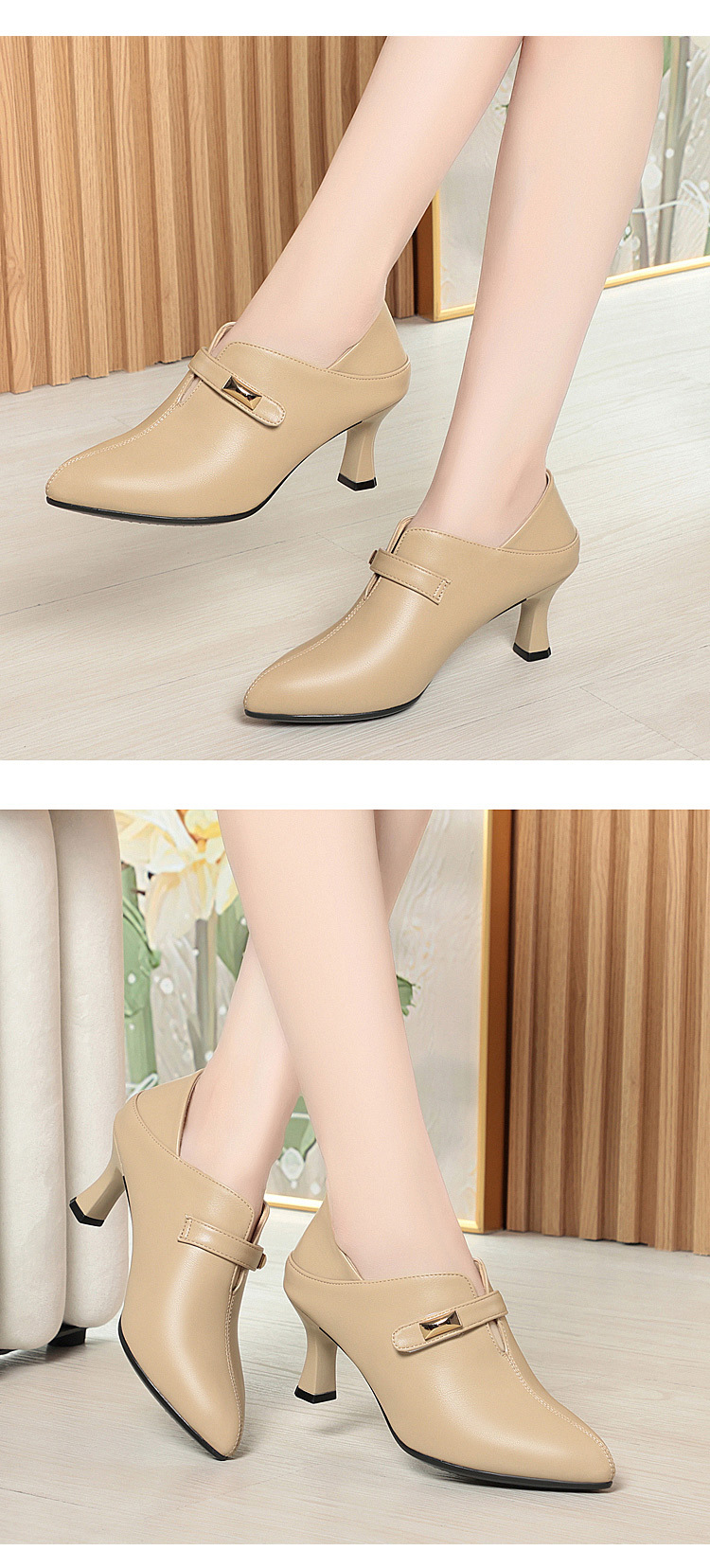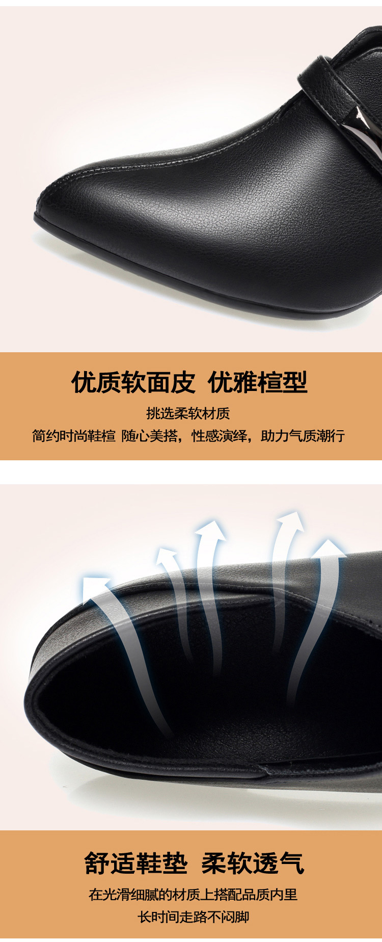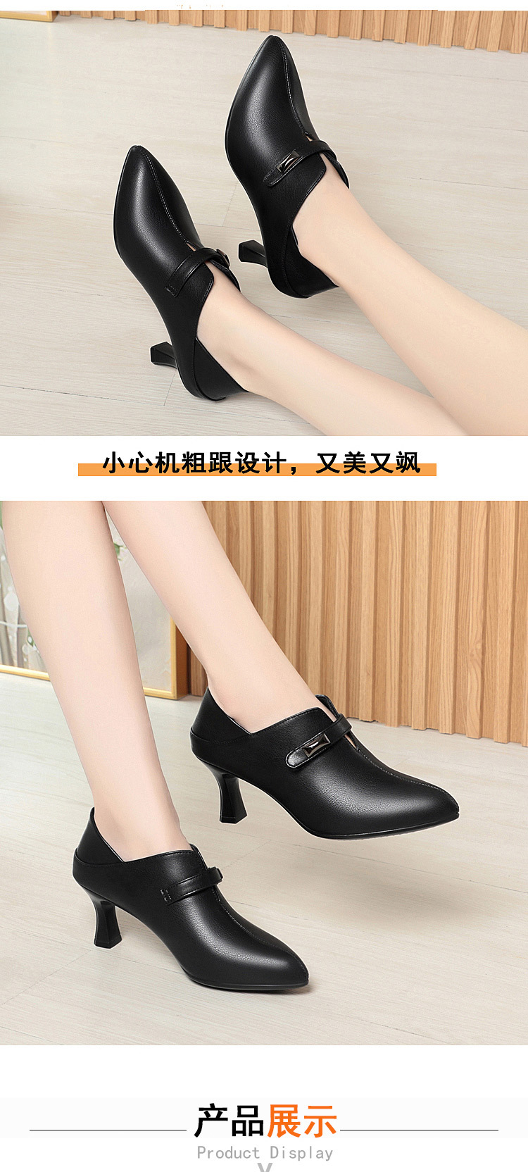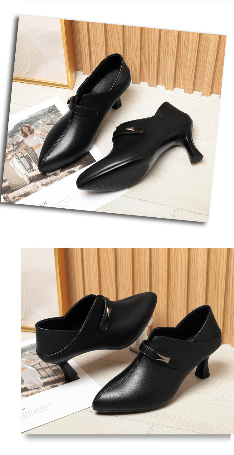 거친 발 뒤꿈치 깊은 입 신발 여성의 봄과 가을 새로운 부드러운 가죽 기질 뾰족한 하이힐 여성 신발 전문 작업 신발 머리카락 세대스토어 가기