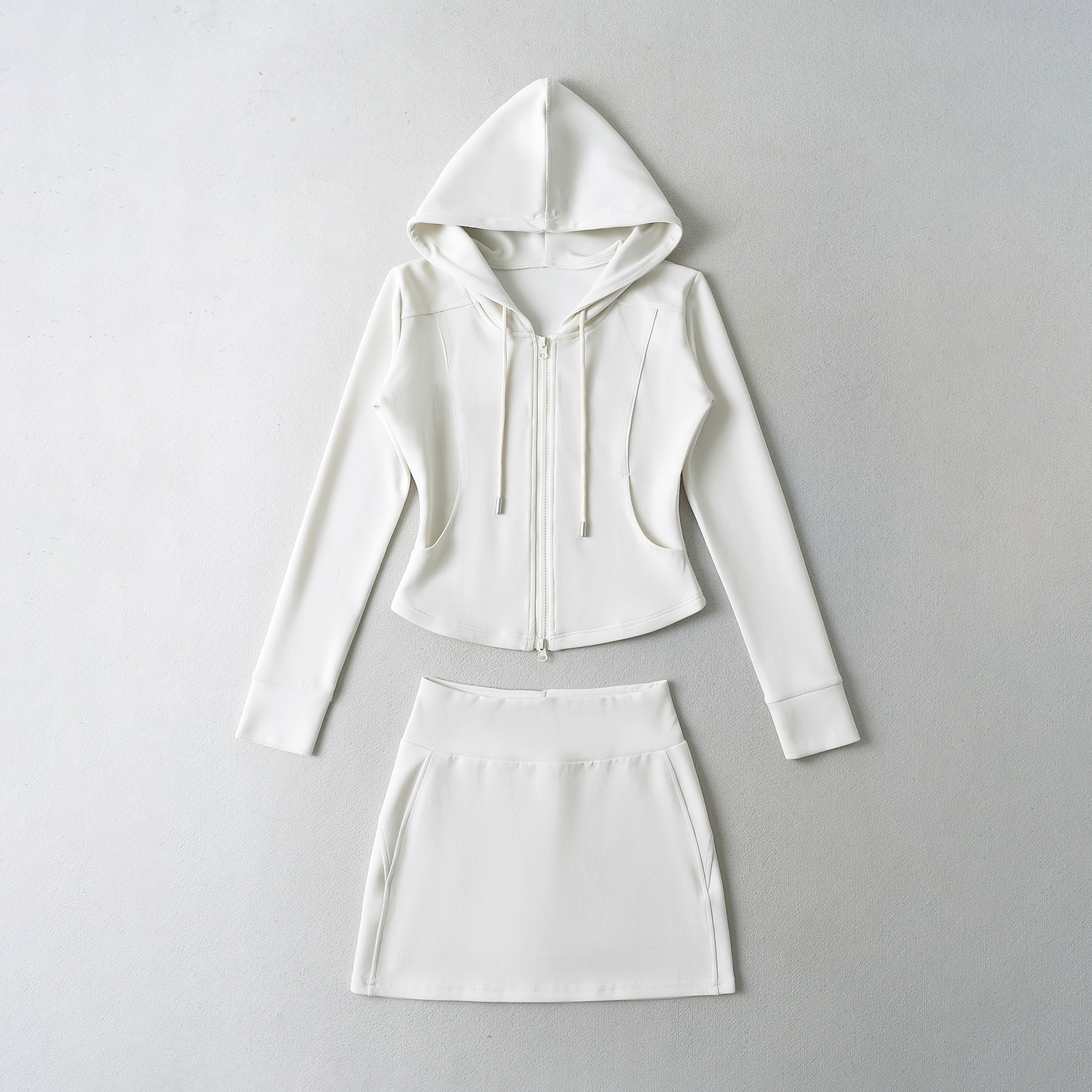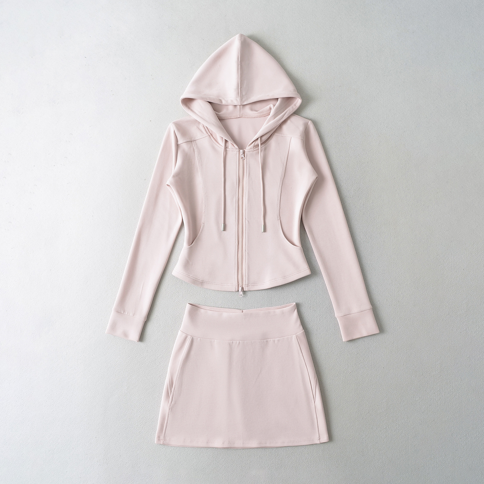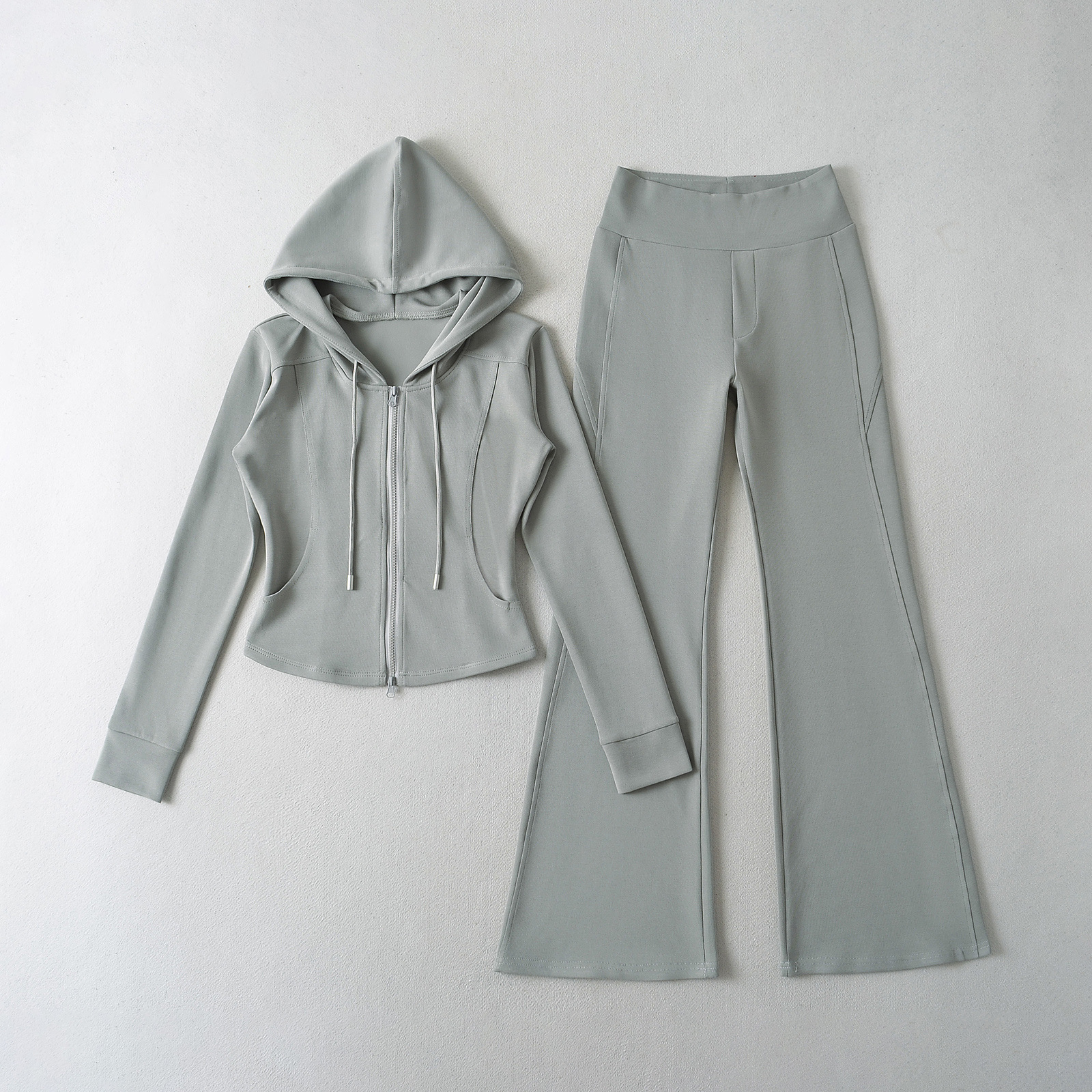 패션 스티칭 허리 슬리밍 지퍼 후드 스웨터 여성용 미국식 핫 걸 슬림 핏 플레어 팬츠