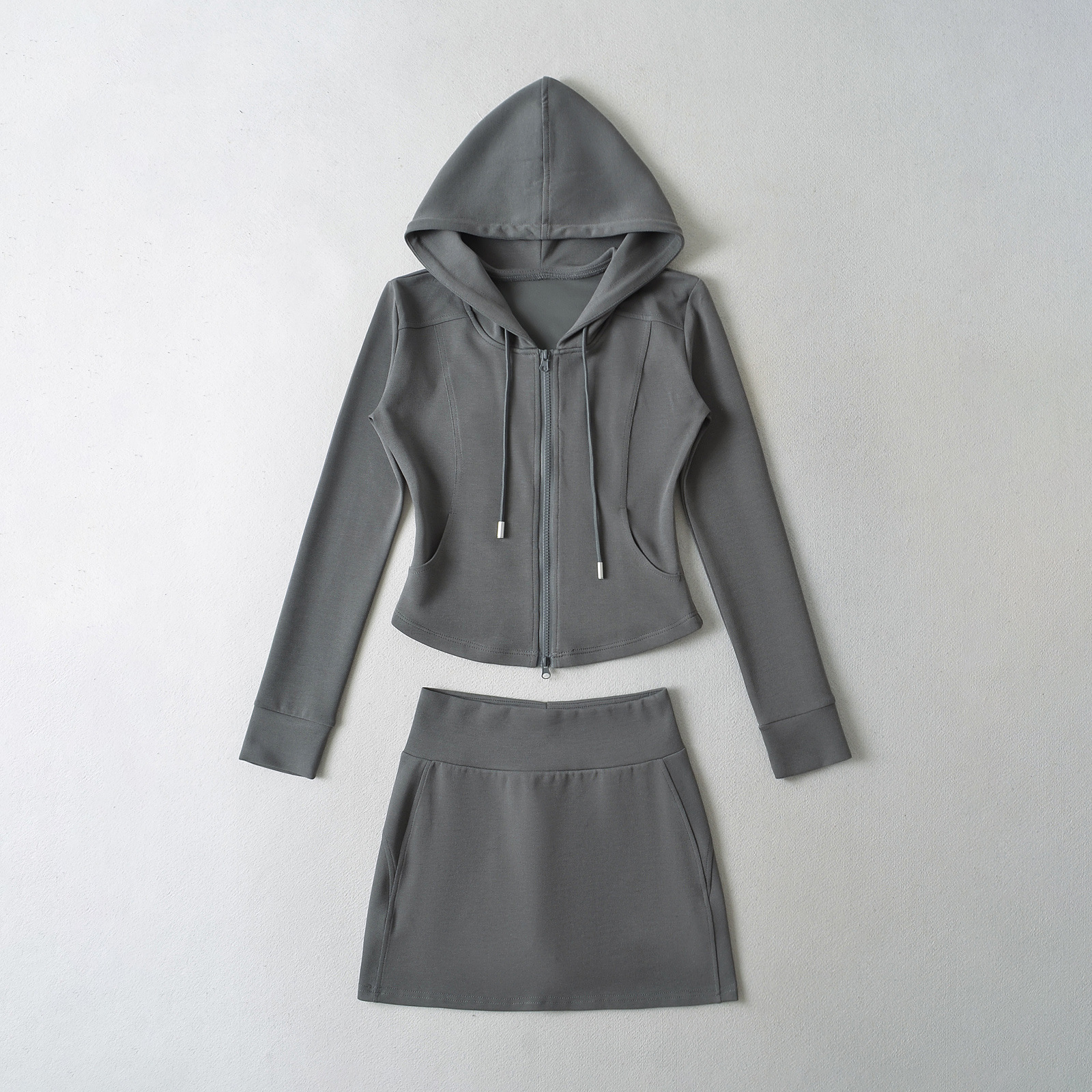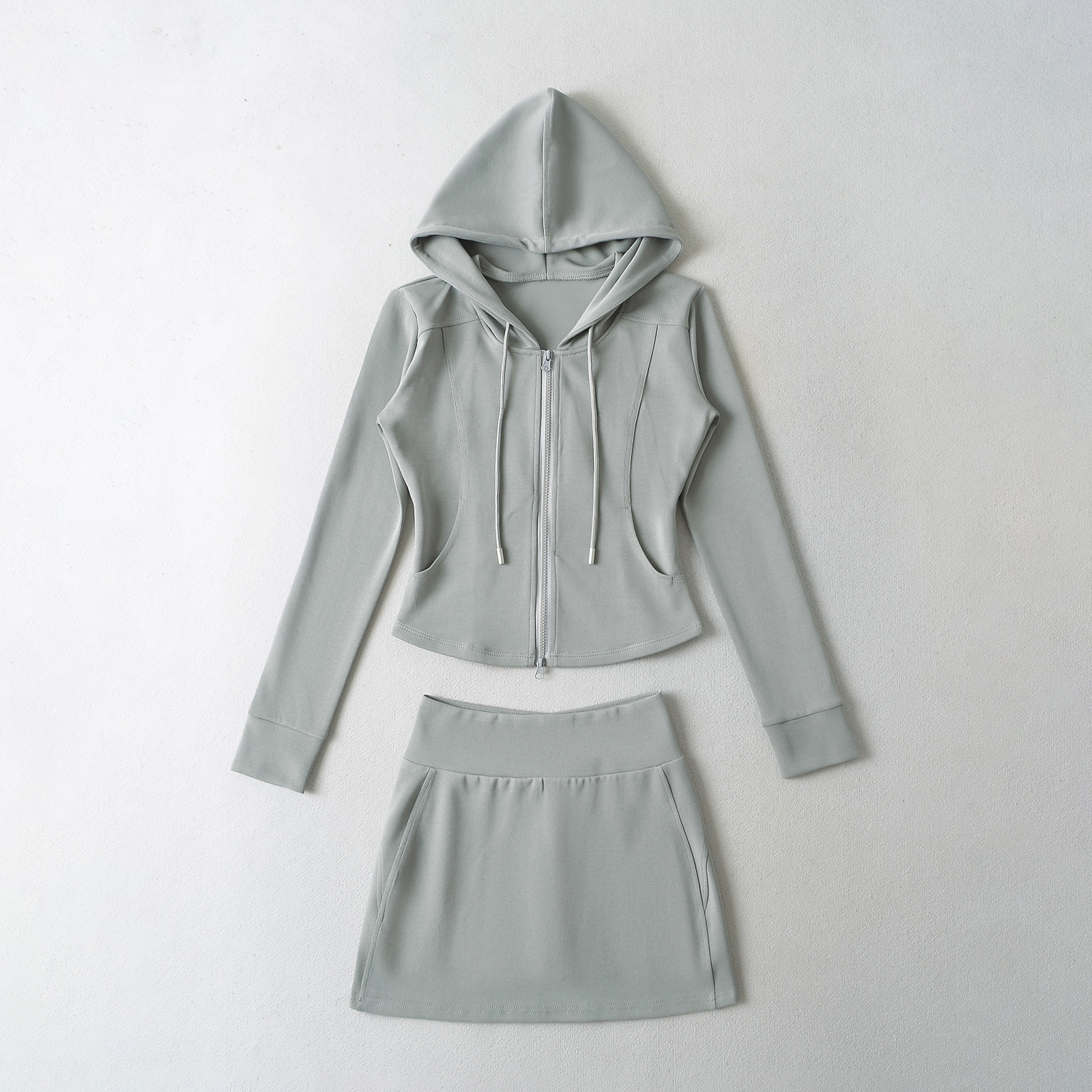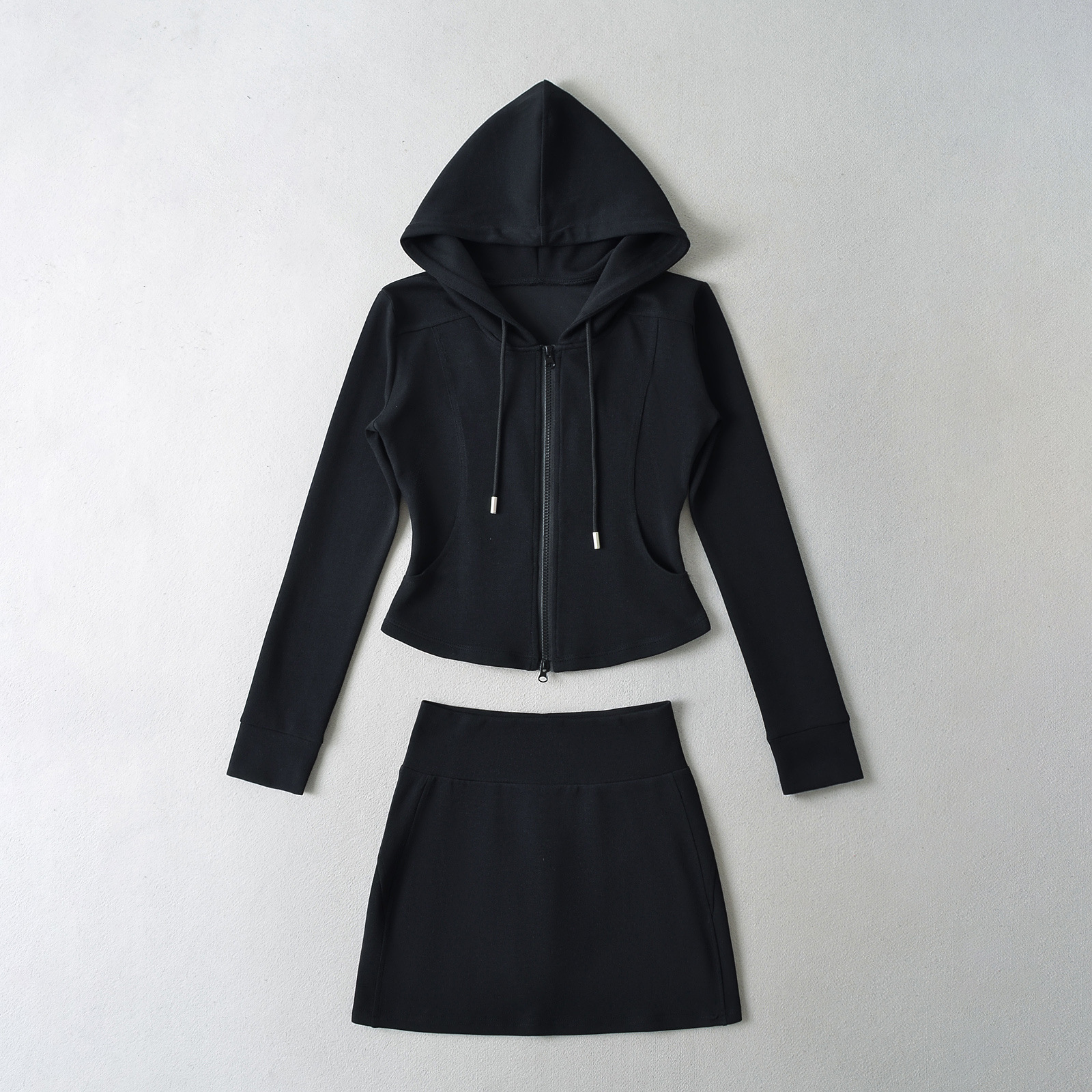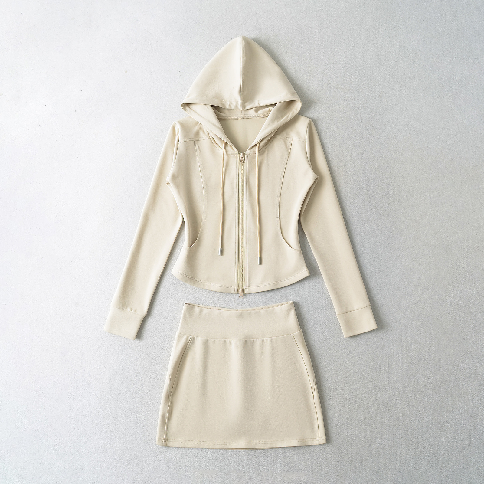 패션 스티칭 허리 슬리밍 지퍼 후드 스웨터 여성용 미국식 핫 걸 슬림 핏 플레어 팬츠