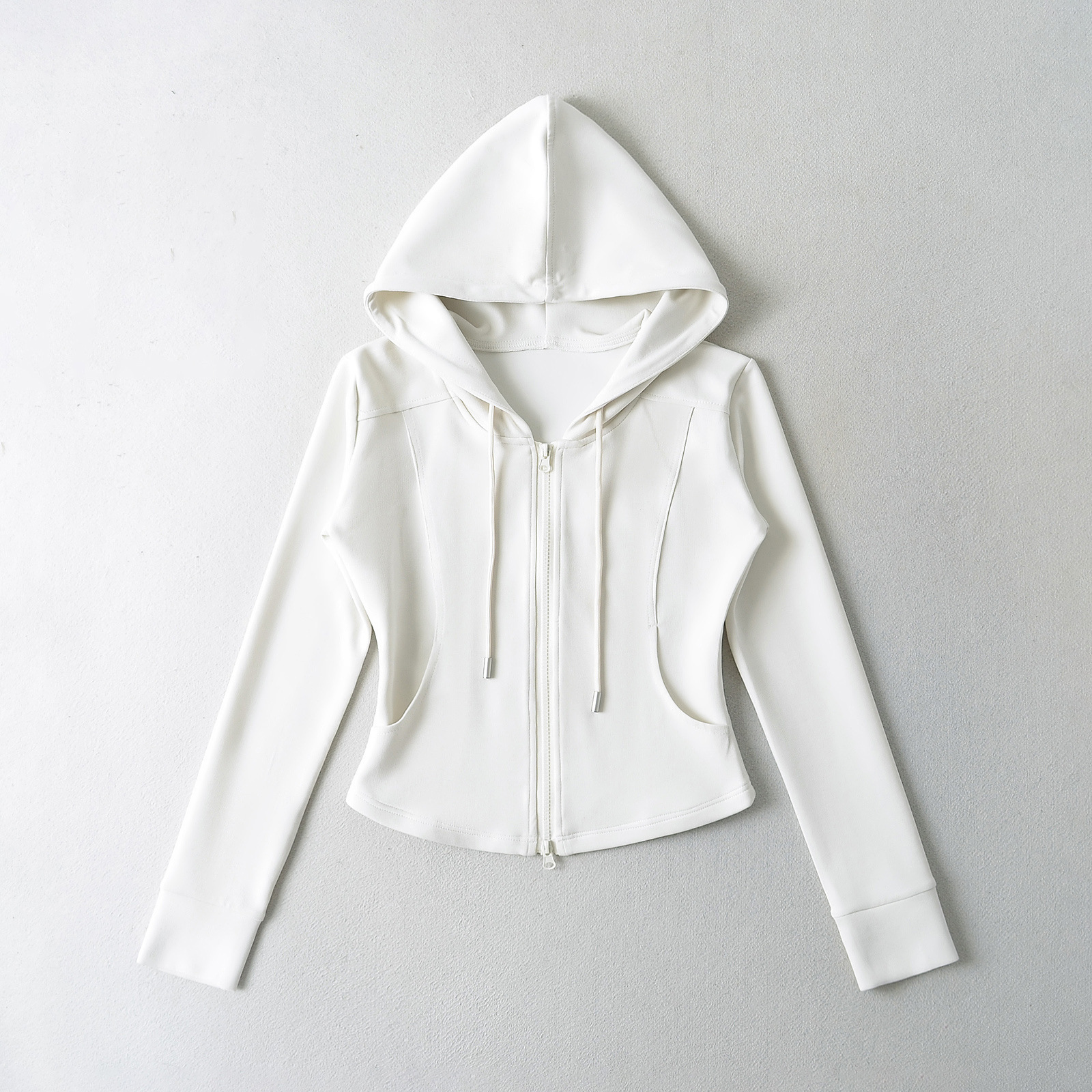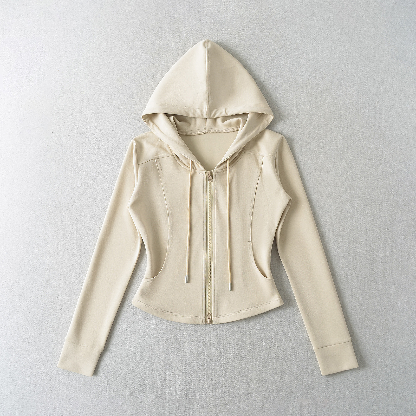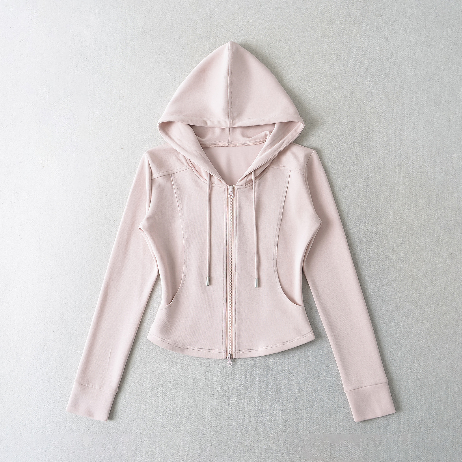 패션 스티칭 허리 슬리밍 지퍼 후드 스웨터 여성용 미국식 핫 걸 슬림 핏 플레어 팬츠스토어 가기