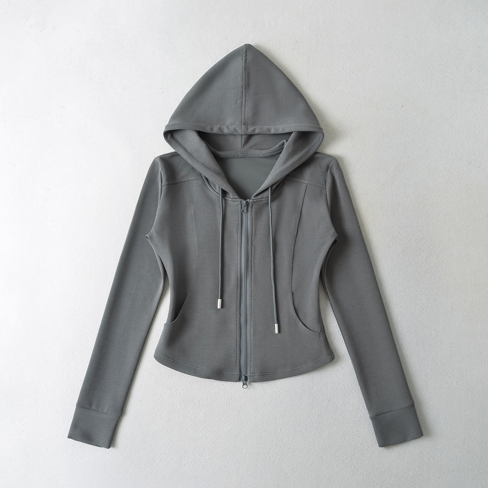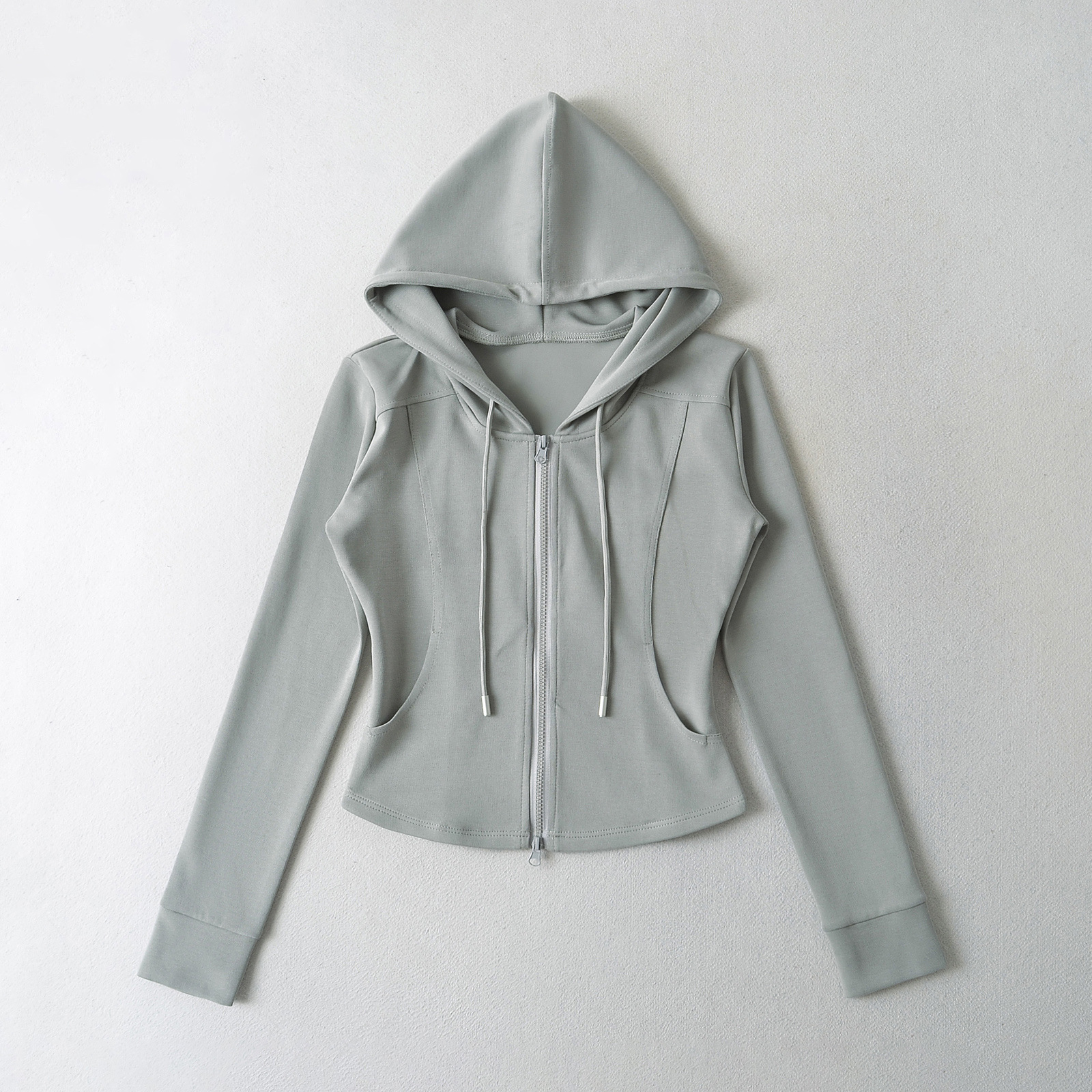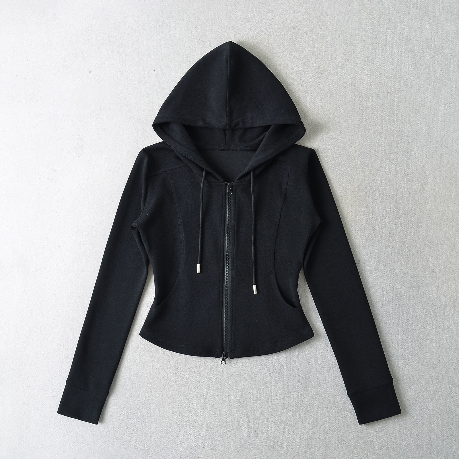 패션 스티칭 허리 슬리밍 지퍼 후드 스웨터 여성용 미국식 핫 걸 슬림 핏 플레어 팬츠스토어 가기
