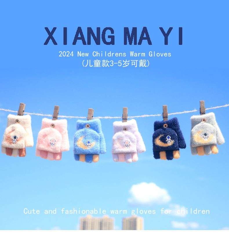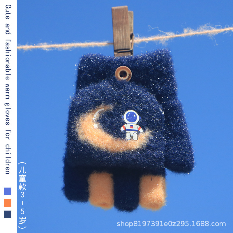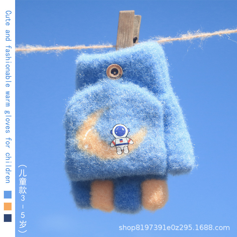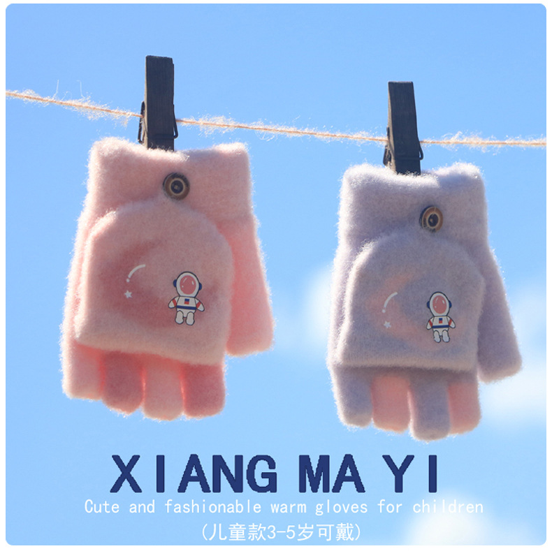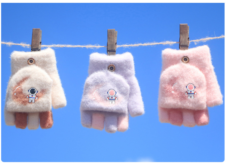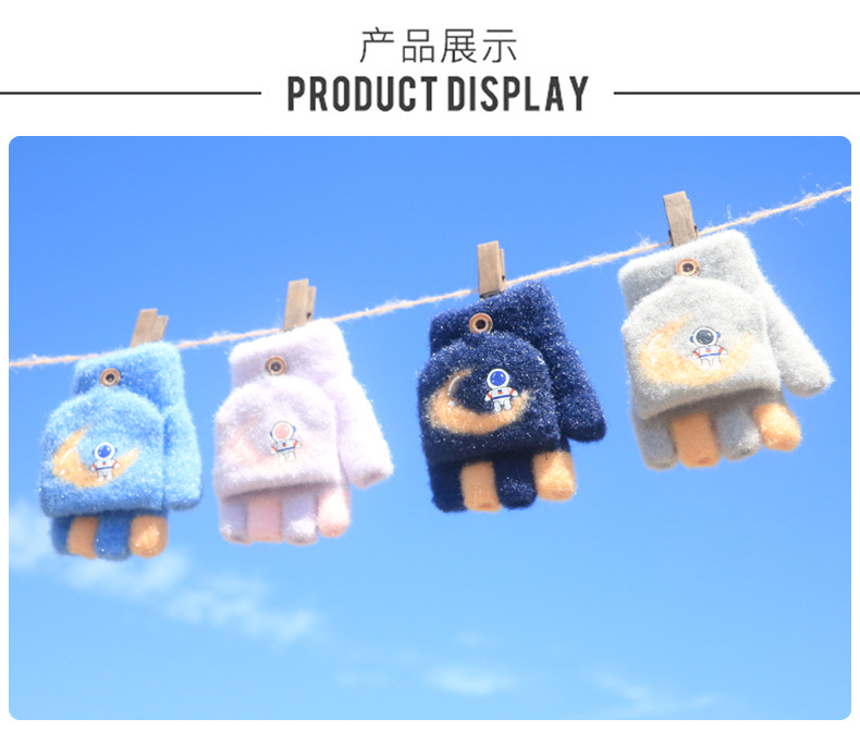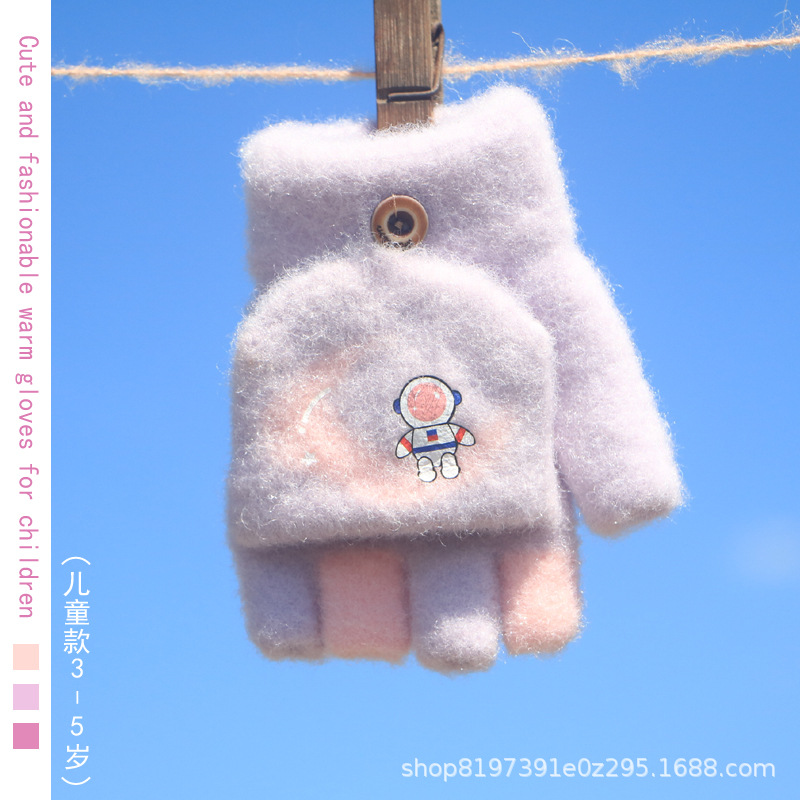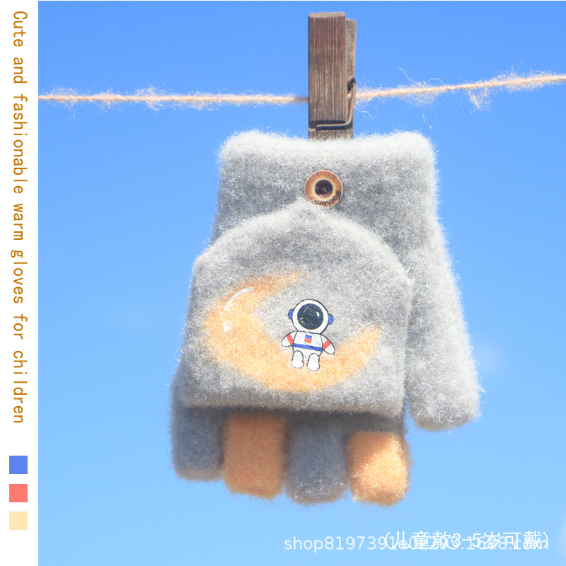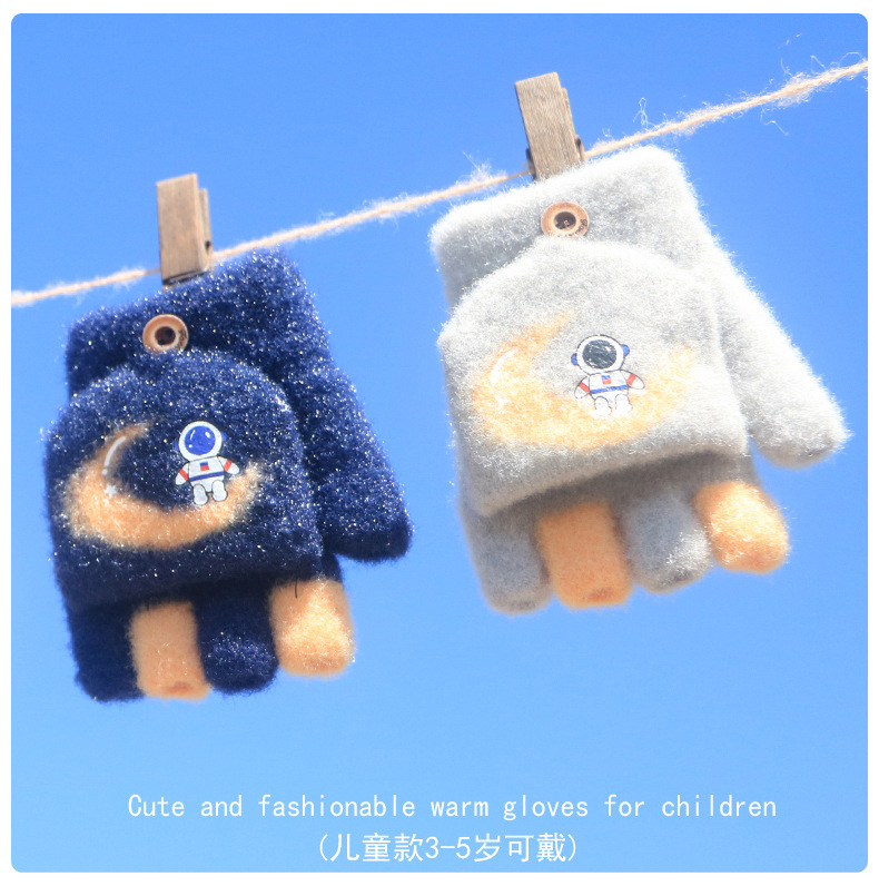 스페이스 맨 겨울 새로운 어린이 따뜻한 플립 핑거 니트 장갑 한국 스타일 어린이 귀여운 따뜻한 장갑 새로운