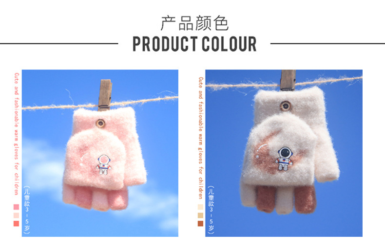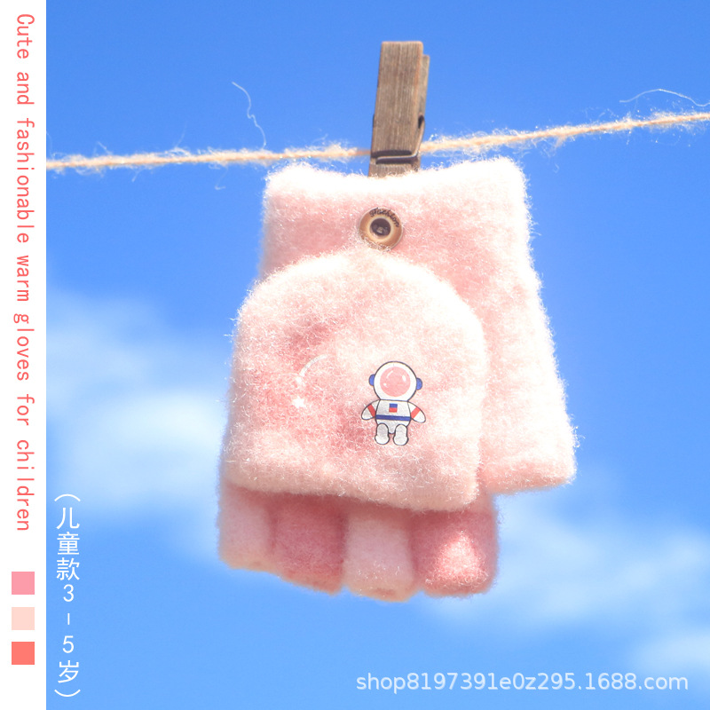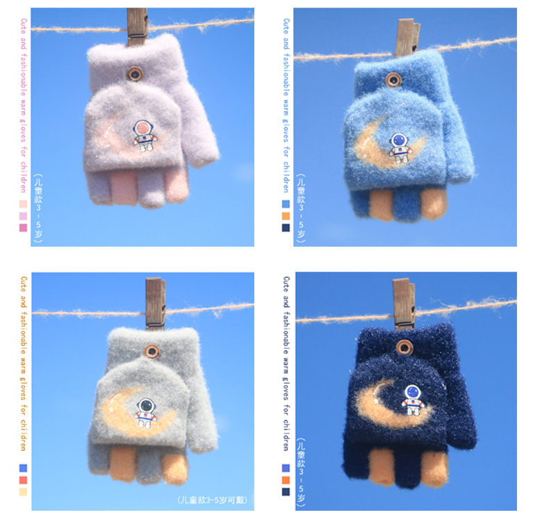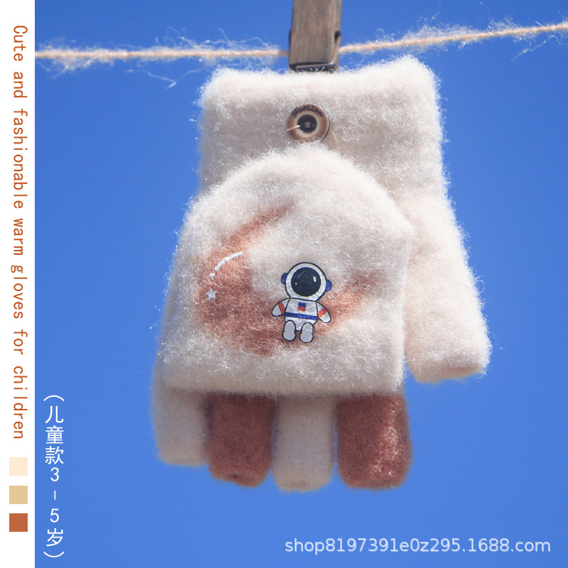 스페이스 맨 겨울 새로운 어린이 따뜻한 플립 핑거 니트 장갑 한국 스타일 어린이 귀여운 따뜻한 장갑 새로운스토어 가기