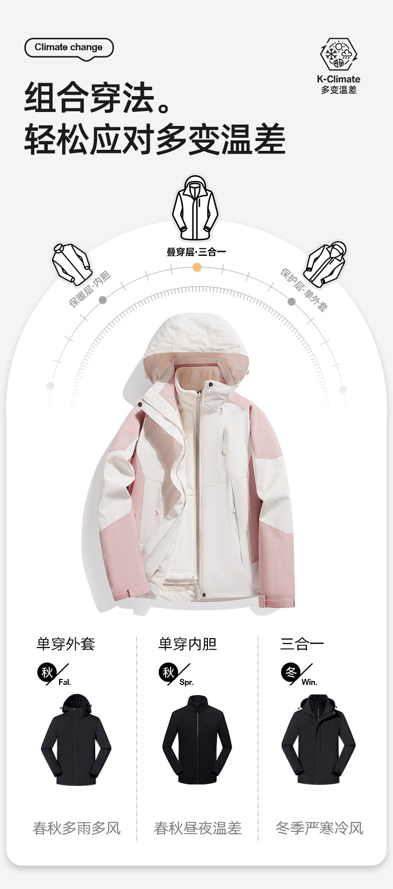 야외 2025 새로운 스타일 재킷 여성 재킷 3-in-one 방풍 및 방수 봄, 가을 등산 재킷 윈드 브레이커스토어 가기