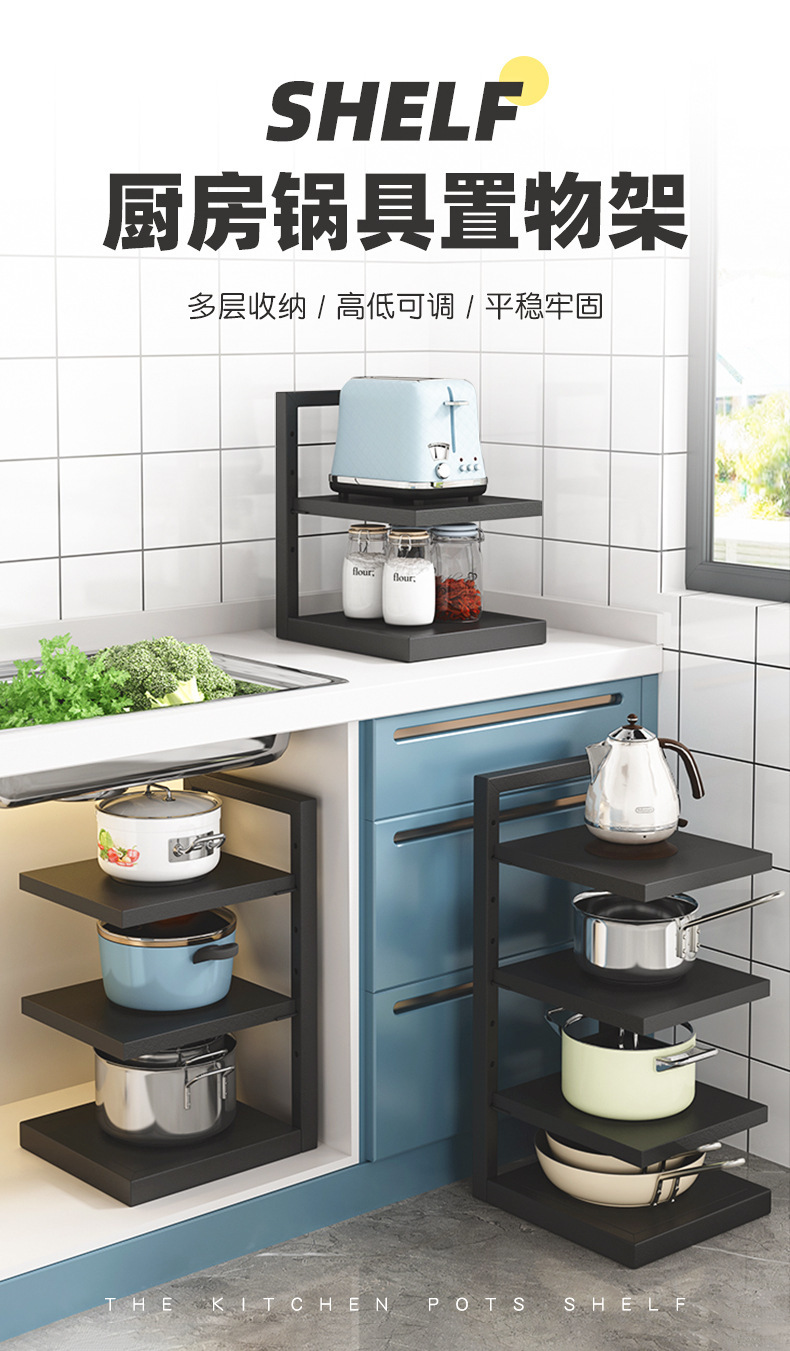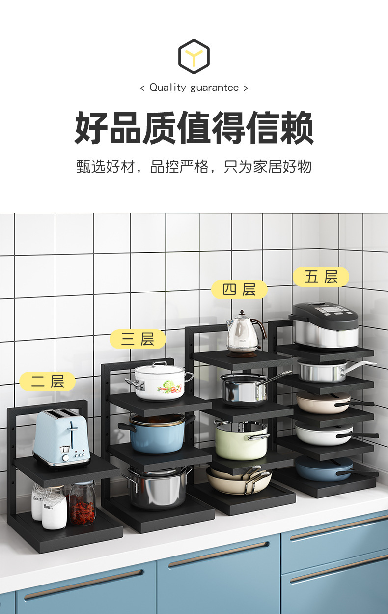 냄비 랙 가정용 바닥 서 멀티 레이어 냄비 스토리지 랙 다기능 스토리지 조정 가능한 단단한 주방 스토리지 랙