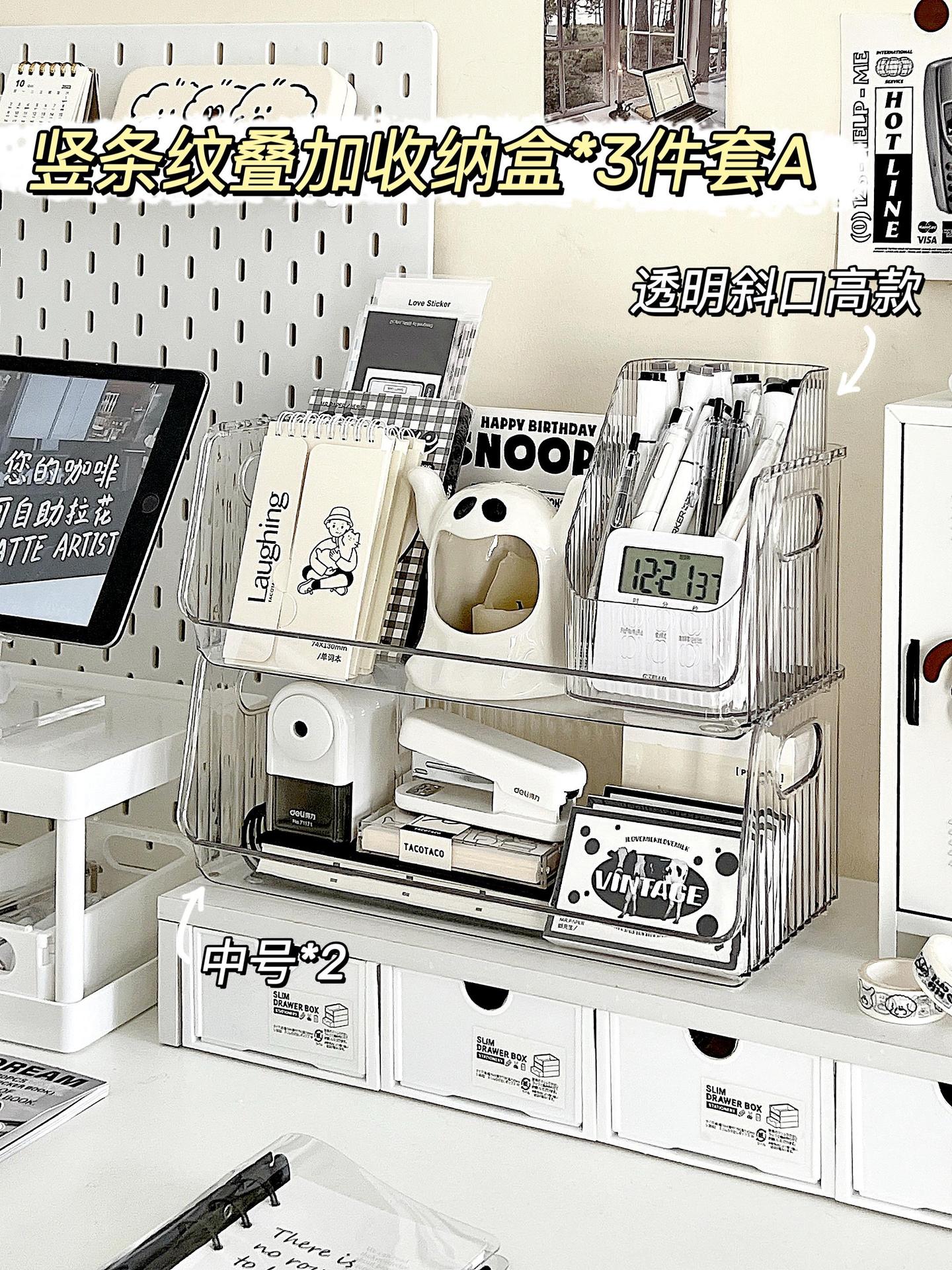 • 세로줄무늬 적층수납함*소형+중형+대형