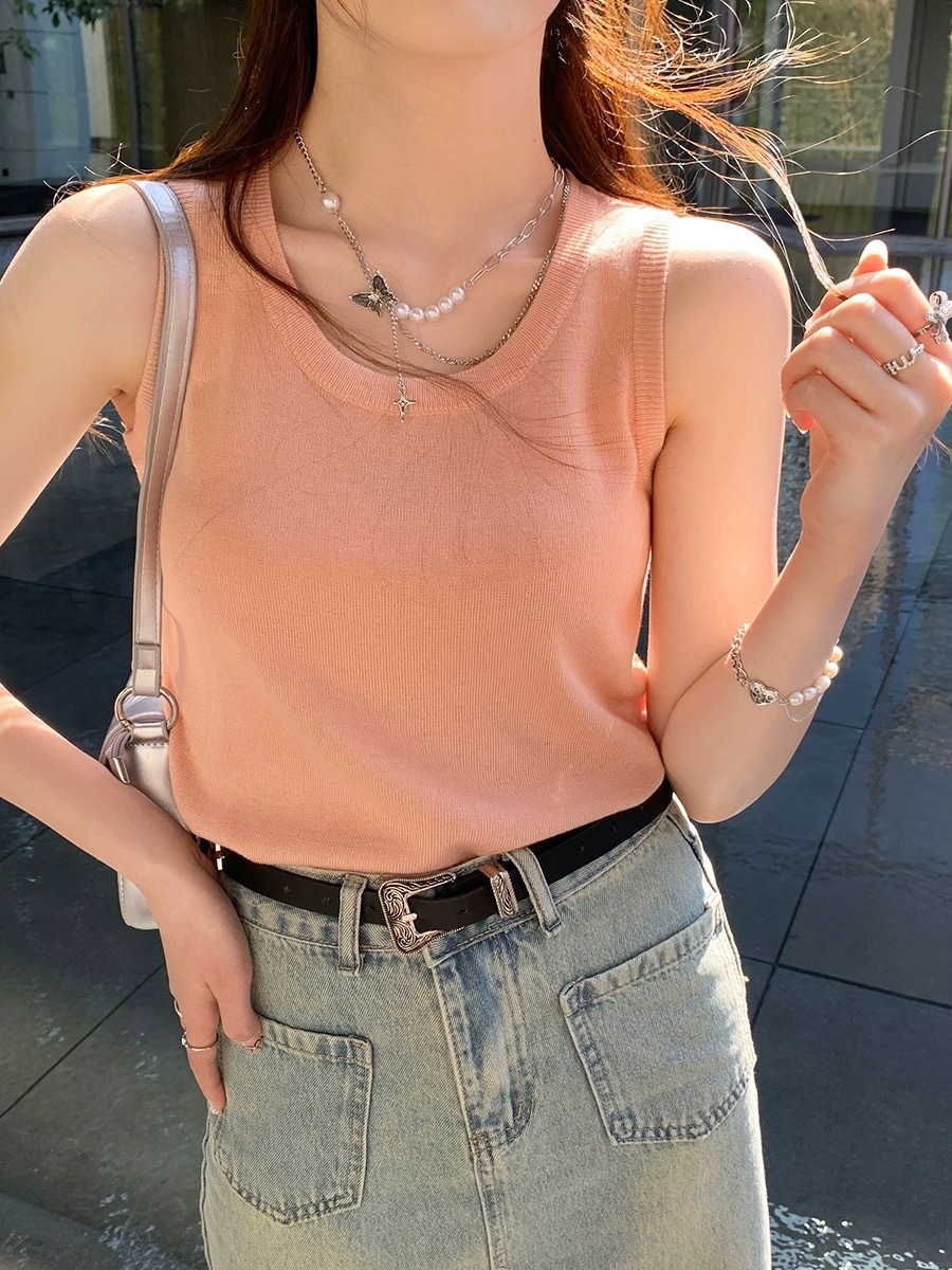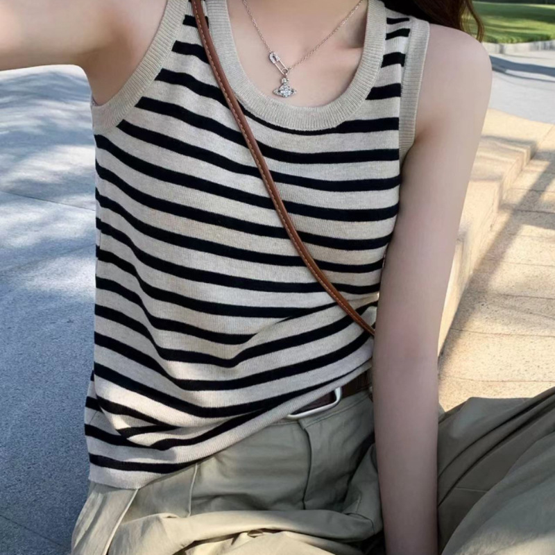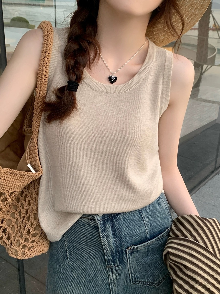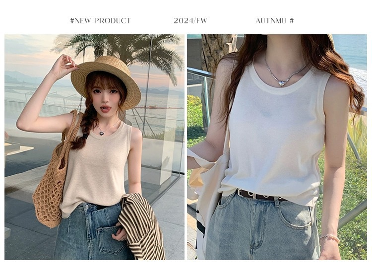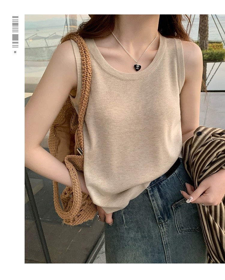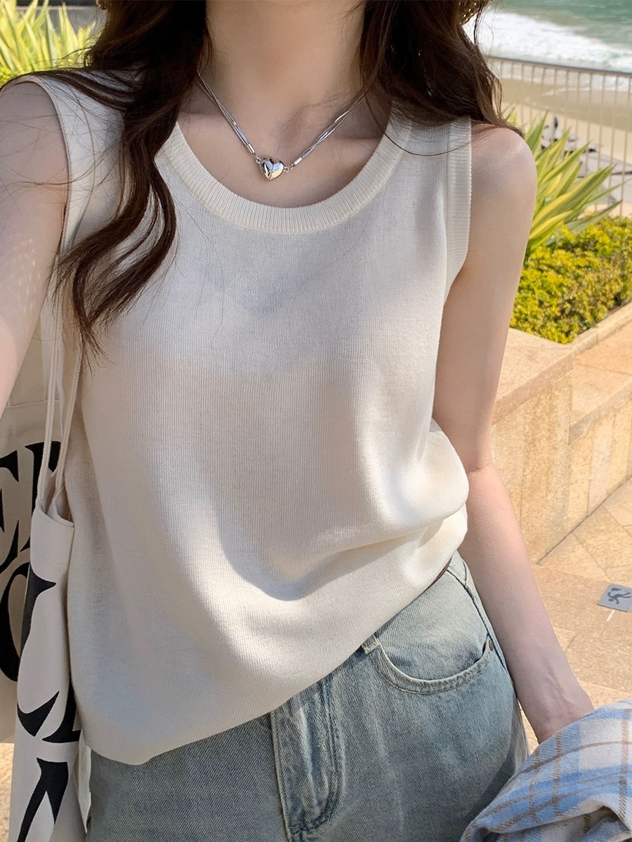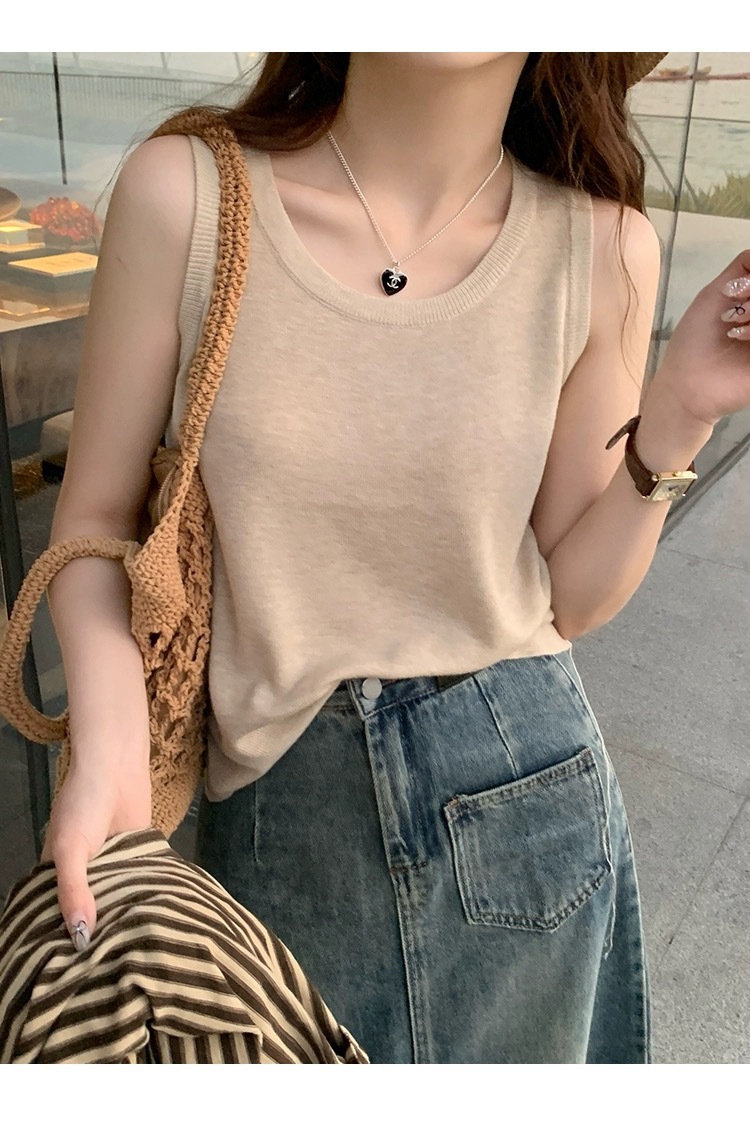니트 캐미솔 여성의 여름 착용 새로운 내부 와이드 어깨 끈 가슴 바닥 민소매 느슨한 탑 도매스토어 가기