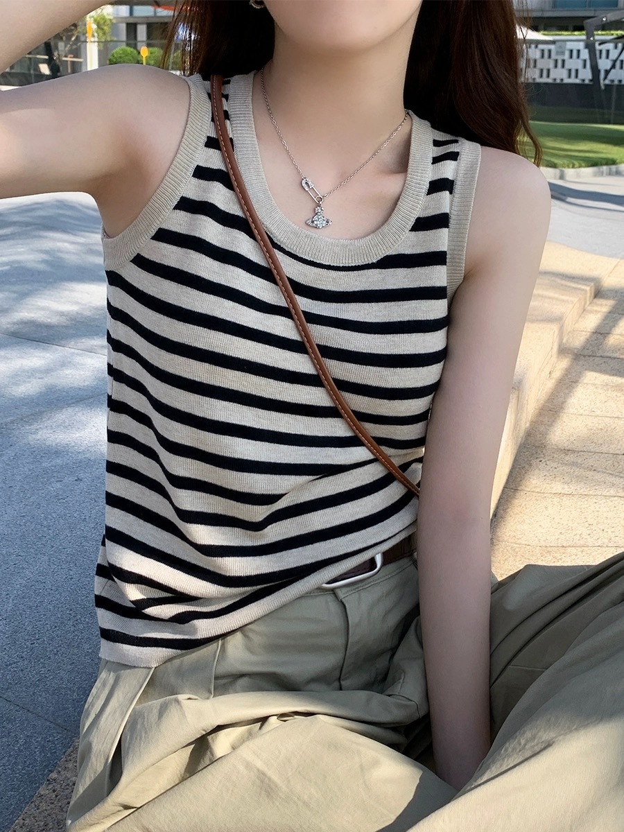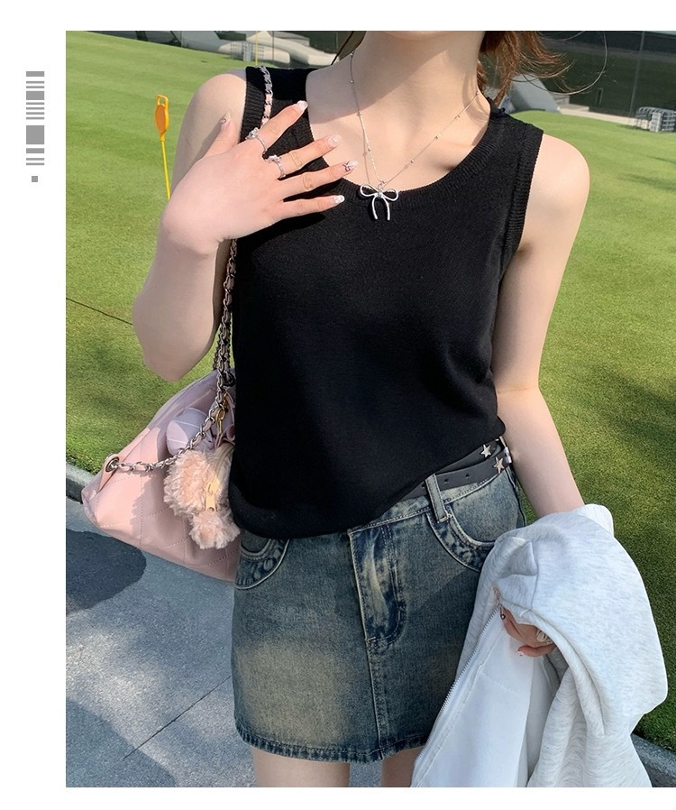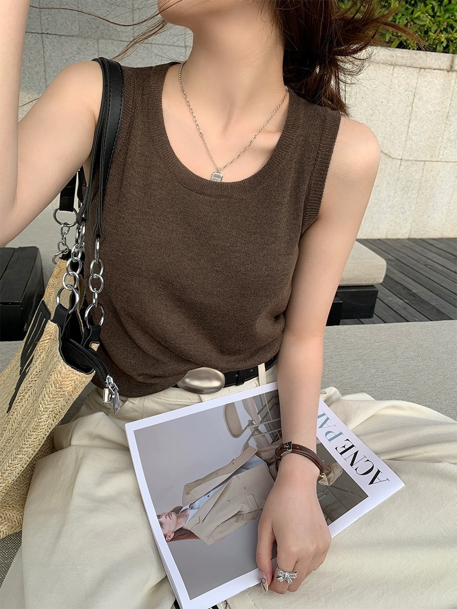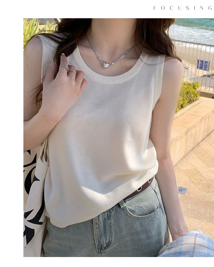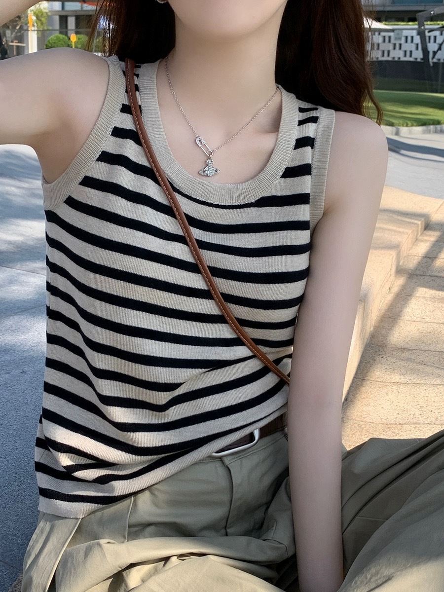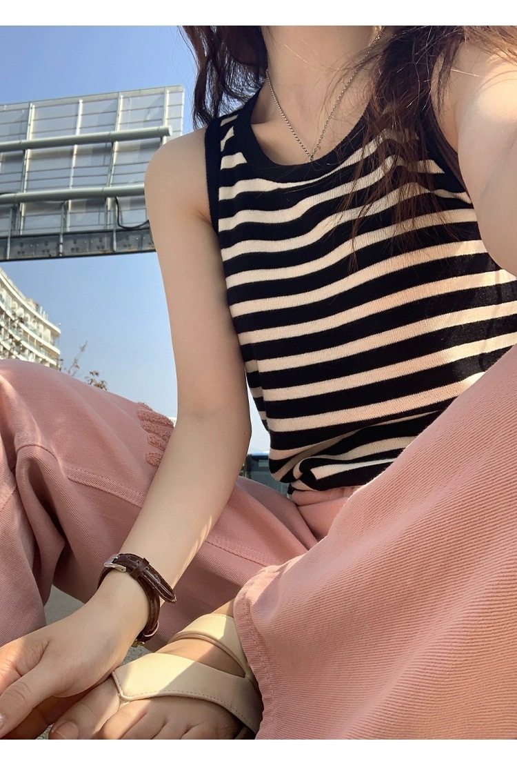 니트 캐미솔 여성의 여름 착용 새로운 내부 와이드 어깨 끈 가슴 바닥 민소매 느슨한 탑 도매스토어 가기