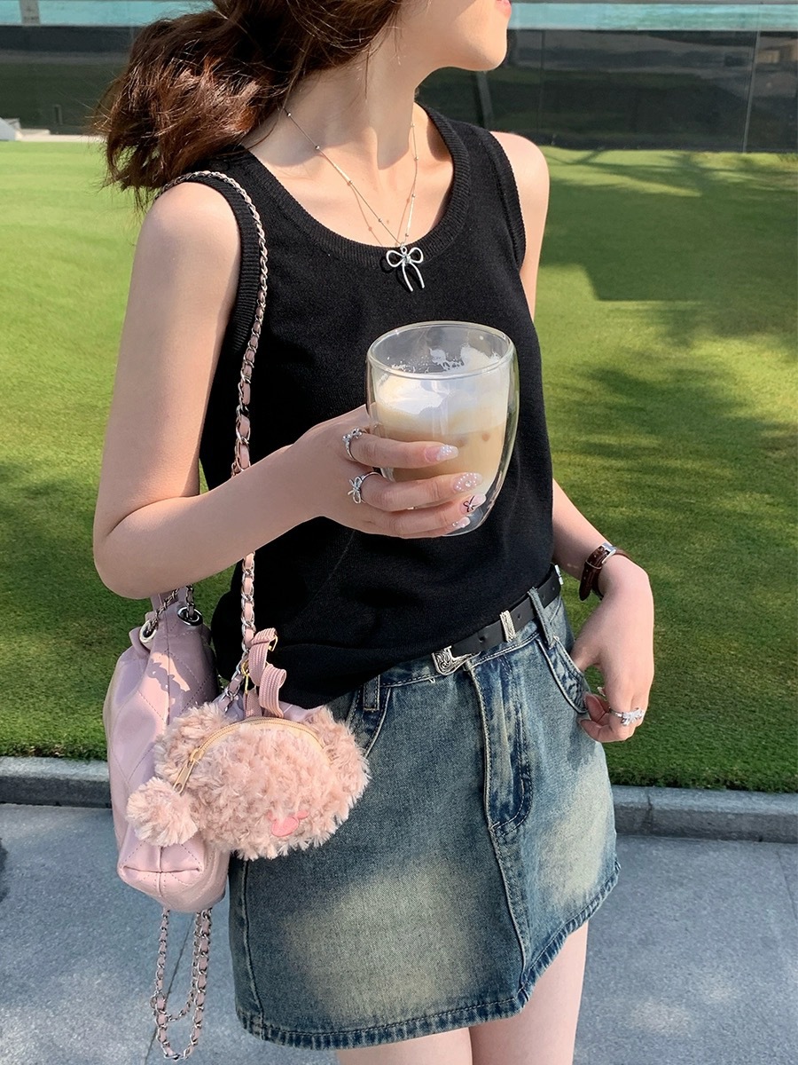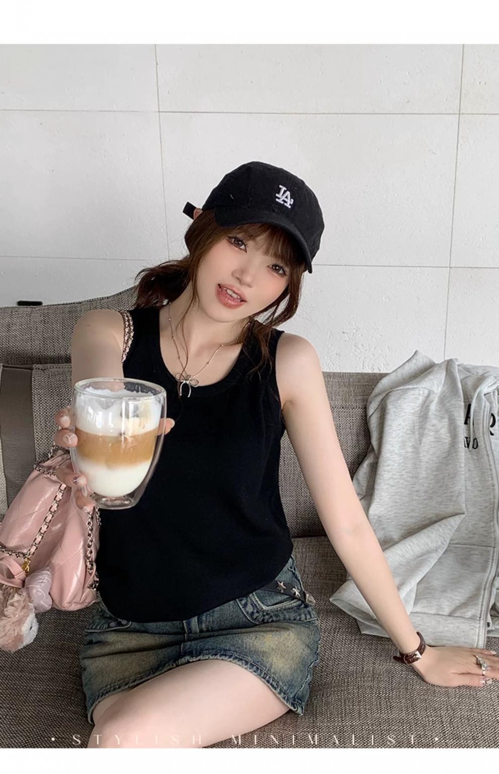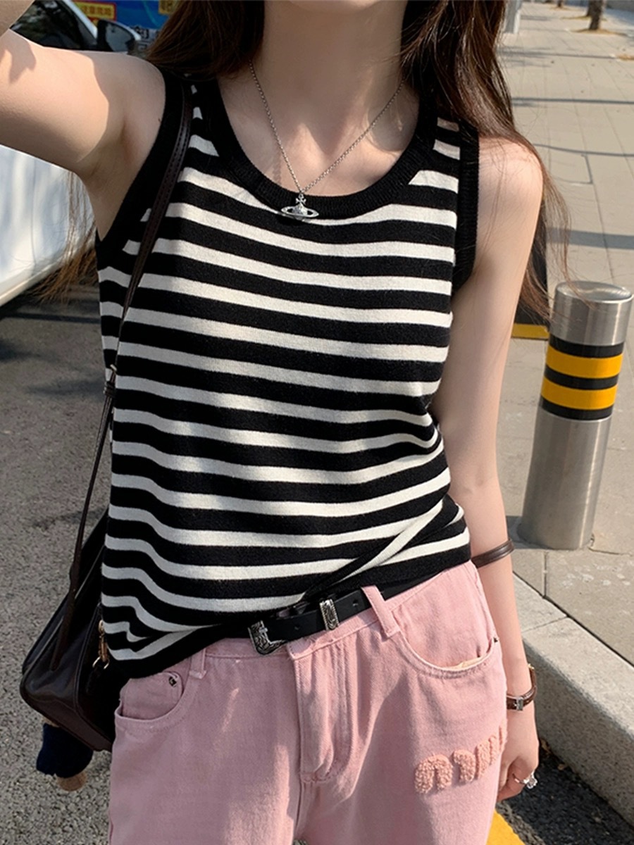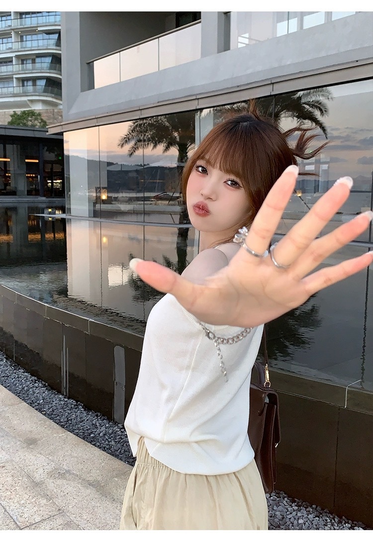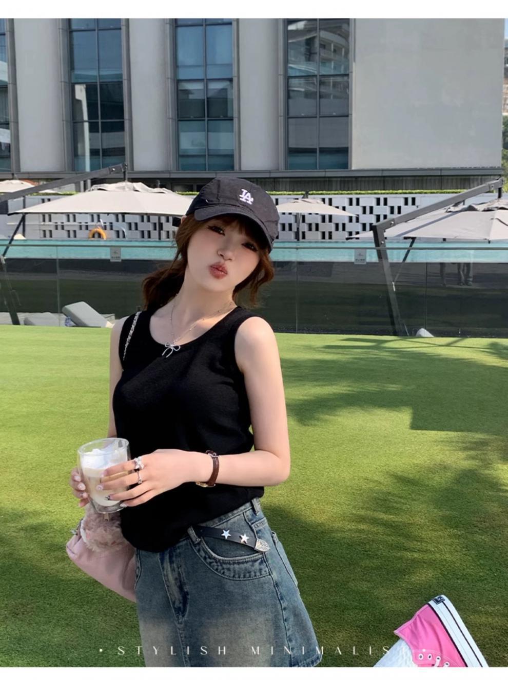 니트 캐미솔 여성의 여름 착용 새로운 내부 와이드 어깨 끈 가슴 바닥 민소매 느슨한 탑 도매스토어 가기