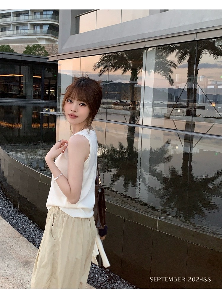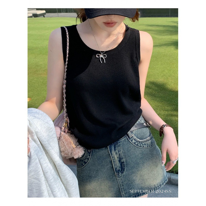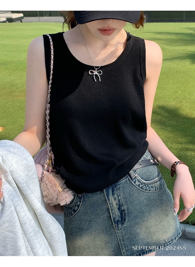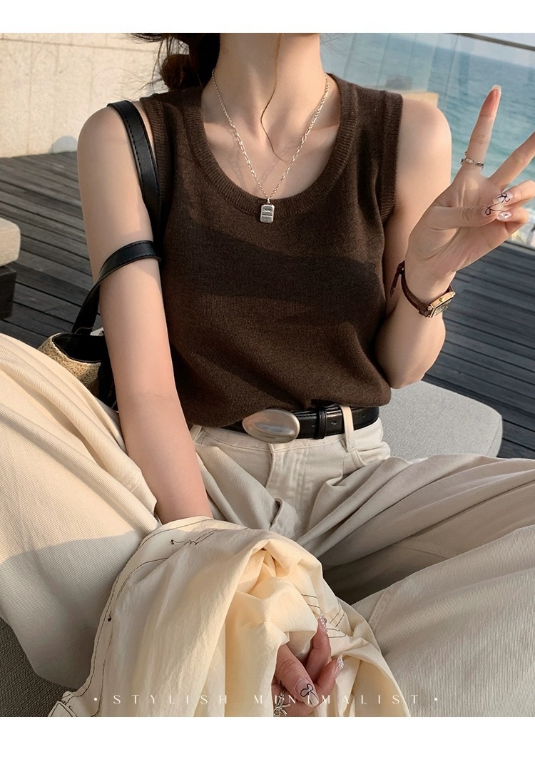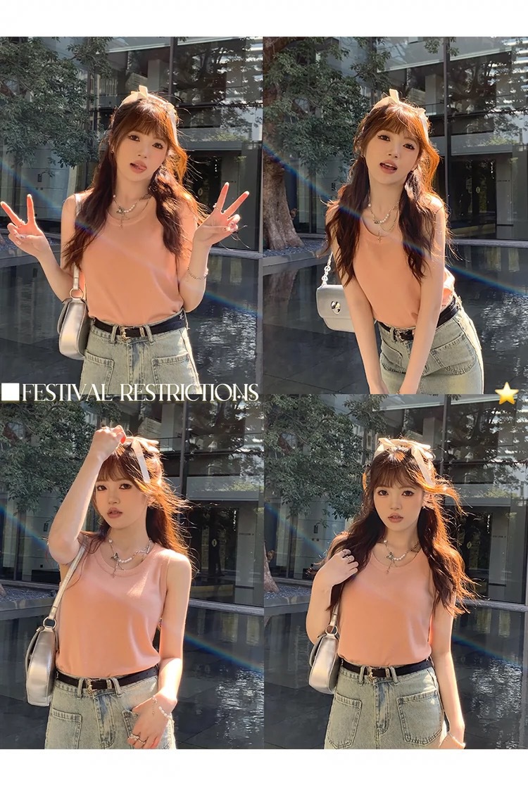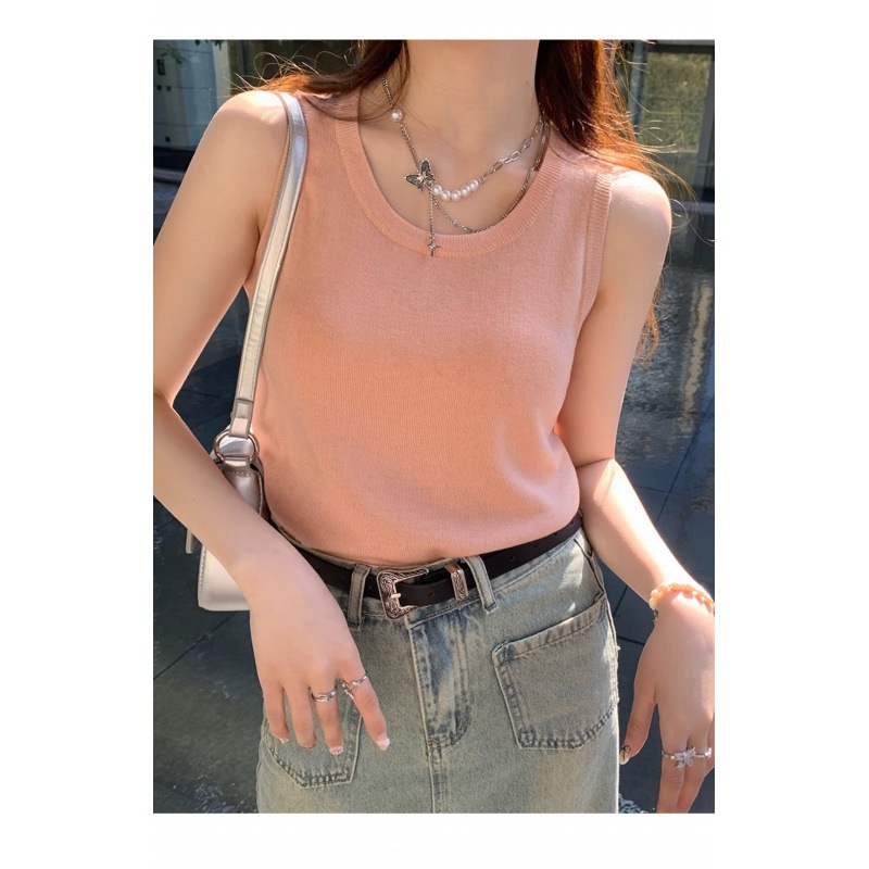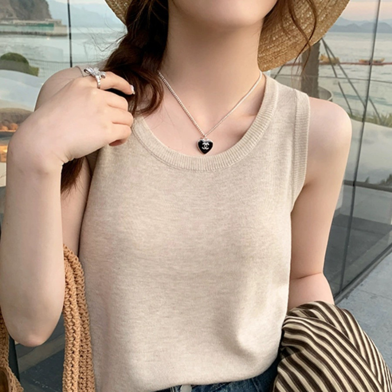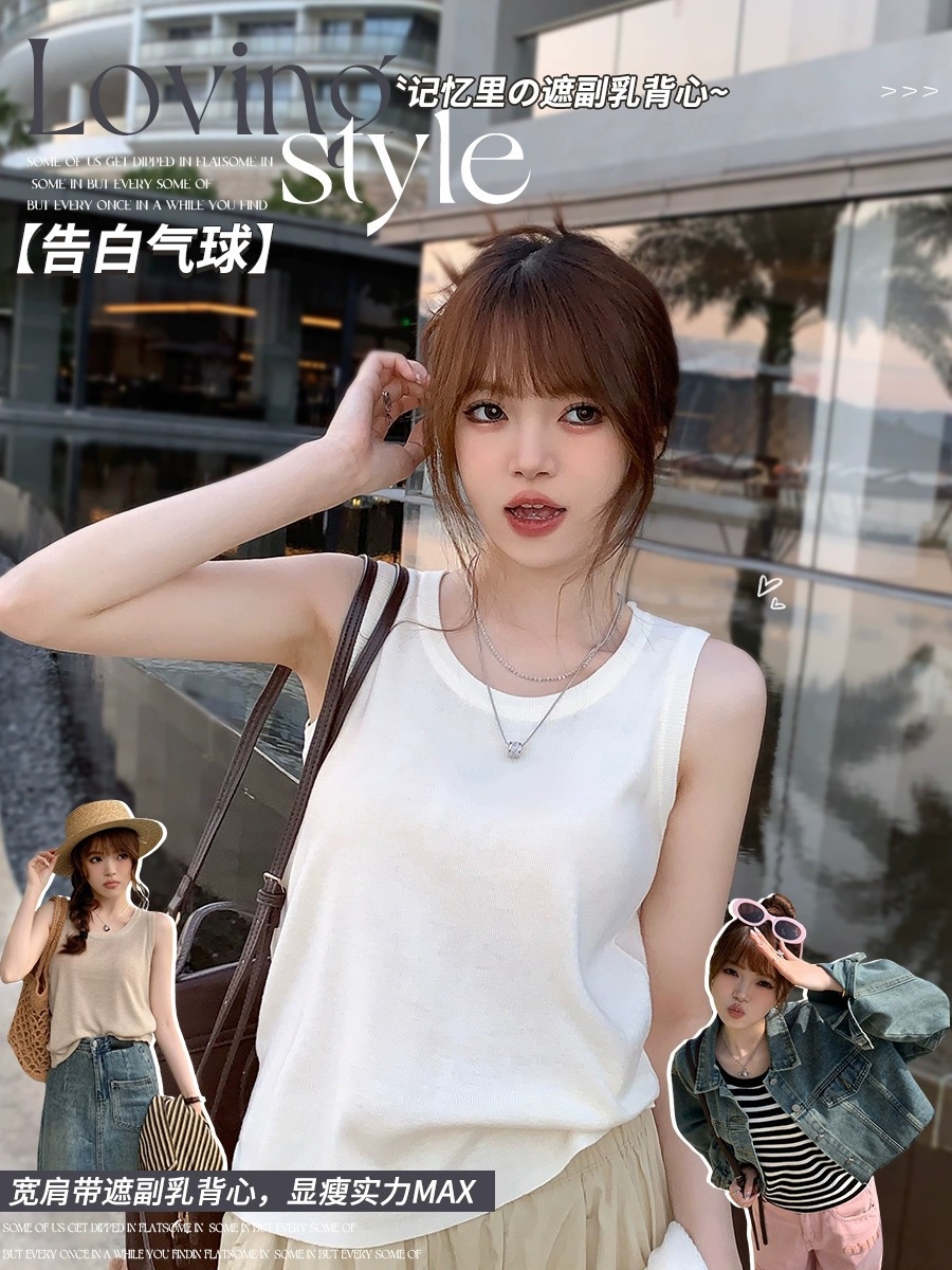 니트 캐미솔 여성의 여름 착용 새로운 내부 와이드 어깨 끈 가슴 바닥 민소매 느슨한 탑 도매