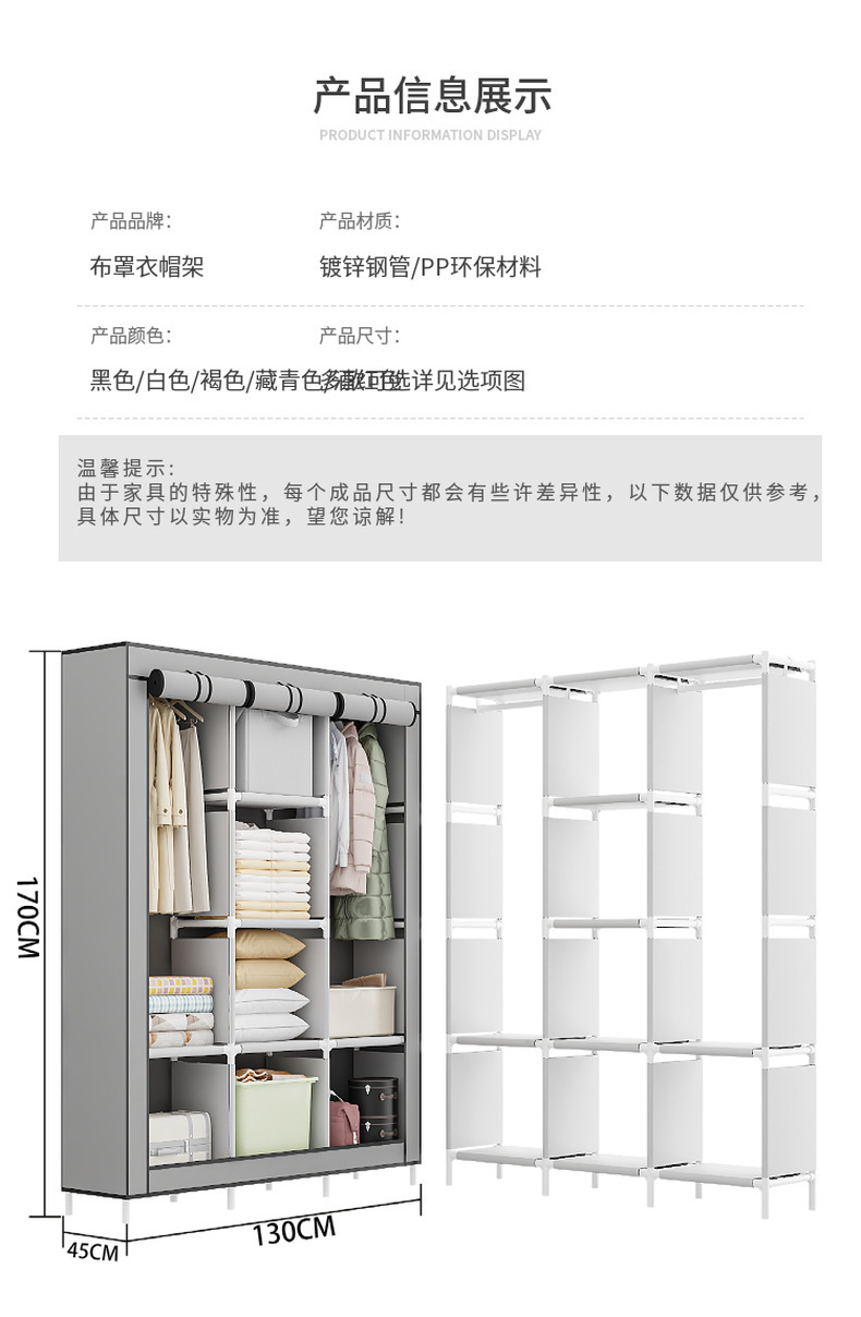 남아메리카 뜨거운 판매 간단한 130 다기능 방진 천 옷장 홈 침실 옷 캐비닛 조립 보관 캐비닛