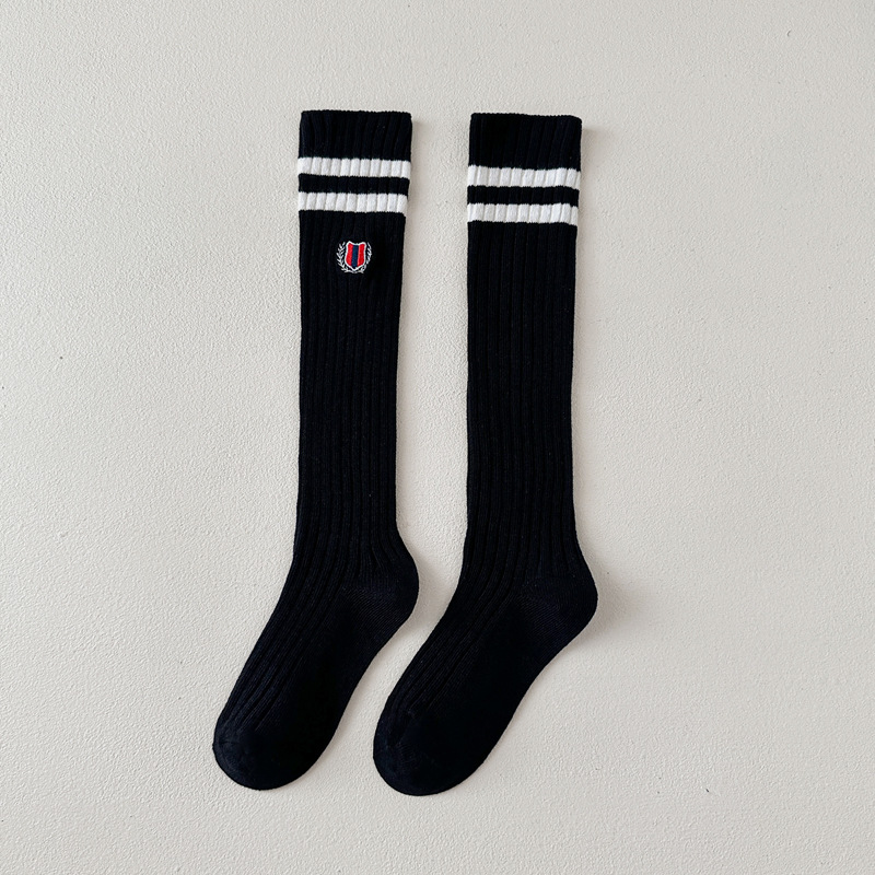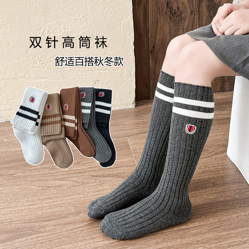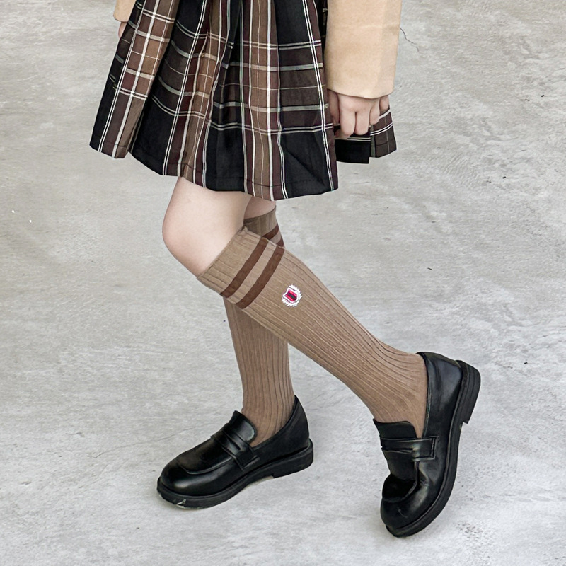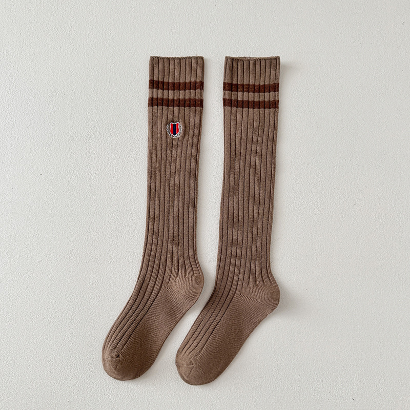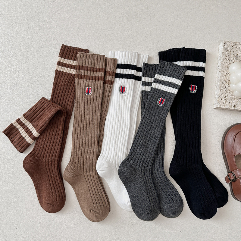 어린이 스타킹 봄과 가을 대학 스타일 소녀 자수 JK 겉옷 종아리 양말 아기 무릎면 양말 더블 바늘 줄무늬