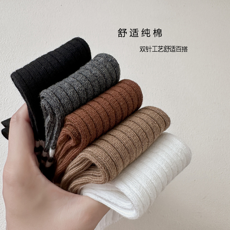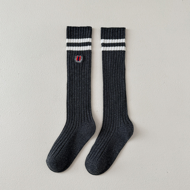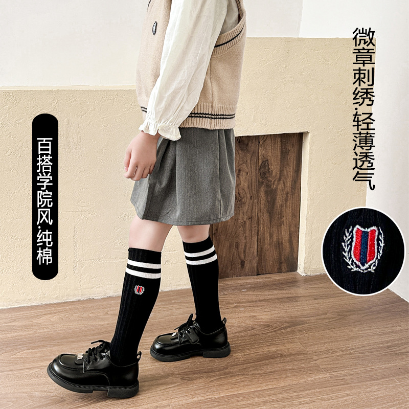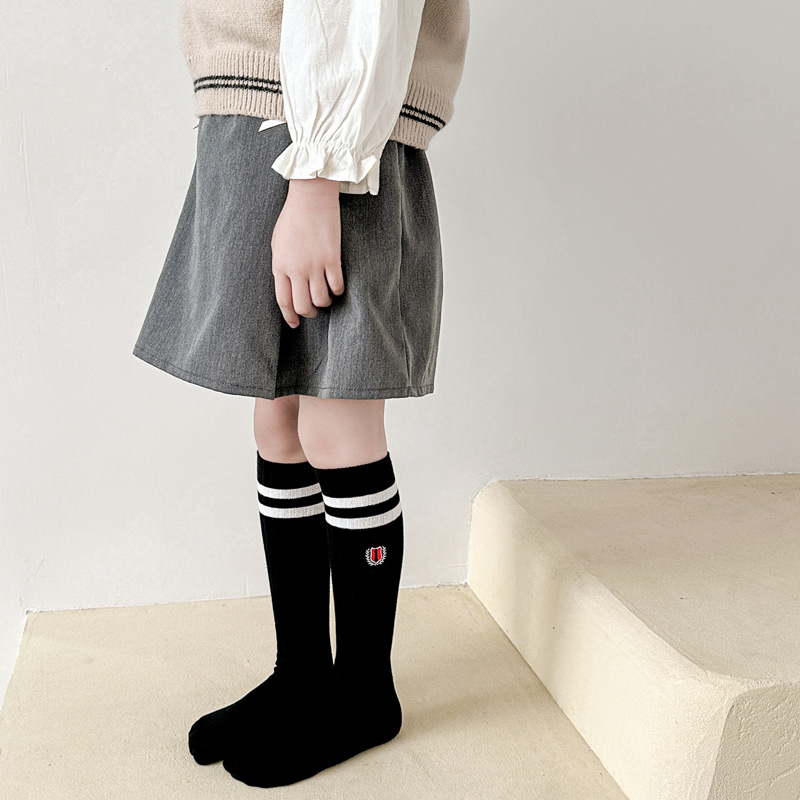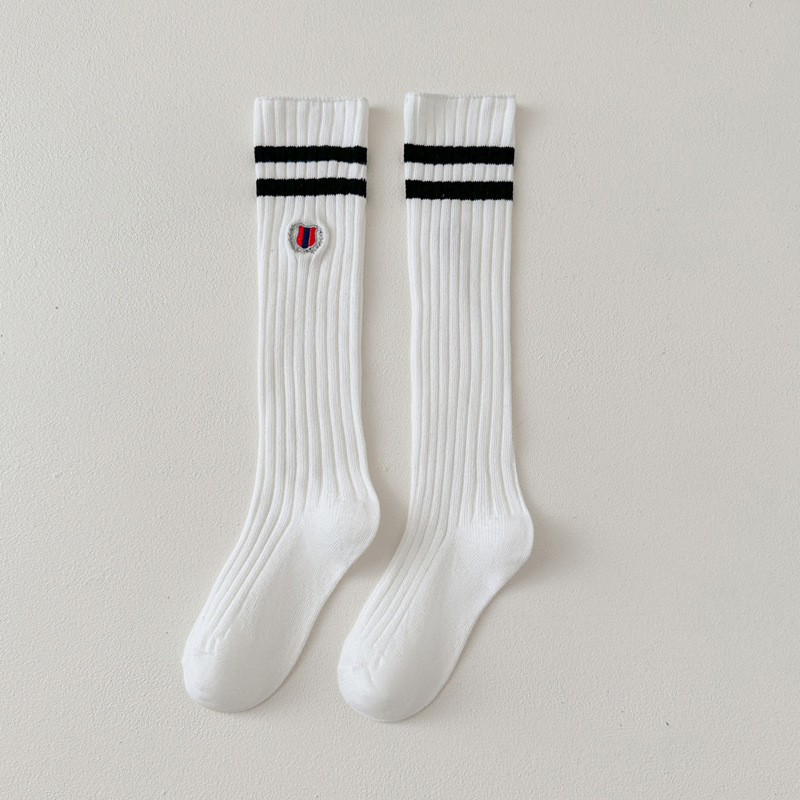 어린이 스타킹 봄과 가을 대학 스타일 소녀 자수 JK 겉옷 종아리 양말 아기 무릎면 양말 더블 바늘 줄무늬