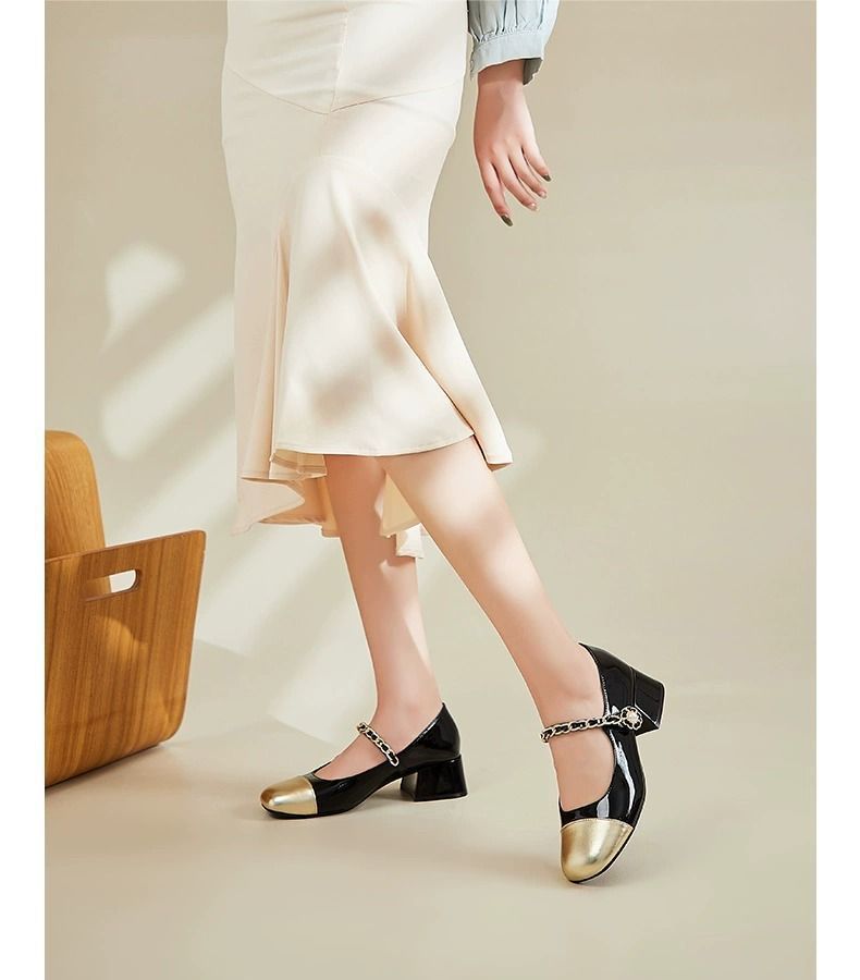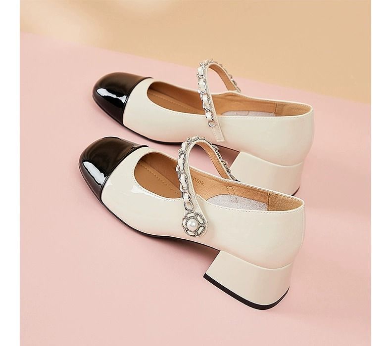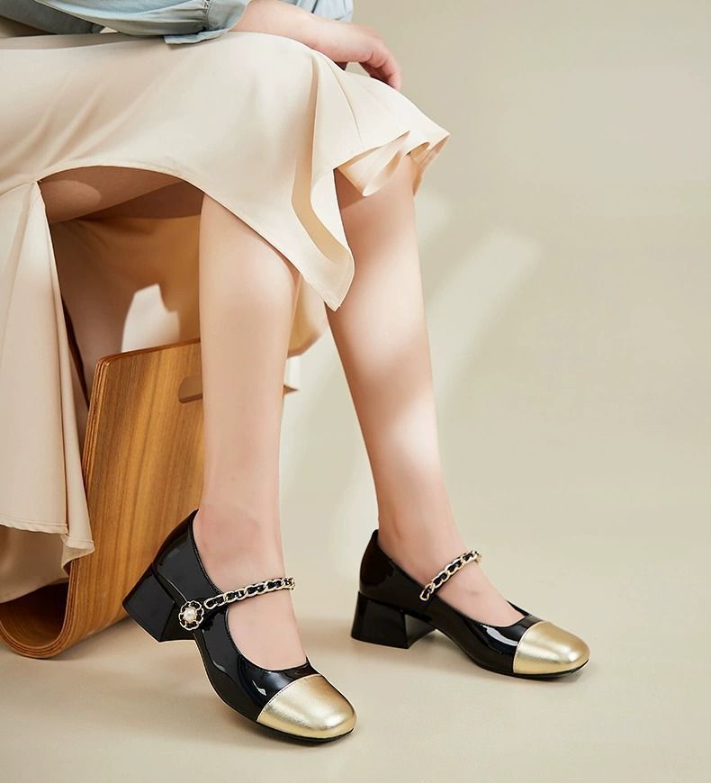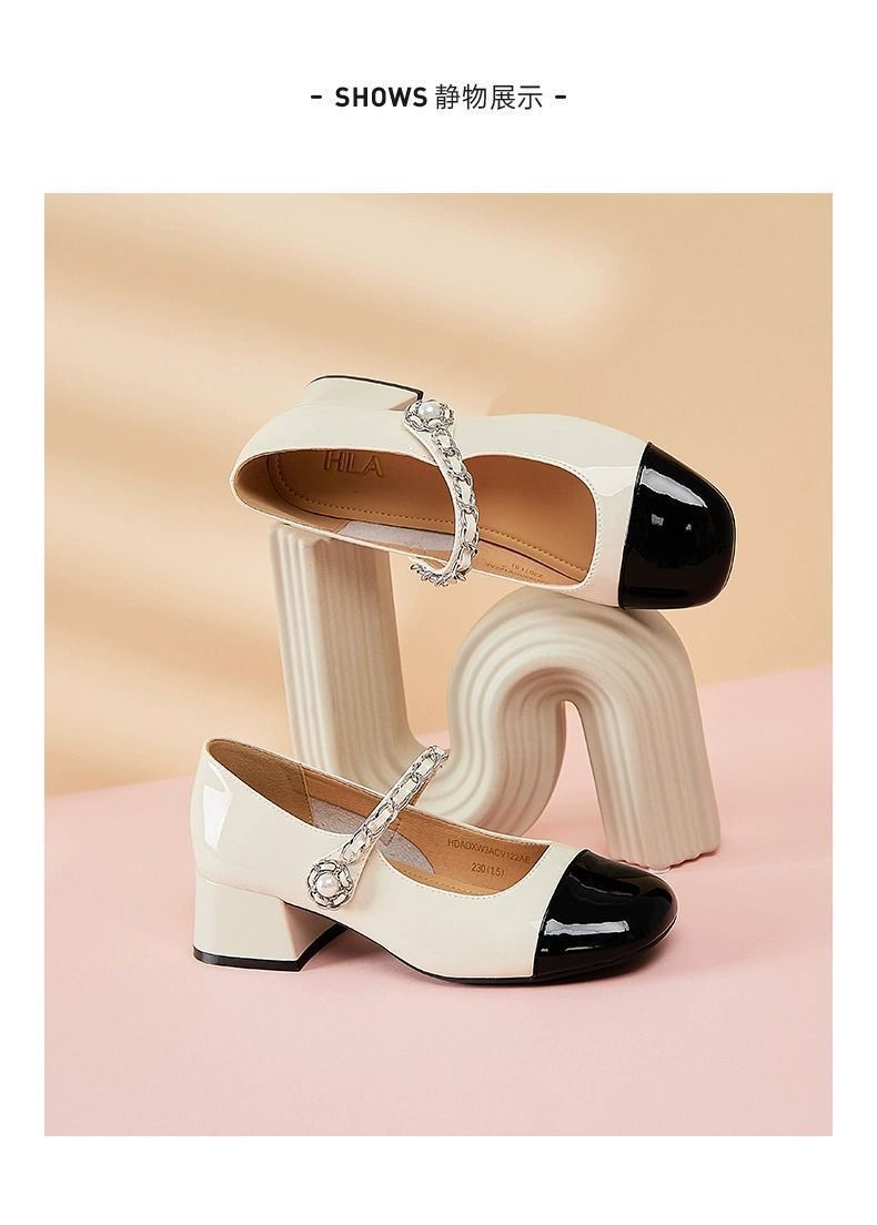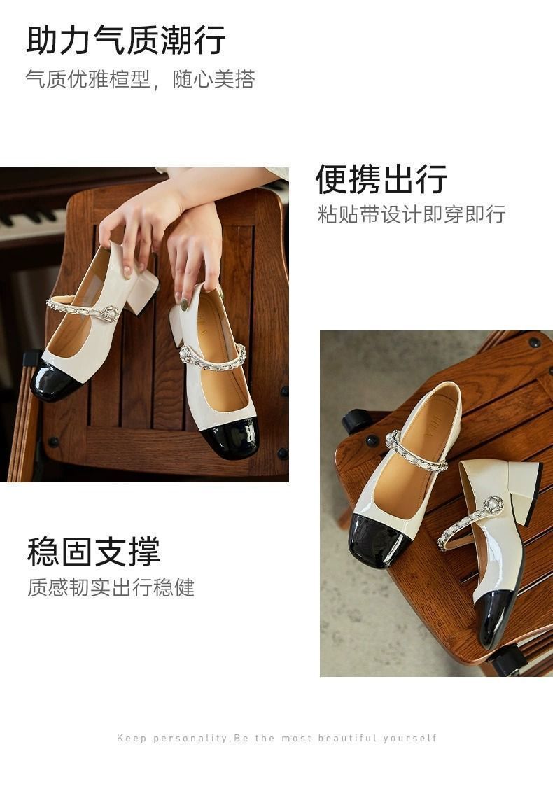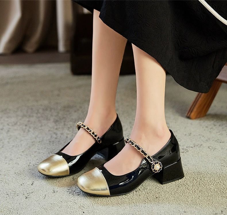 진주 신발 메리 제인 신발 여성 2024 새로운 이른 봄 샤넬 스타일 레트로 청키 힐 중간 힐 작은 가죽 신발 가을스토어 가기