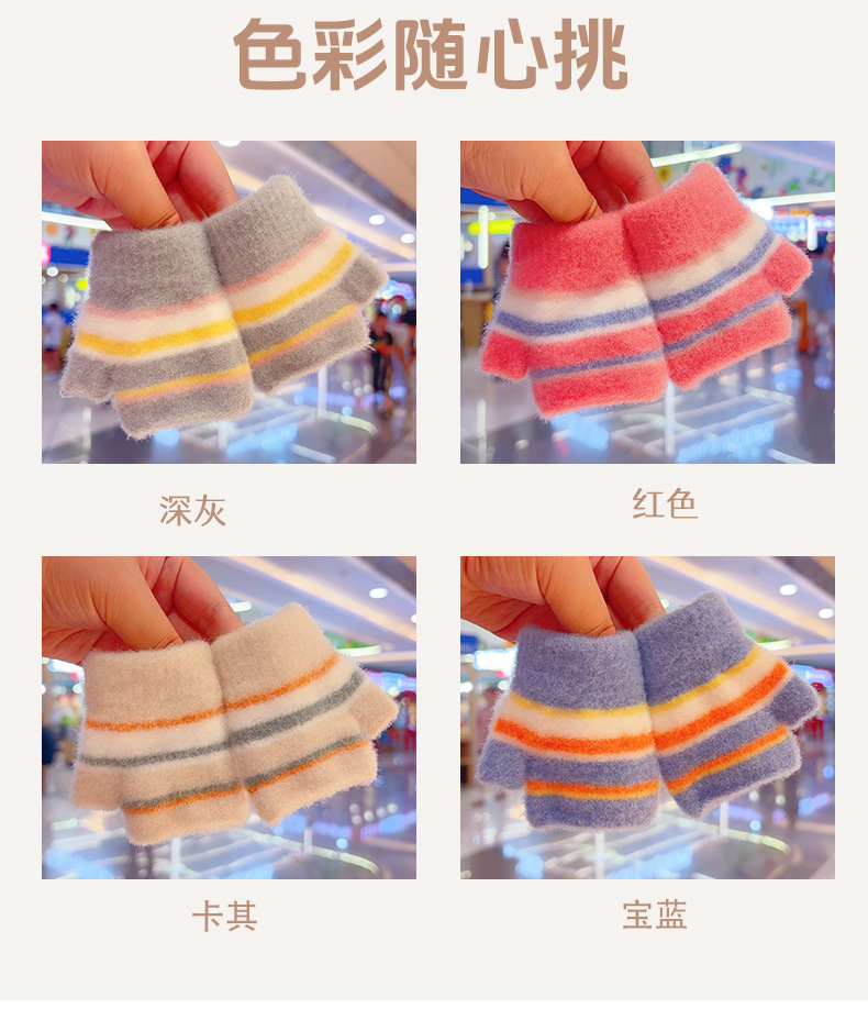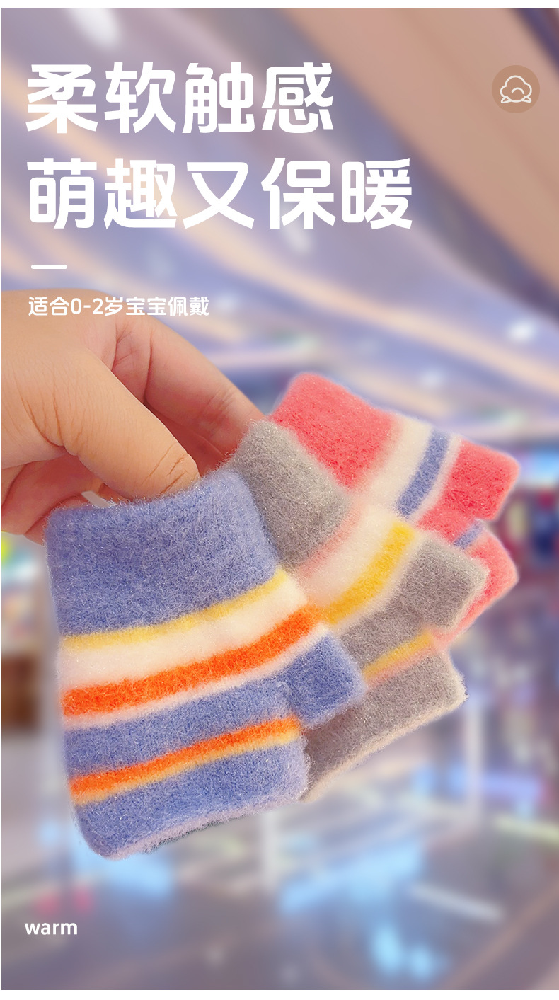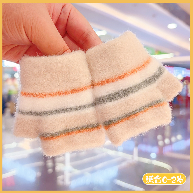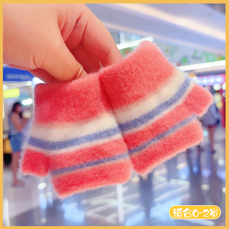 유아 0-2 세 아기 소녀 소년 니트 반 손가락 양모 따뜻하고 두꺼운 방한 겨울 어린이 장갑