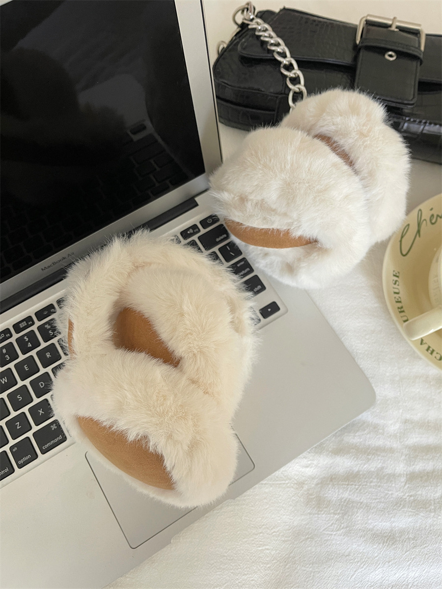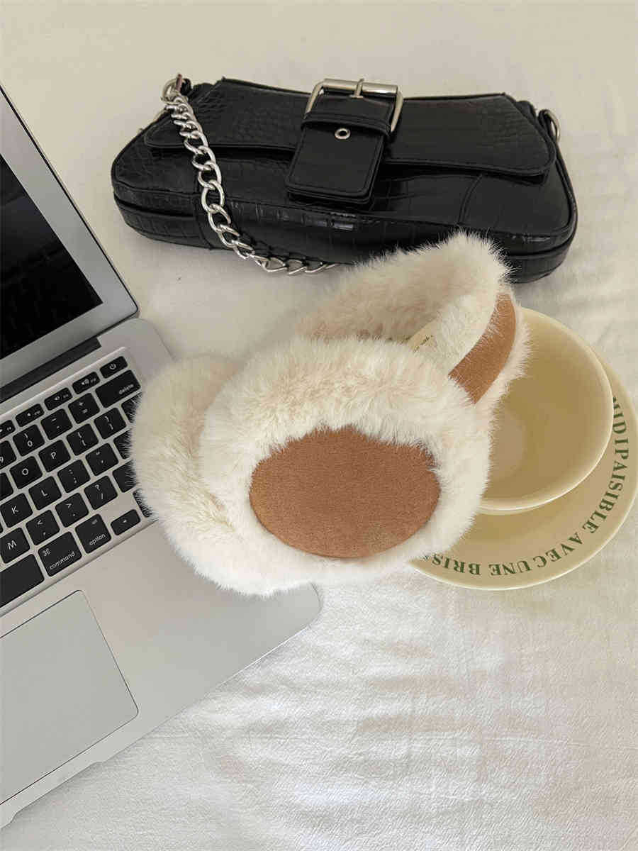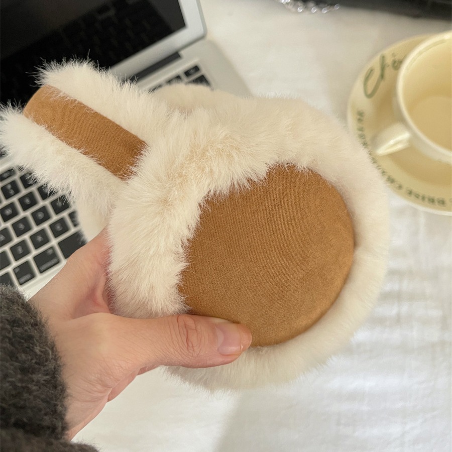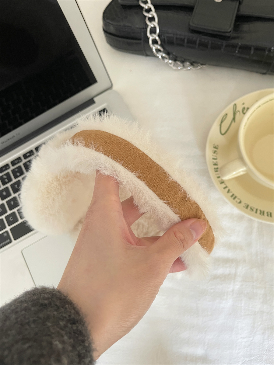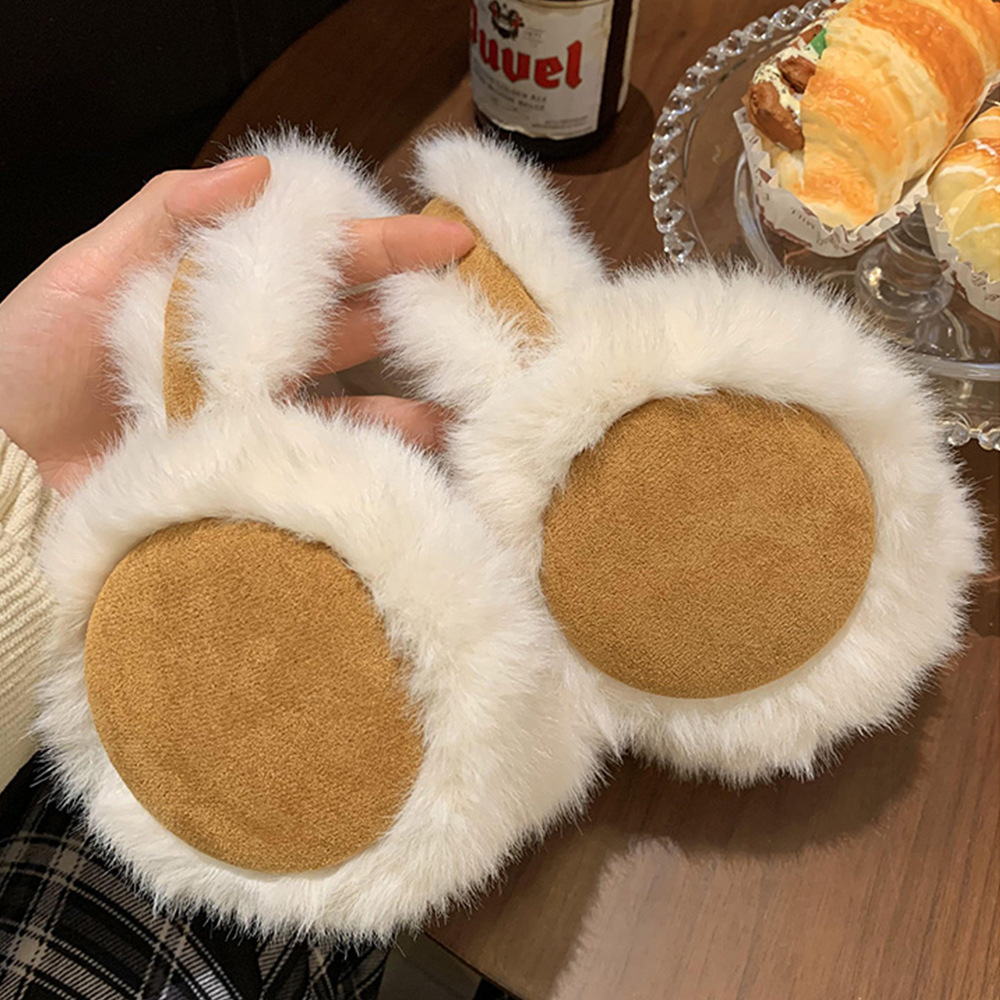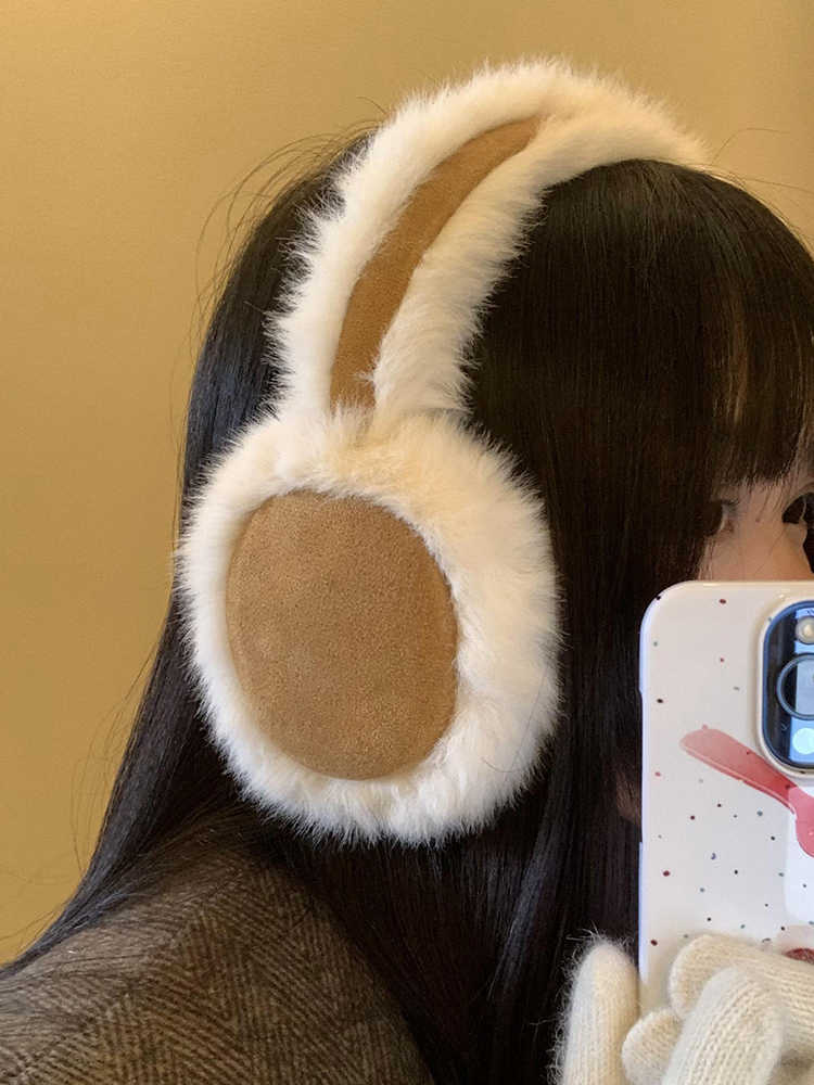 스웨이드 다크 브라운 귀마개 여성용 겨울 귀여운 봉제 귀 보호 따뜻한 봉제 귀마개