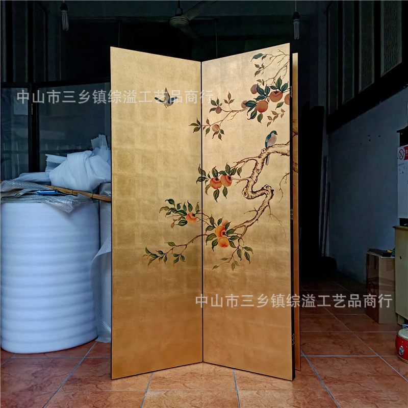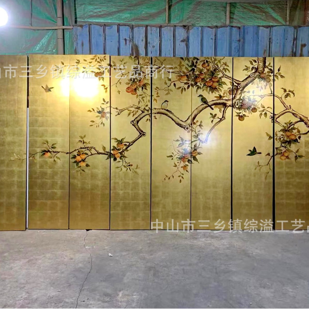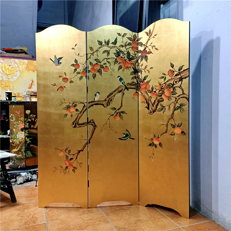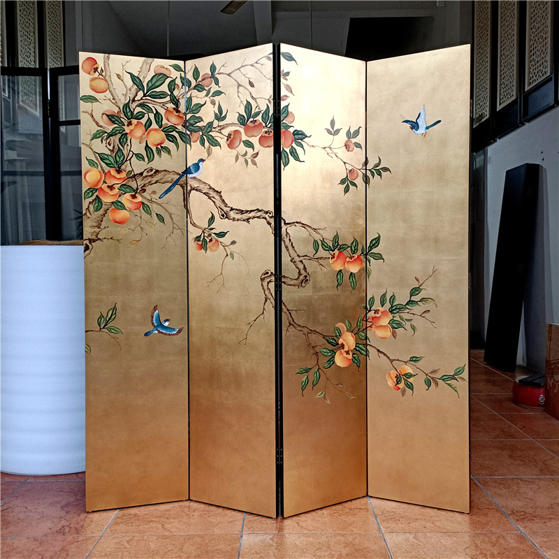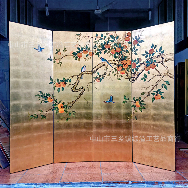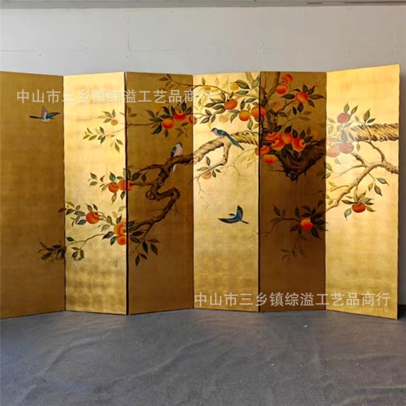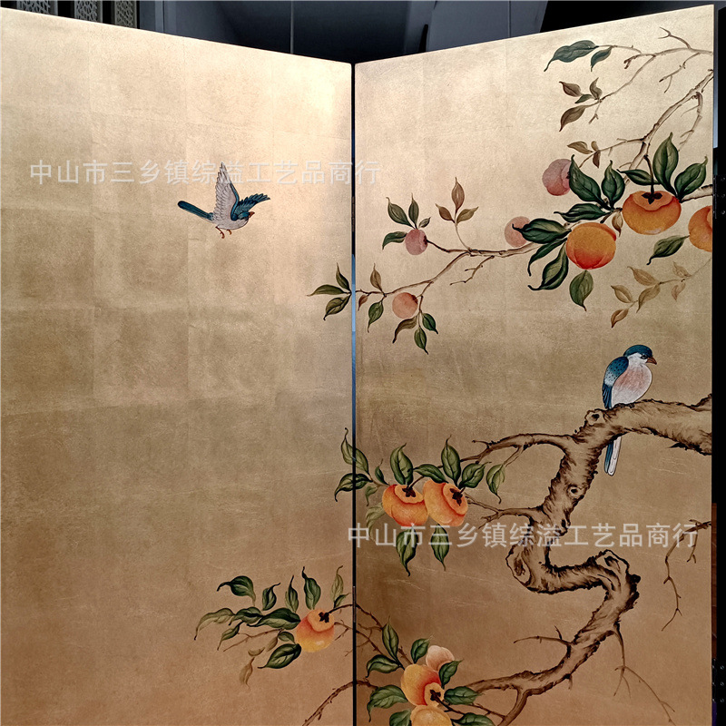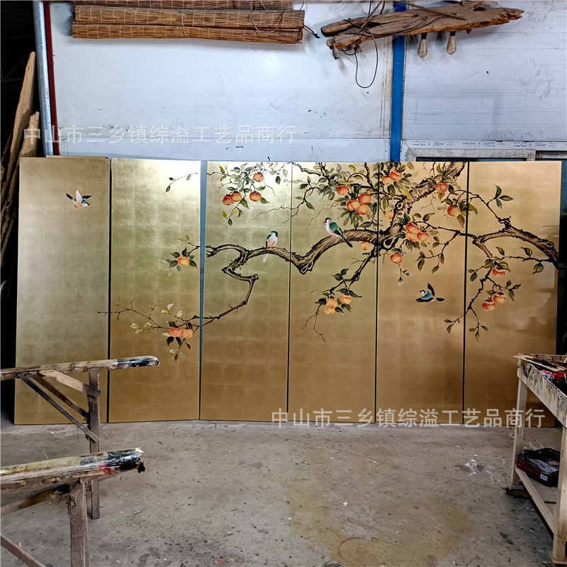 골드 호일 스크린 손으로 그린 모든 것이 잘 래커 그림 중국 거실 연구 파티션 단단한 나무 배경 모바일 접이식 화면스토어 가기