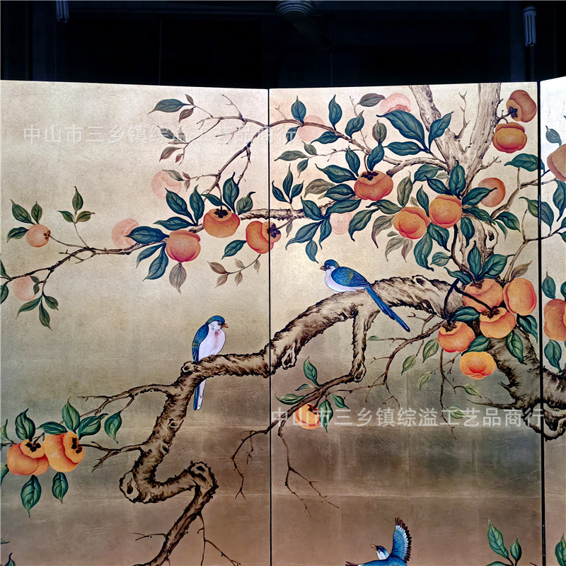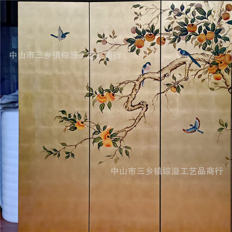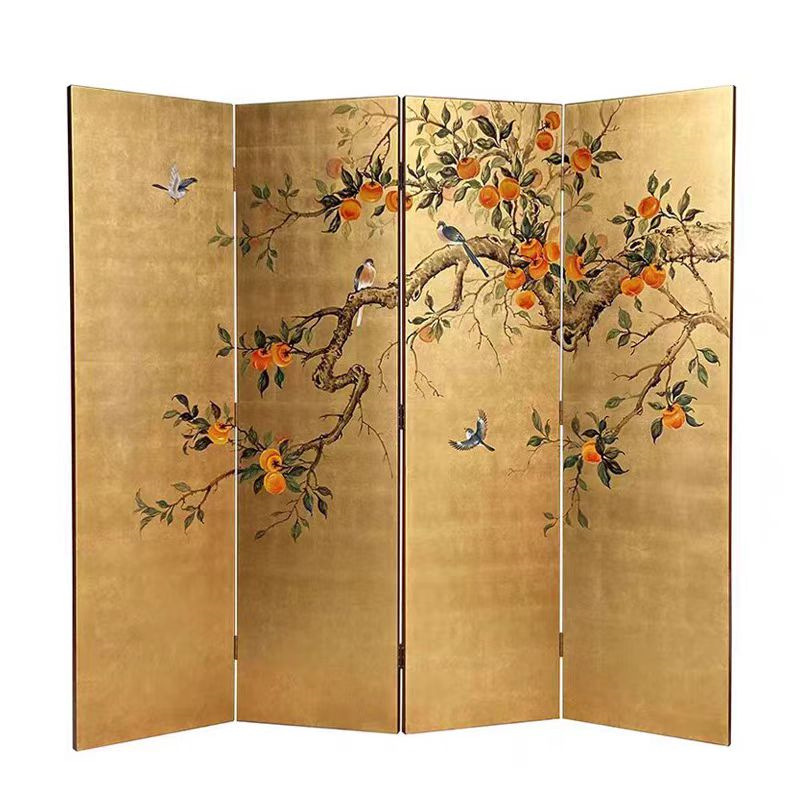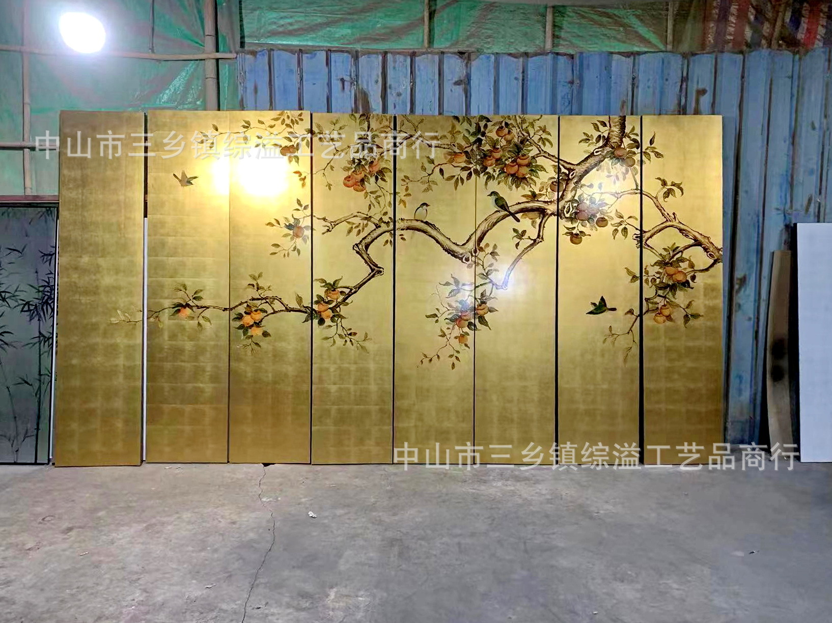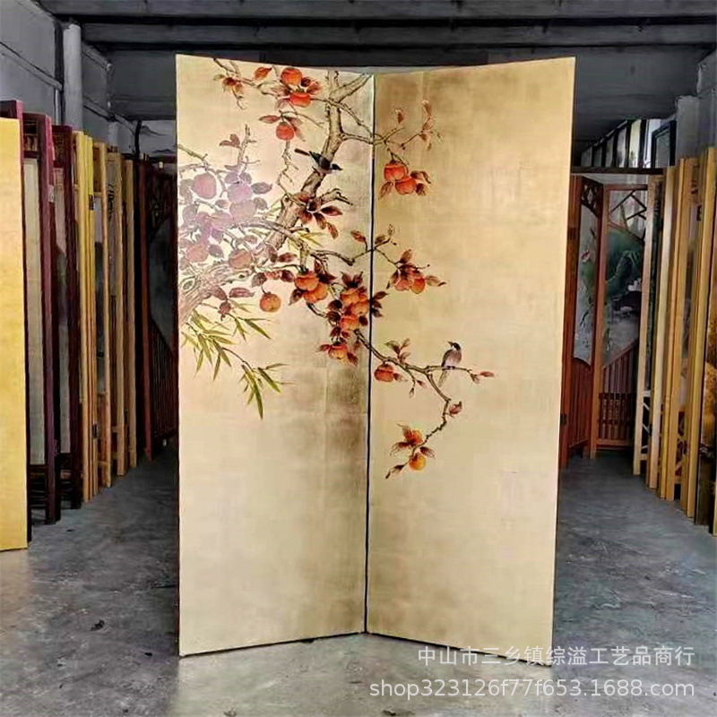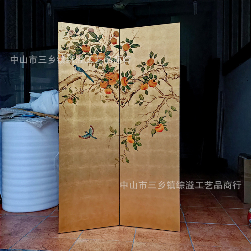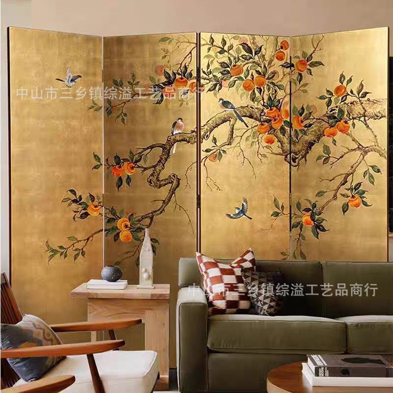 골드 호일 스크린 손으로 그린 모든 것이 잘 래커 그림 중국 거실 연구 파티션 단단한 나무 배경 모바일 접이식 화면스토어 가기