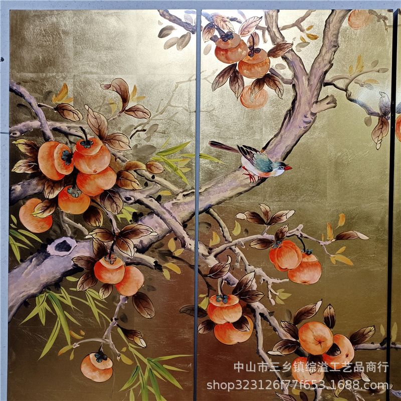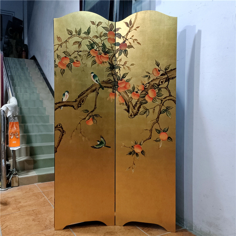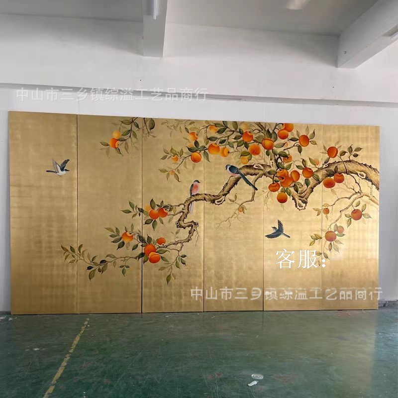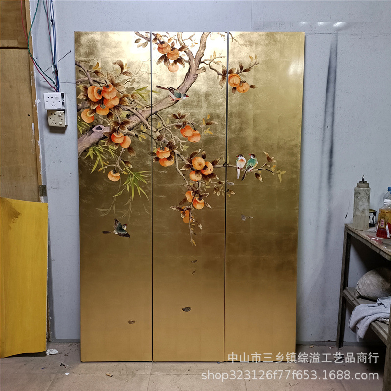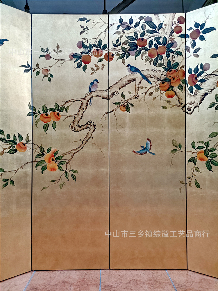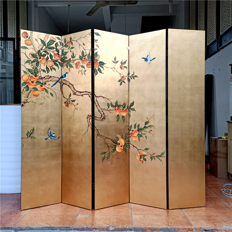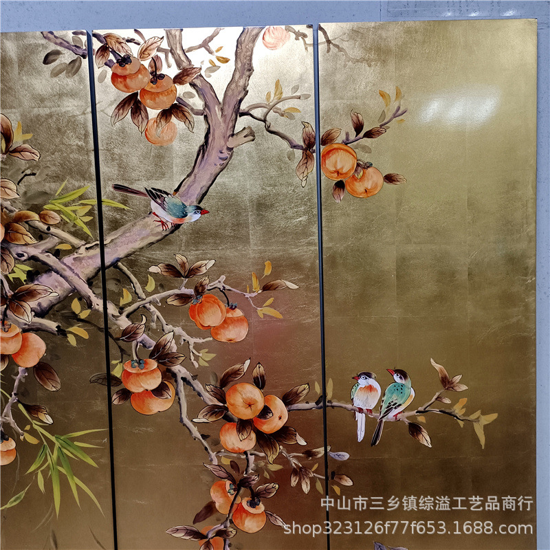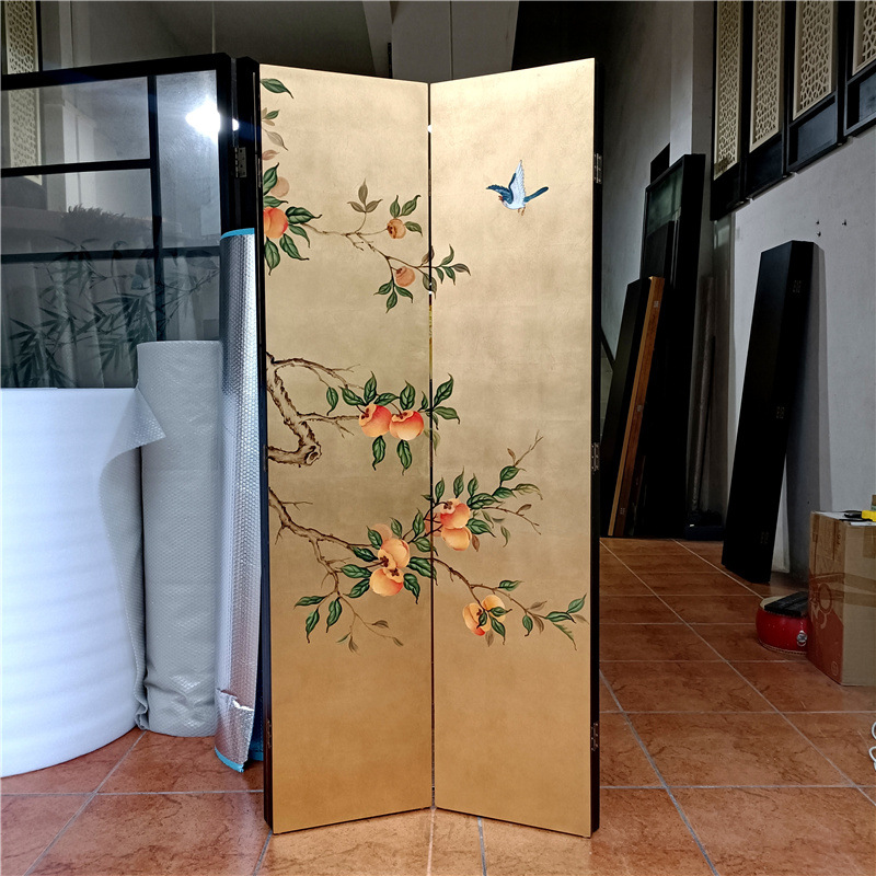 골드 호일 스크린 손으로 그린 모든 것이 잘 래커 그림 중국 거실 연구 파티션 단단한 나무 배경 모바일 접이식 화면스토어 가기
