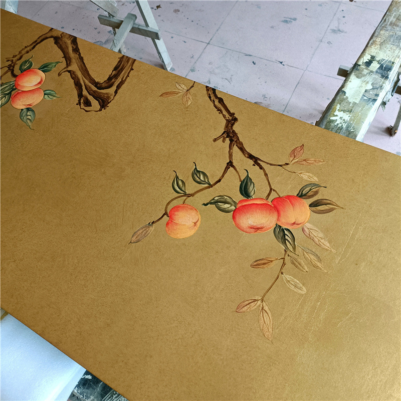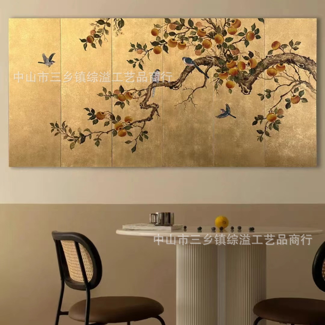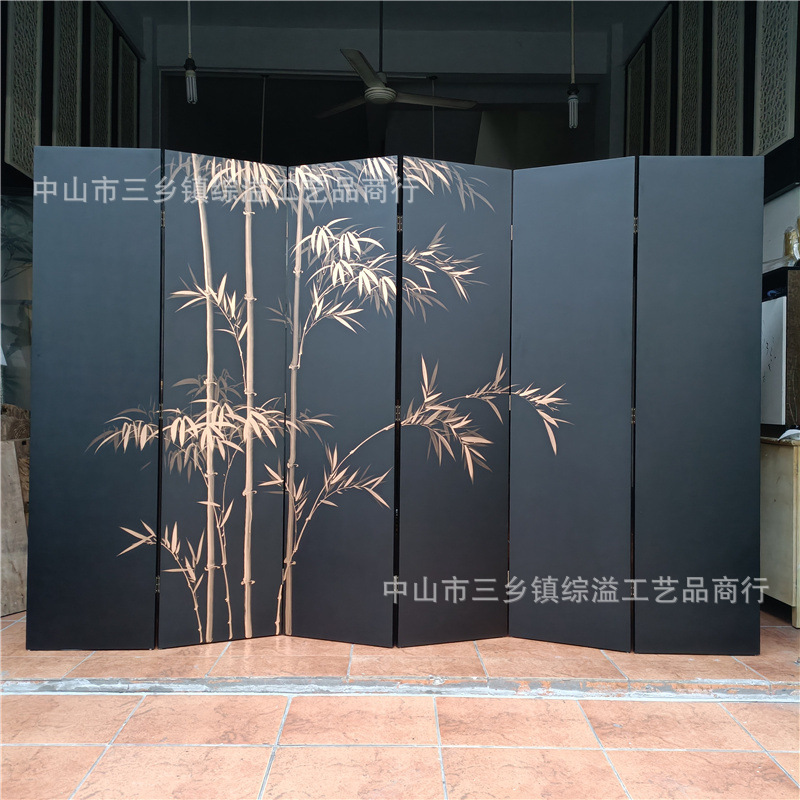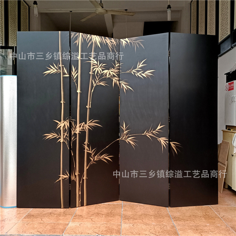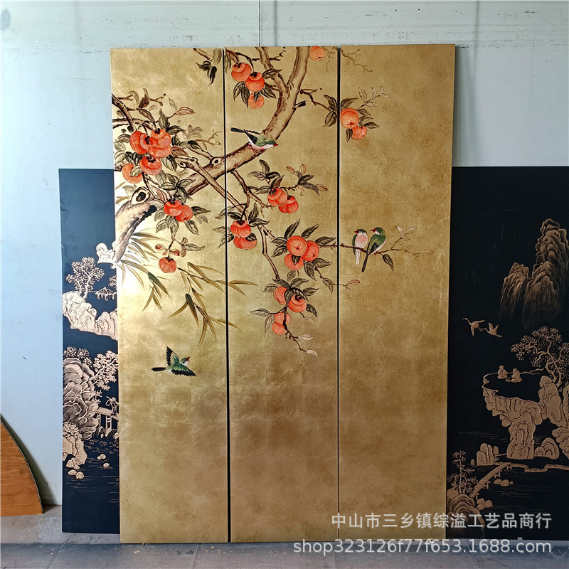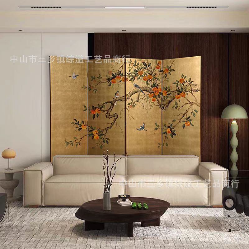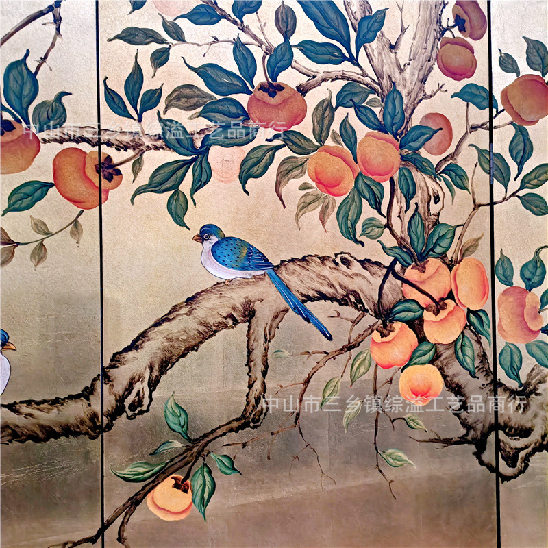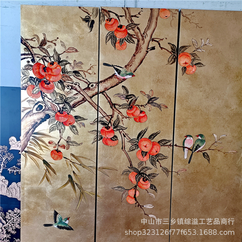 골드 호일 스크린 손으로 그린 모든 것이 잘 래커 그림 중국 거실 연구 파티션 단단한 나무 배경 모바일 접이식 화면스토어 가기