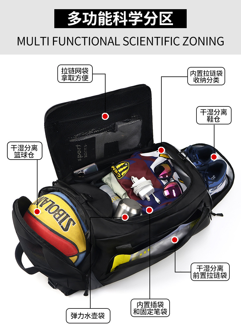 공장 맞춤형 피트니스 가방 다기능 맞춤형 축구 농구 클럽 건식 및 습식 분리 휴대용 여행 수하물 가방