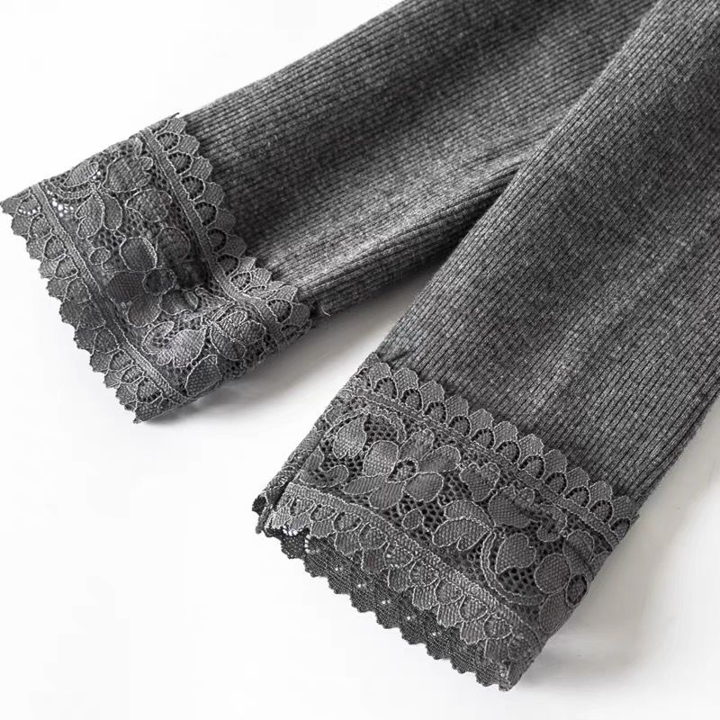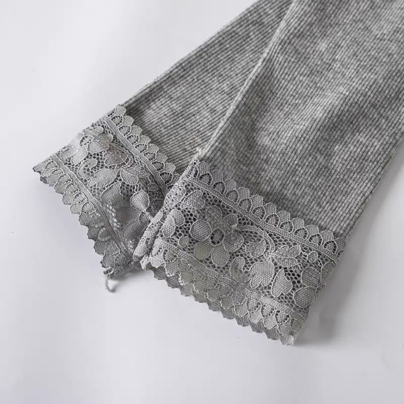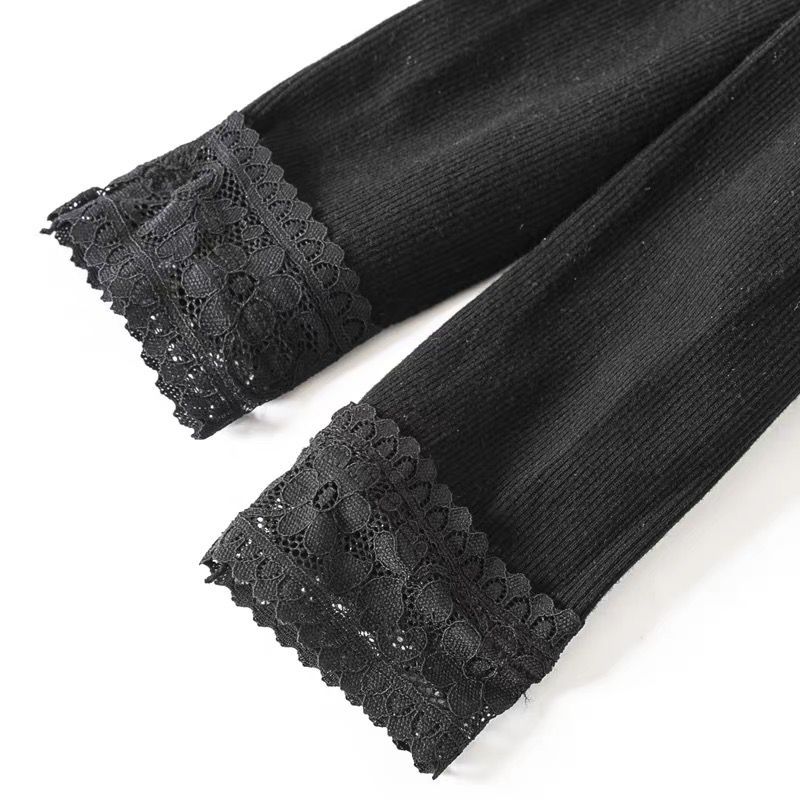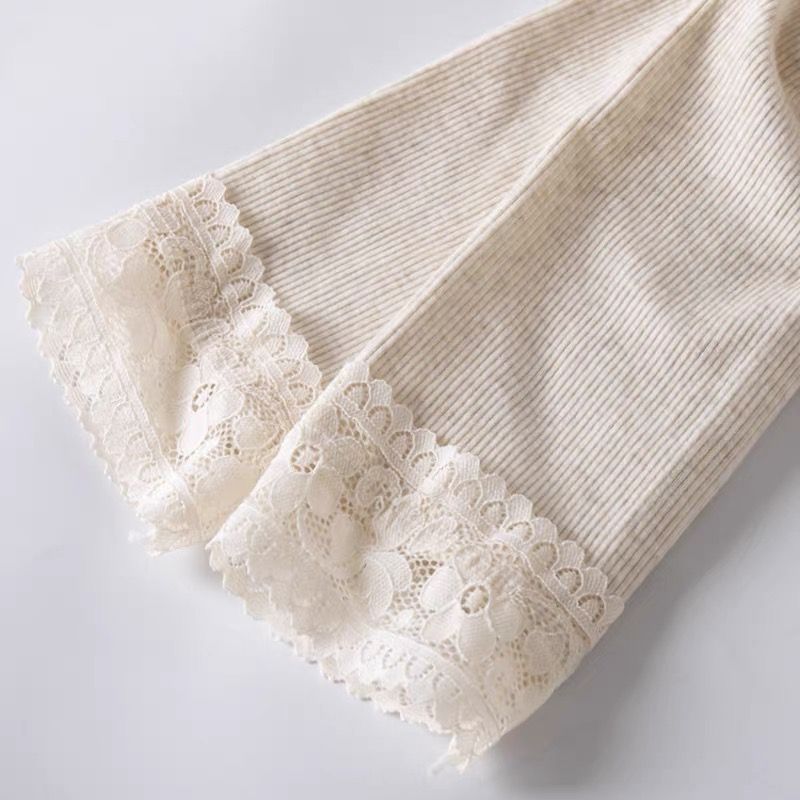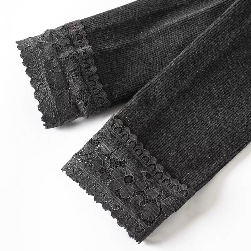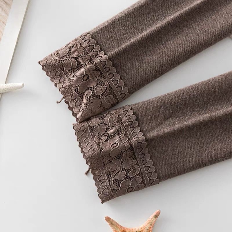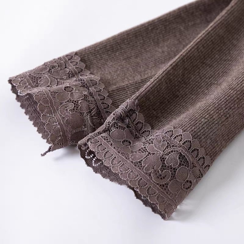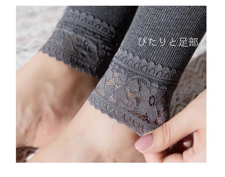 가을과 겨울 여성의 기모 두꺼운 줄무늬 다리 외부 착용 슬리밍 레이스 자른 따뜻한 바지 수직 스트립