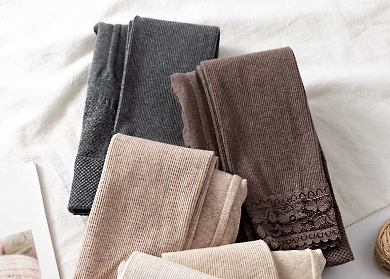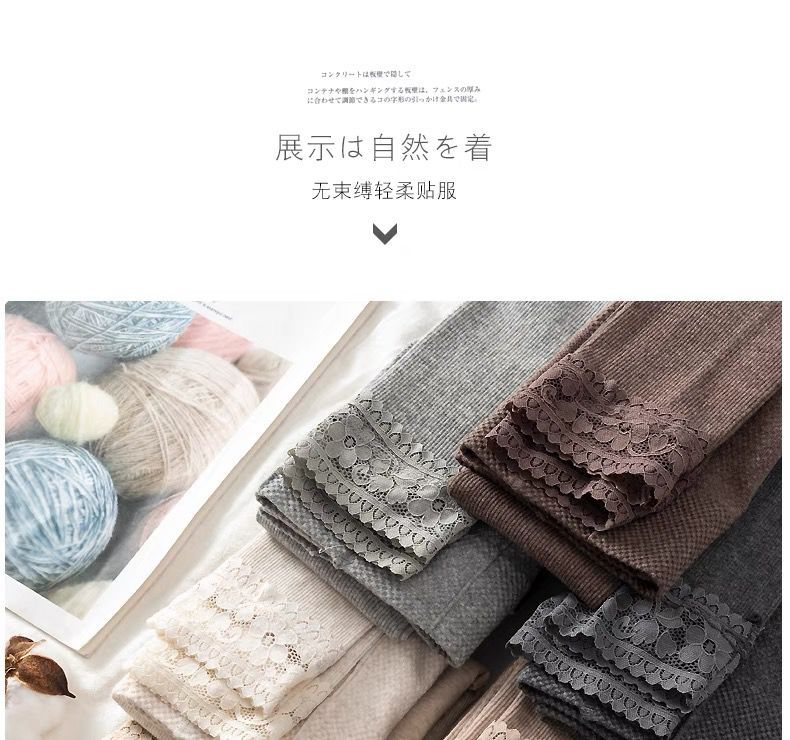 가을과 겨울 여성의 기모 두꺼운 줄무늬 다리 외부 착용 슬리밍 레이스 자른 따뜻한 바지 수직 스트립스토어 가기