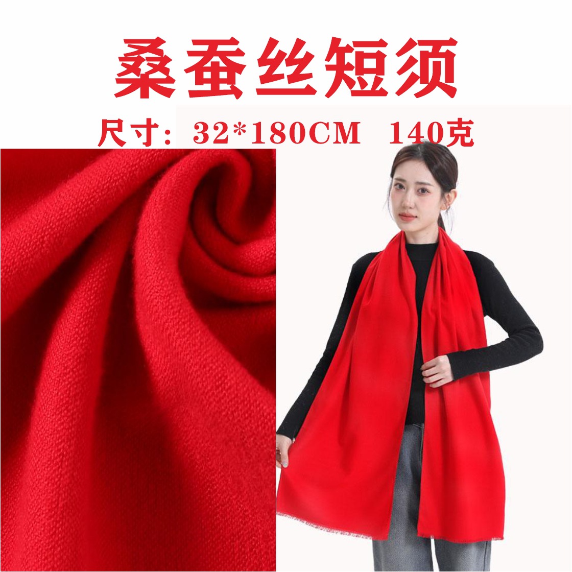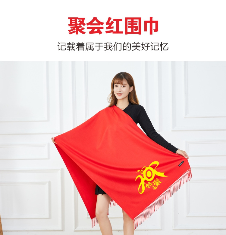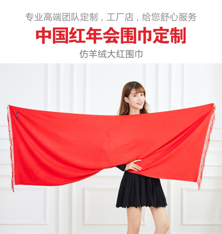 중국 레드 컨퍼런스 레드 스카프 맞춤 로고 레드 자수 인쇄 선물 귀향 스카프