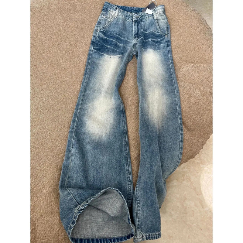 아메리칸 스타일 레트로 핫 소녀 낮은 상승 마이크로 라 청바지 여성의 2024 가을 새 스타일 세탁 슬리밍 느슨한 스트레이트 바지스토어 가기