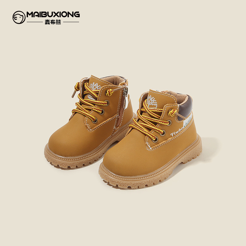 마이부 베어 아기 신발 봄과 가을 아기 신발 유아 소년 마틴 부츠 걸스 가죽 신발 어린이 짧은 부츠스토어 가기