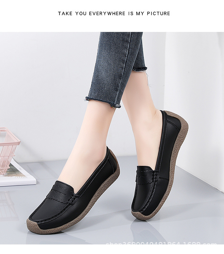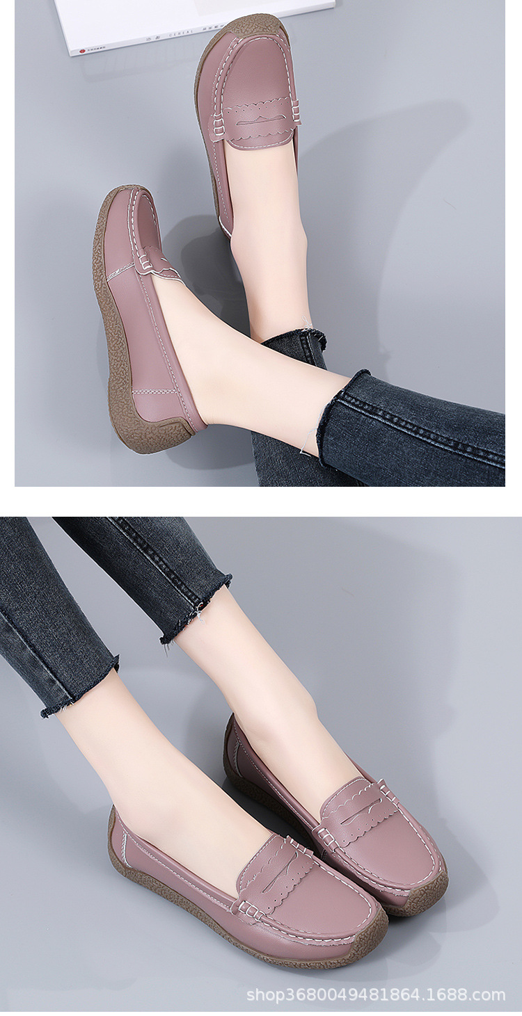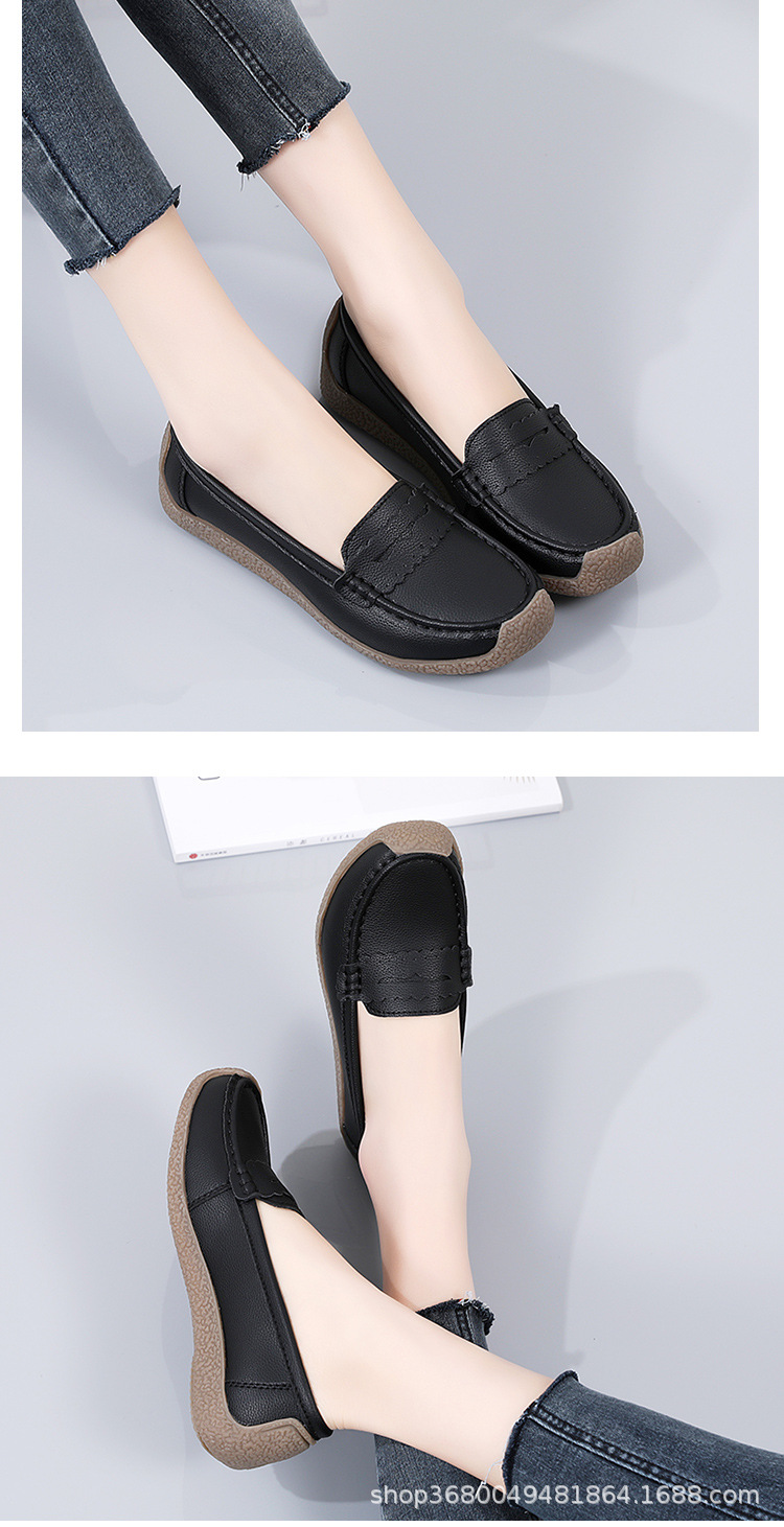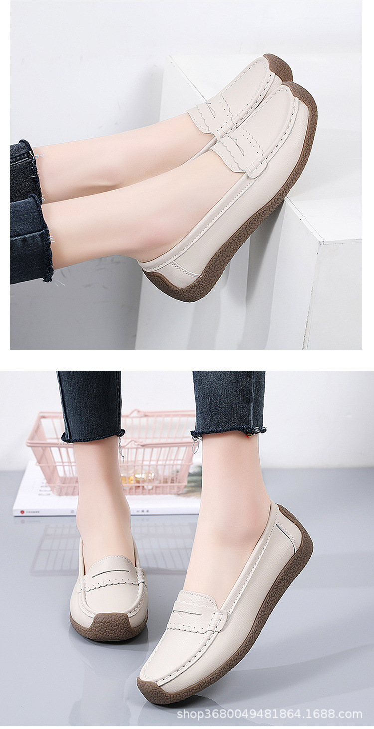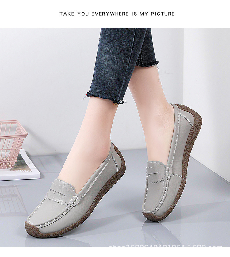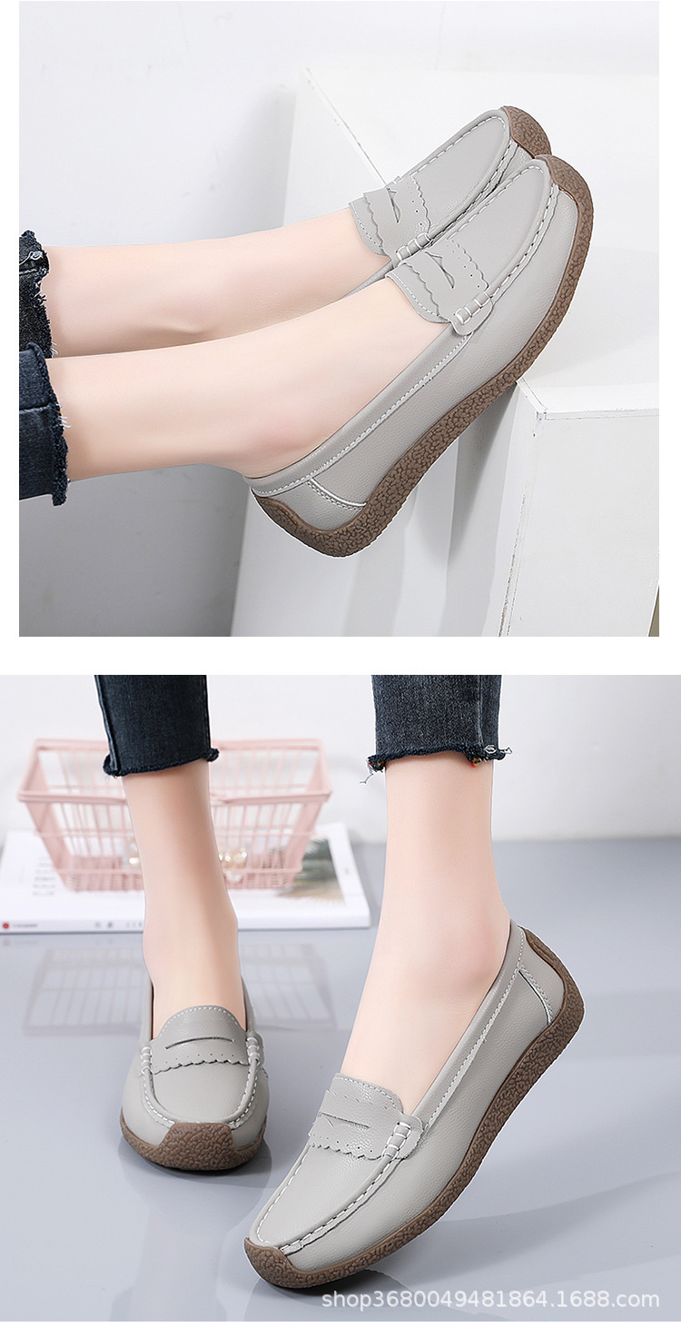 빅사이즈 여성화 천연가죽 엄마 신발 여성용 레이지 슈즈 고무밑창 로우컷 편안한 여성화 단화 35-44스토어 가기