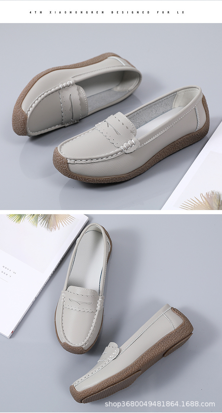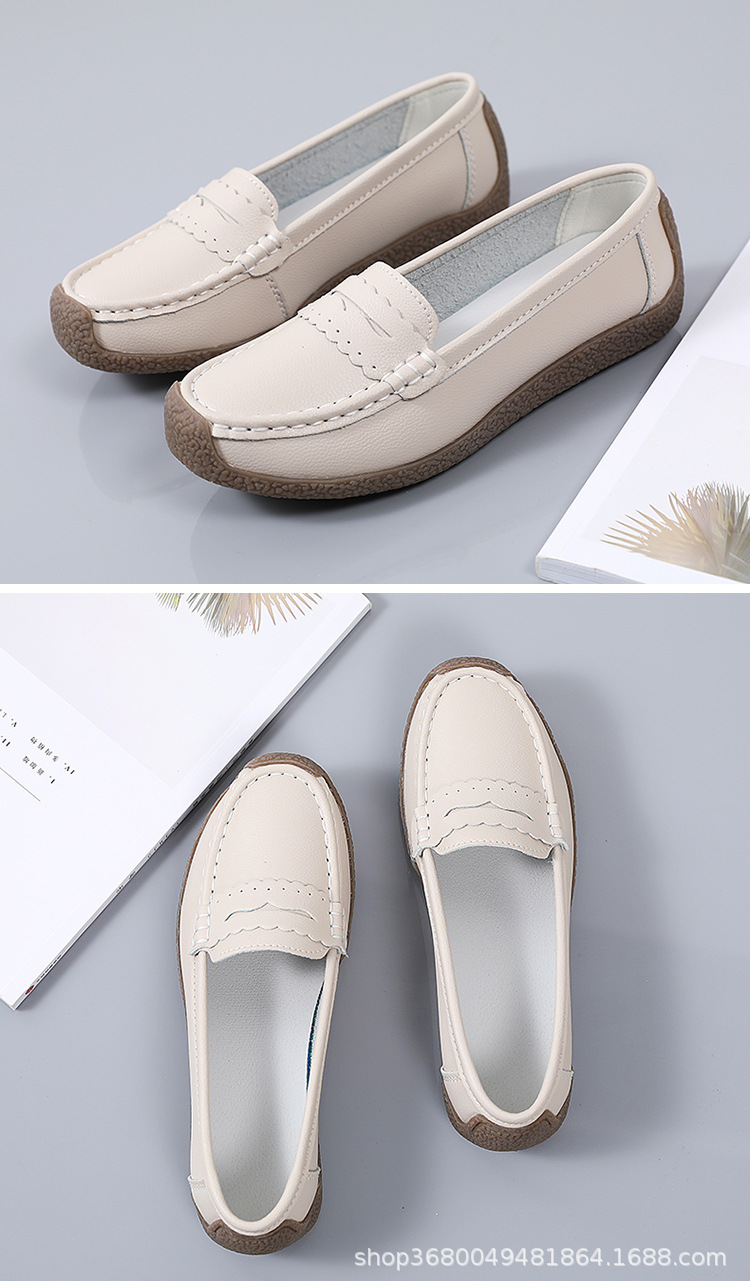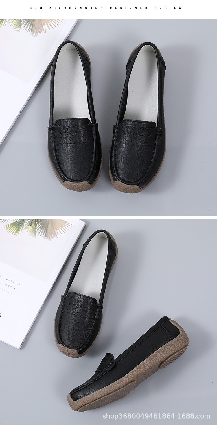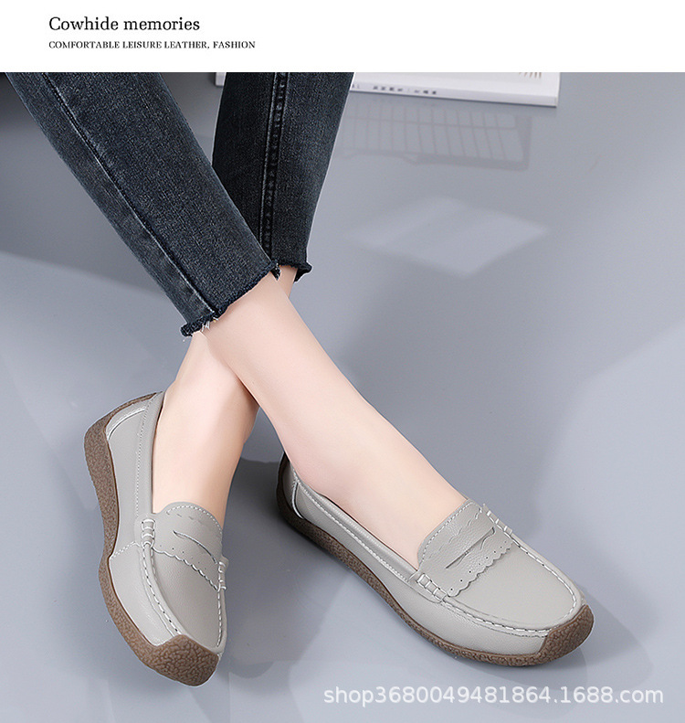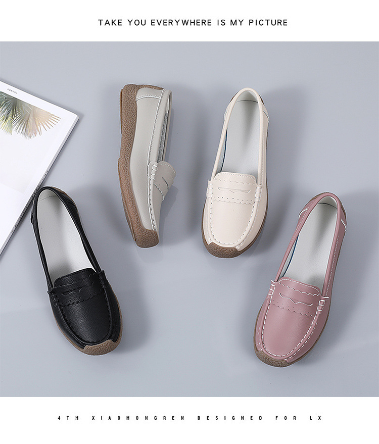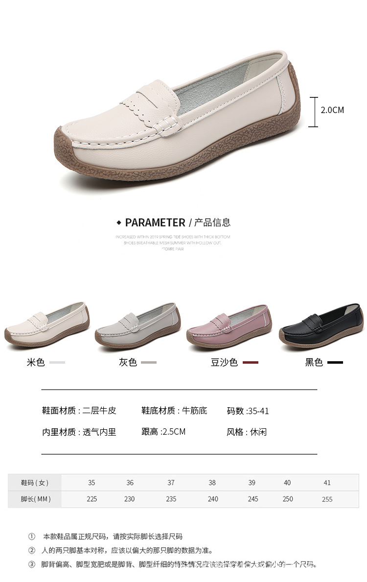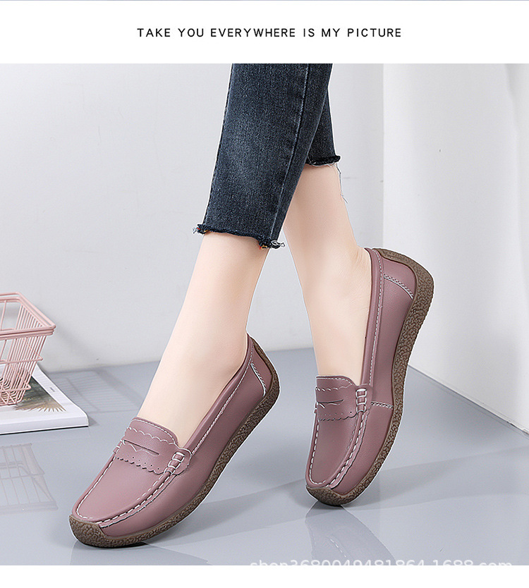 빅사이즈 여성화 천연가죽 엄마 신발 여성용 레이지 슈즈 고무밑창 로우컷 편안한 여성화 단화 35-44스토어 가기