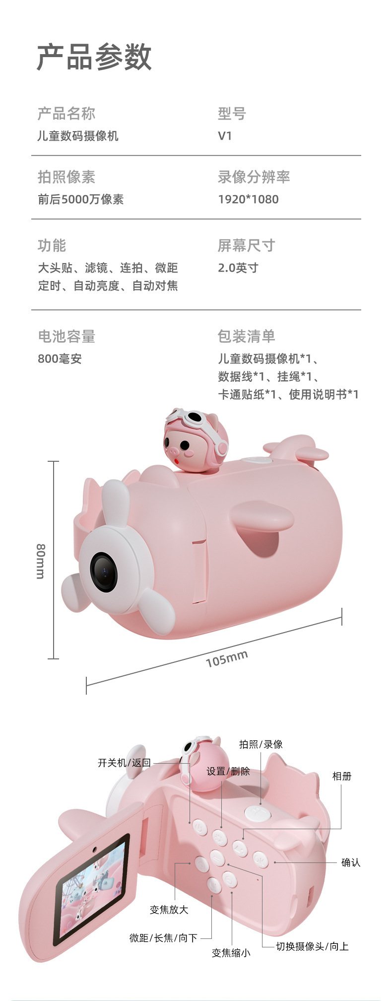 휴대용 DV 5 천만 어린이 비디오 카메라 V1 더블 사진 어린이 디지털 카메라 생일 새해 선물 돼지 어린이스토어 가기