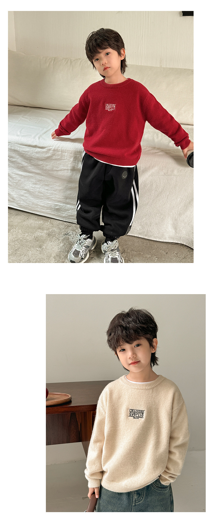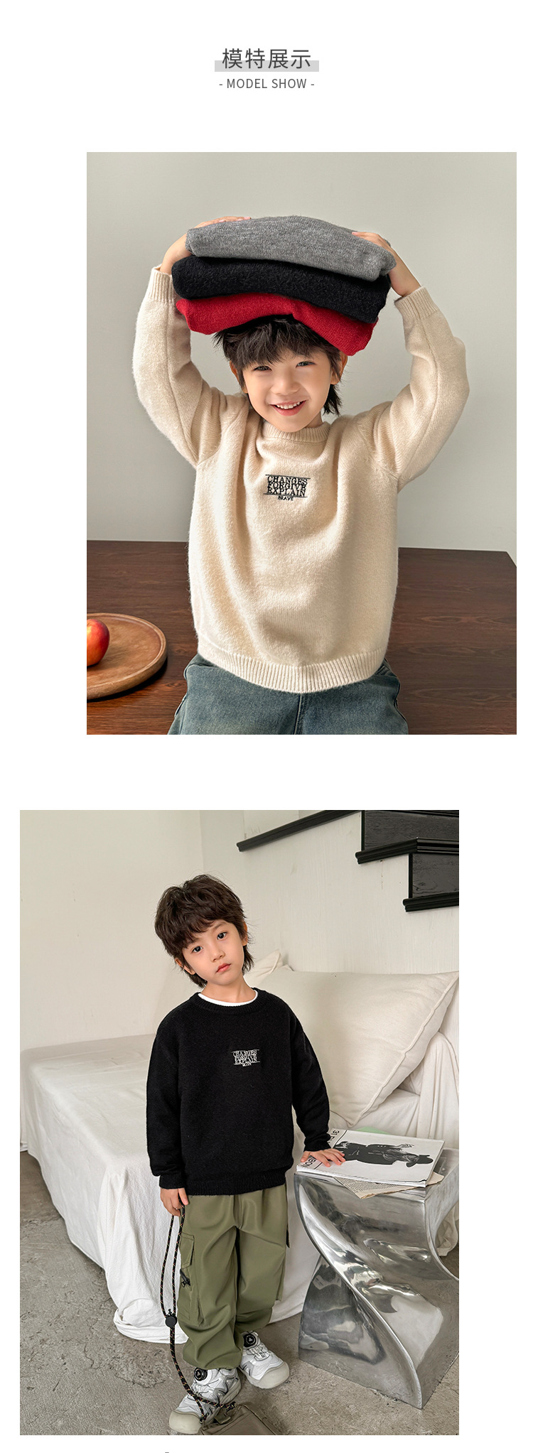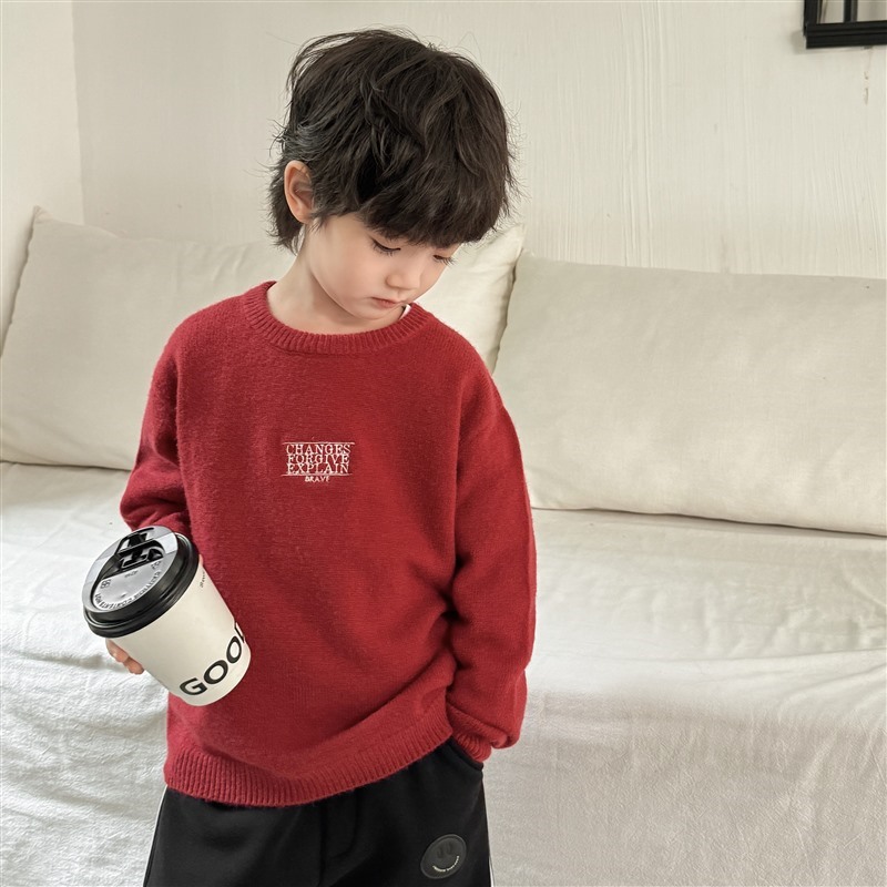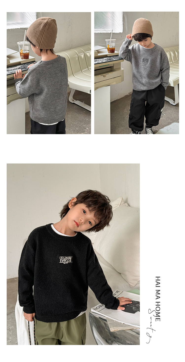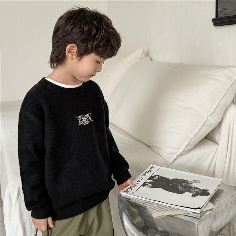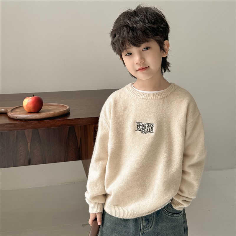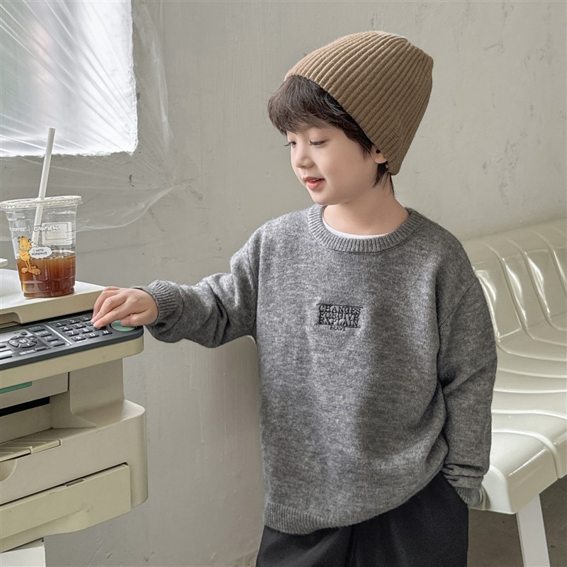 2025년 신상 남아 패션 한국 스타일 부드러운 라운드넥 스웨터, 스타일리시한 아동복 니트웨어 겨울 상의스토어 가기