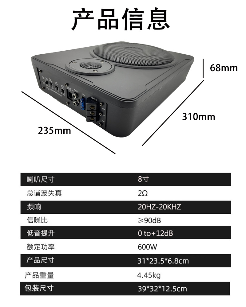 공장 직접 판매 자동차 오디오 수정 알루미늄 합금 12V 소형 강철 총 8inch 10inch 자동차 초박형 서브 우퍼스토어 가기