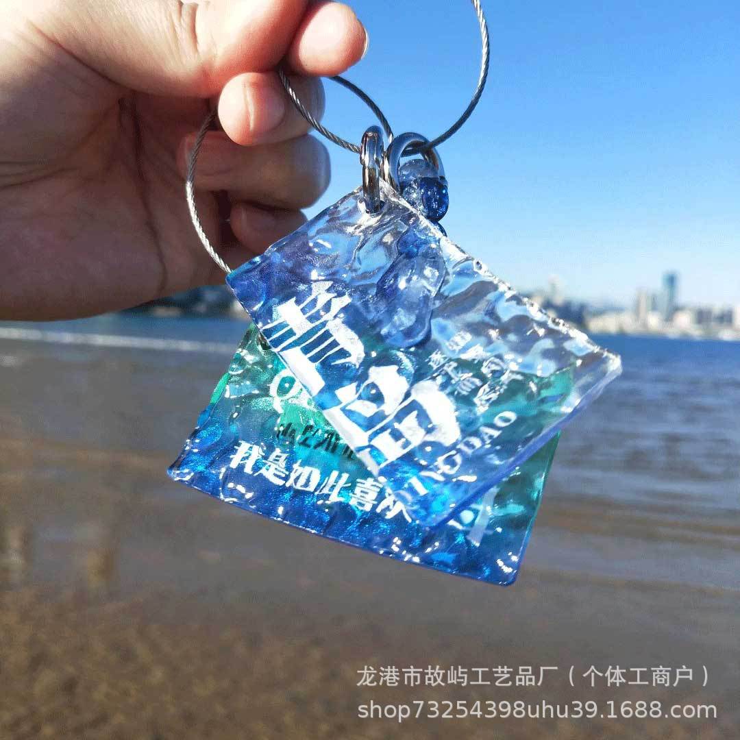 관광 도시 주변 키 체인 맞춤형 워터 리플 그라디언트 아크릴 펜던트 창조적 인 도시 카드 키 체인