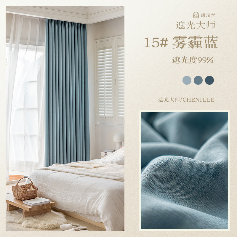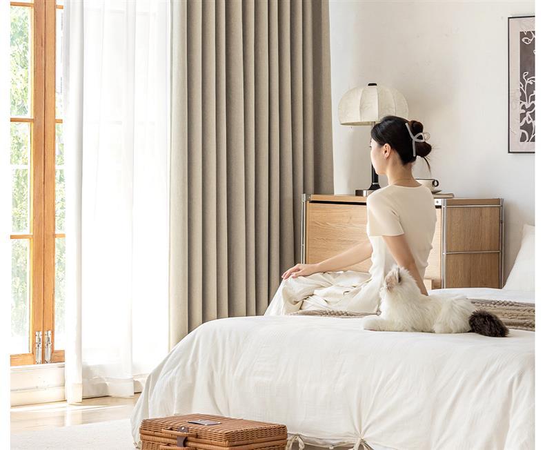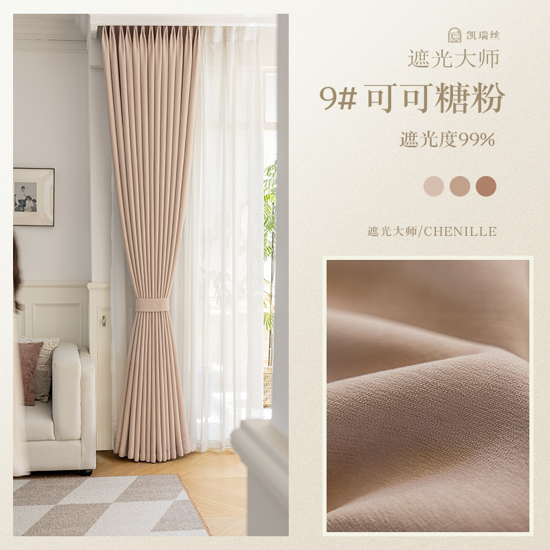 소흥 블랙 실크 프렌치 하이 센스 셔널 셰이딩 두꺼운 커튼 완공 거실 침실 햇빛 커튼 도매