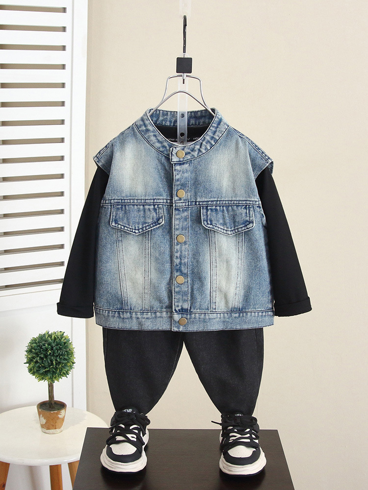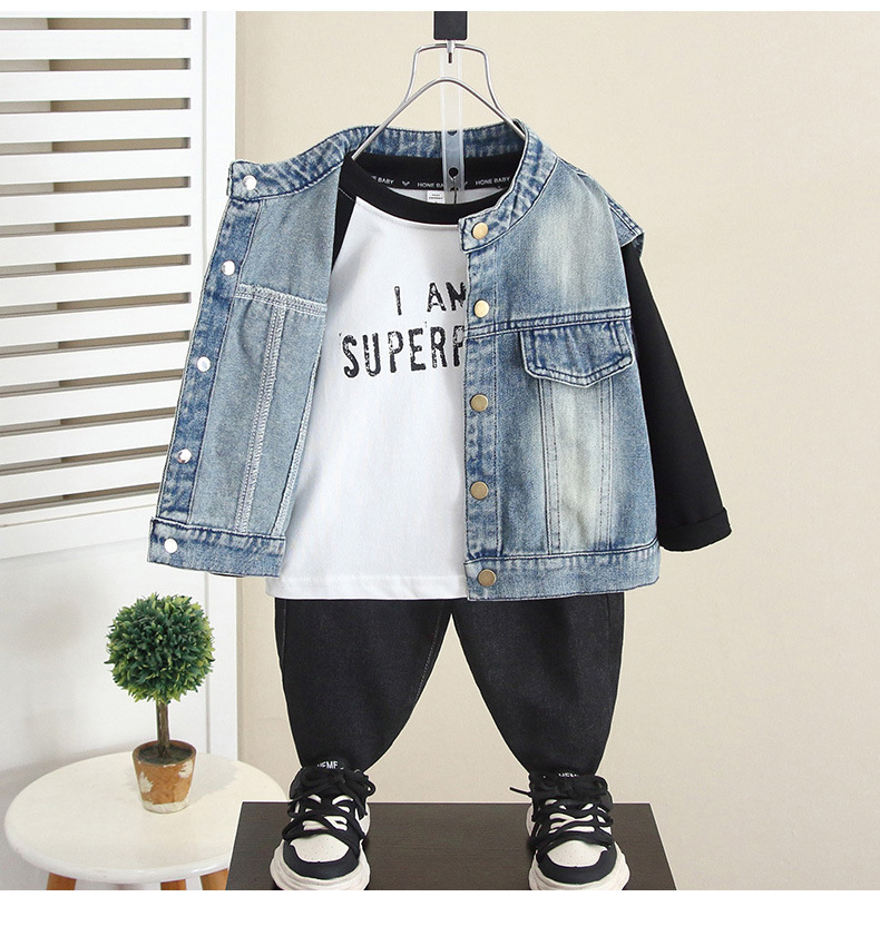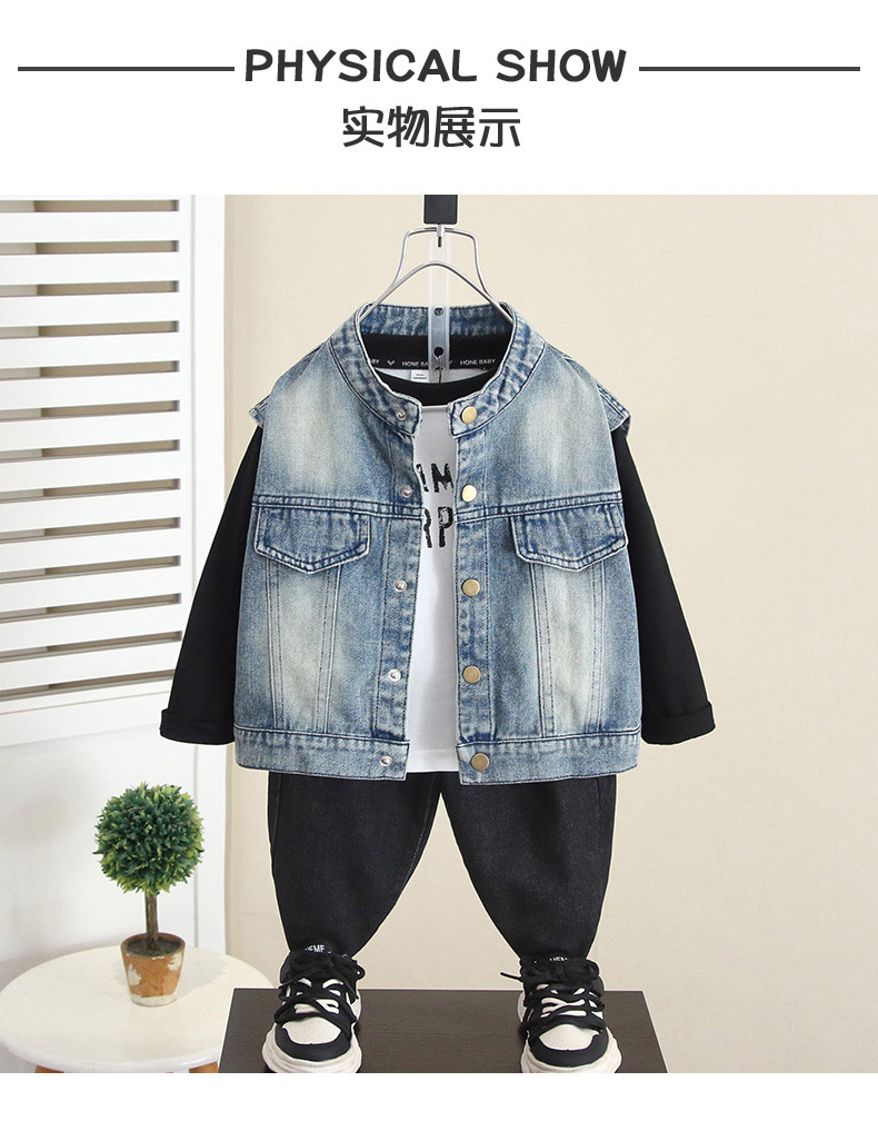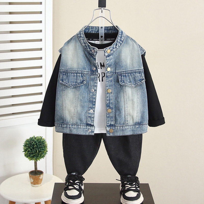 6263 소년 가을 데님 조끼 2025 새로운 어린이 봄, 가을 한국 스타일 조끼 소년 겉옷 조끼 유행스토어 가기