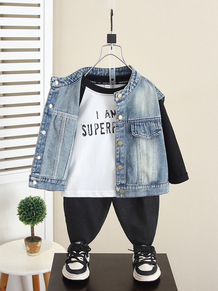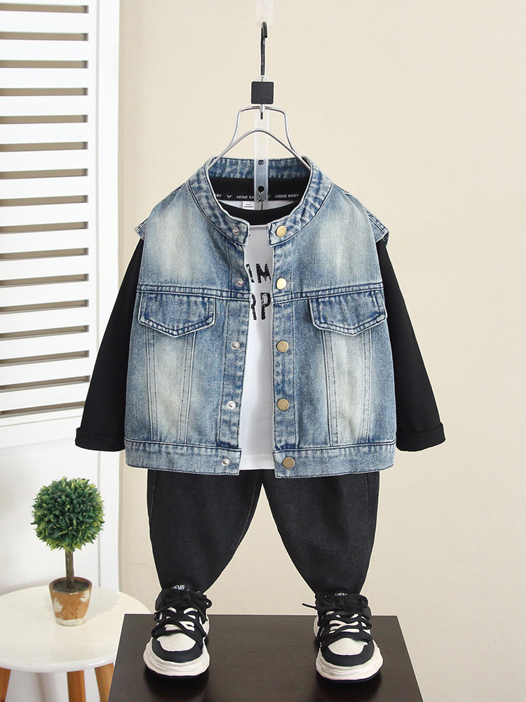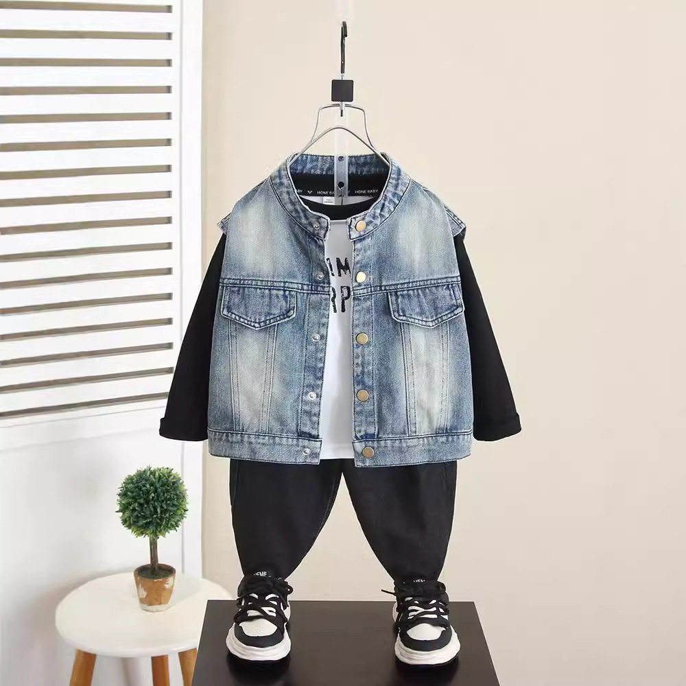 6263 소년 가을 데님 조끼 2025 새로운 어린이 봄, 가을 한국 스타일 조끼 소년 겉옷 조끼 유행