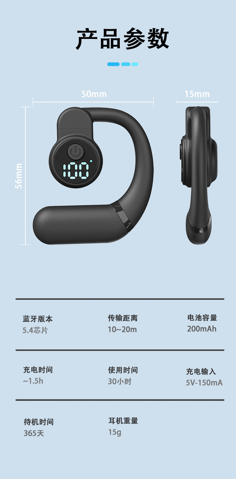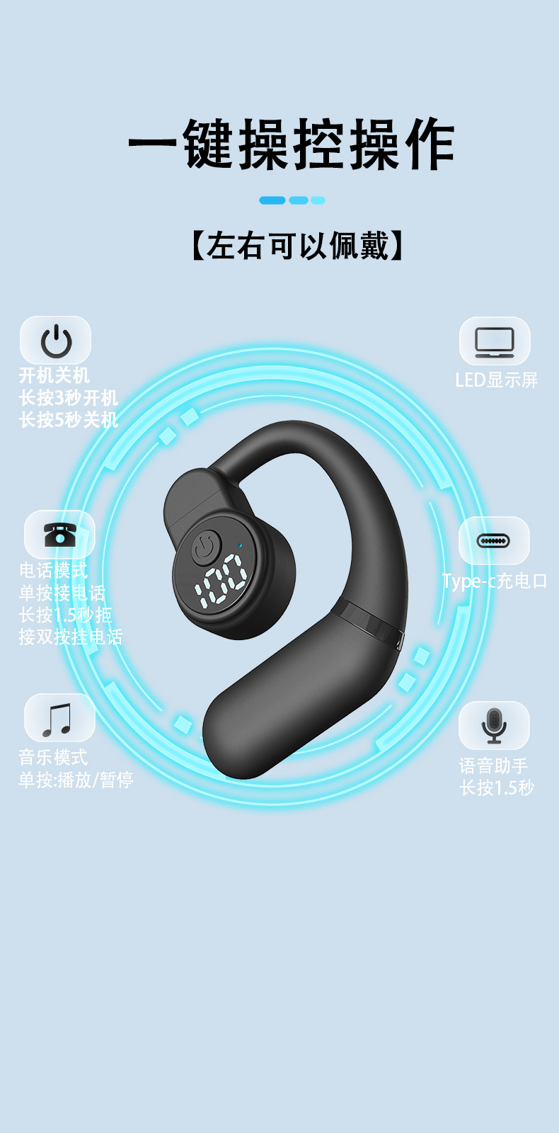 새로운 무선 블루투스 헤드셋 귀 장착 스포츠 안티 드롭 왼쪽과 오른쪽으로 착용 할 수있는 긴 내구성 휴대 전화 유니버설
