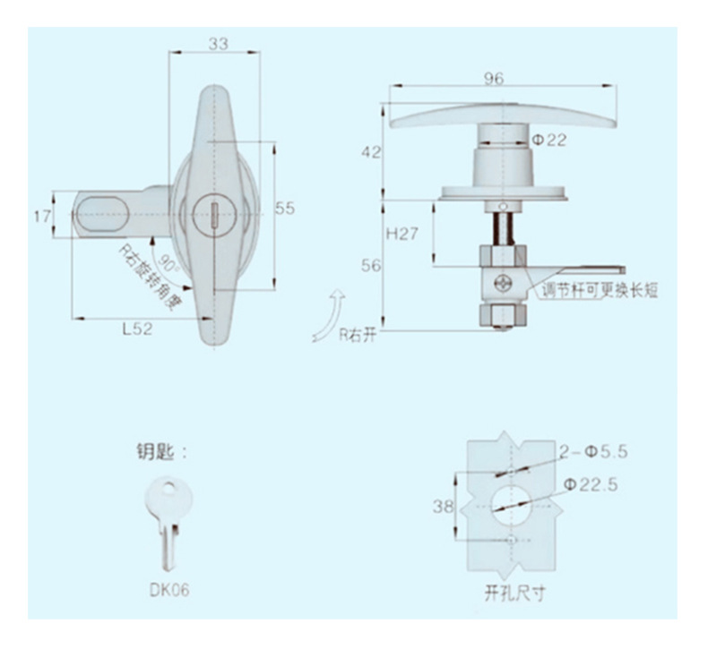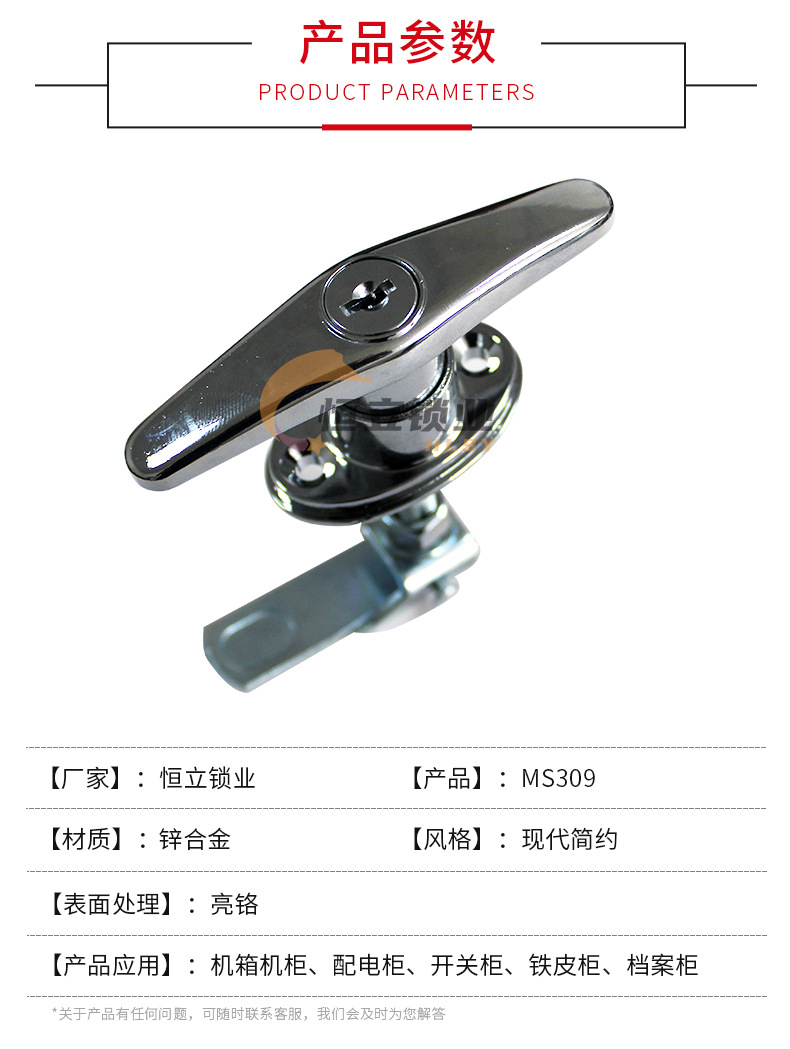 MS309 밝은 크롬 핸들 잠금 T 형 핸들 잠금 전기 캐비닛 도어 잠금 캐비닛 캐비닛 도어 핸들 차고 잠금 장치