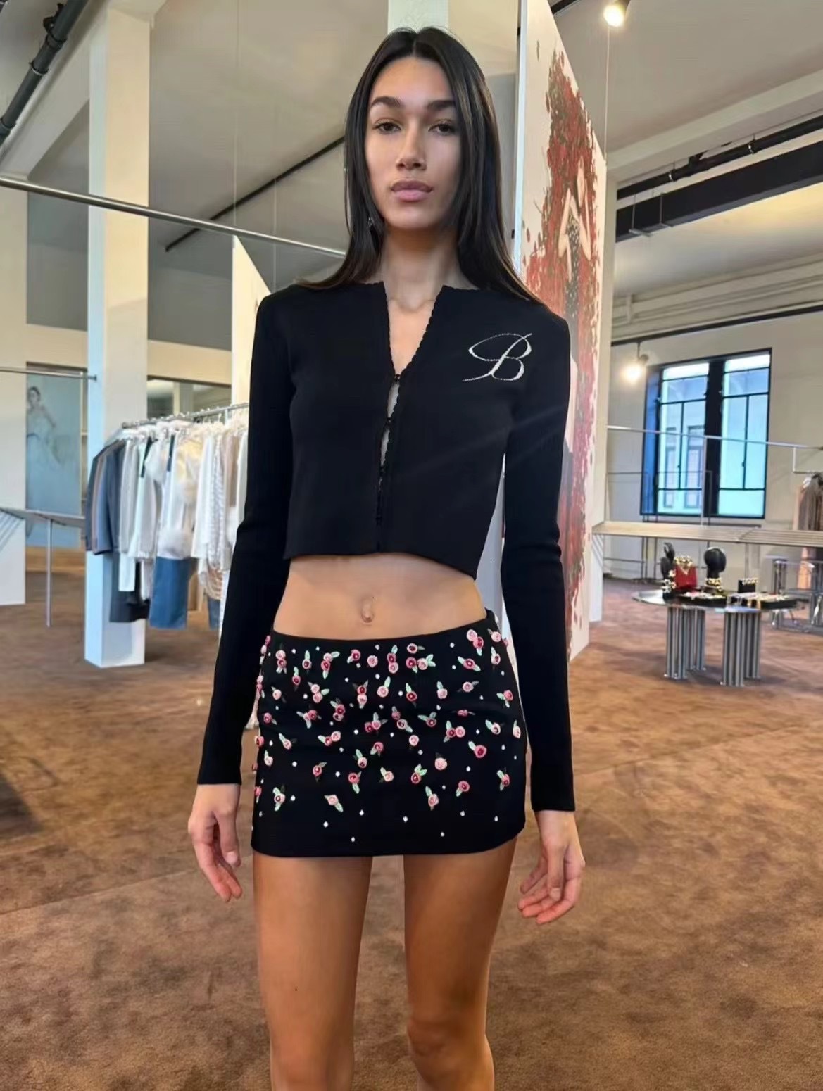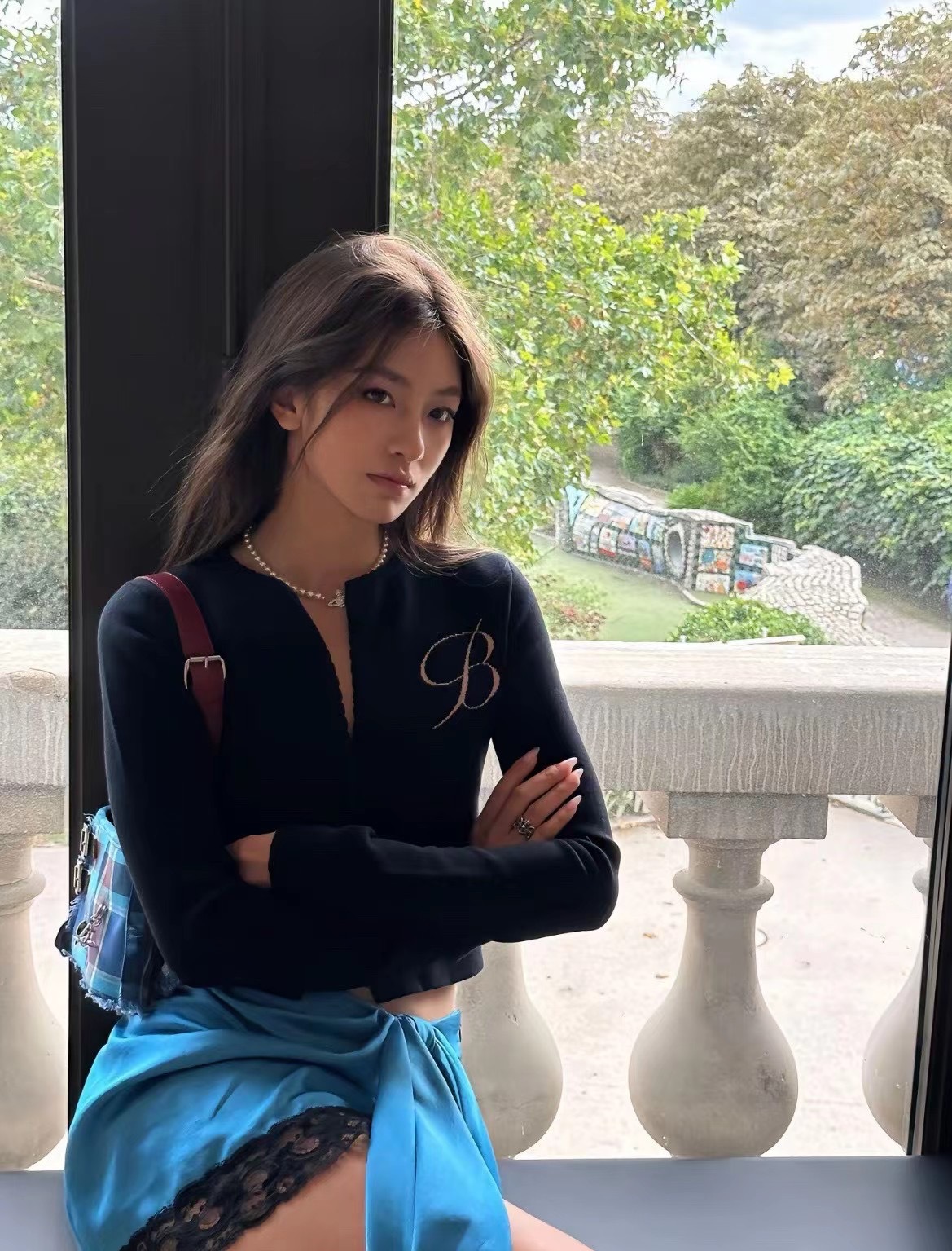 Blumarin * 틈새 디자인 프랑스 고급 사교계 레이스 자수 와플 후크 카디건 여성스토어 가기