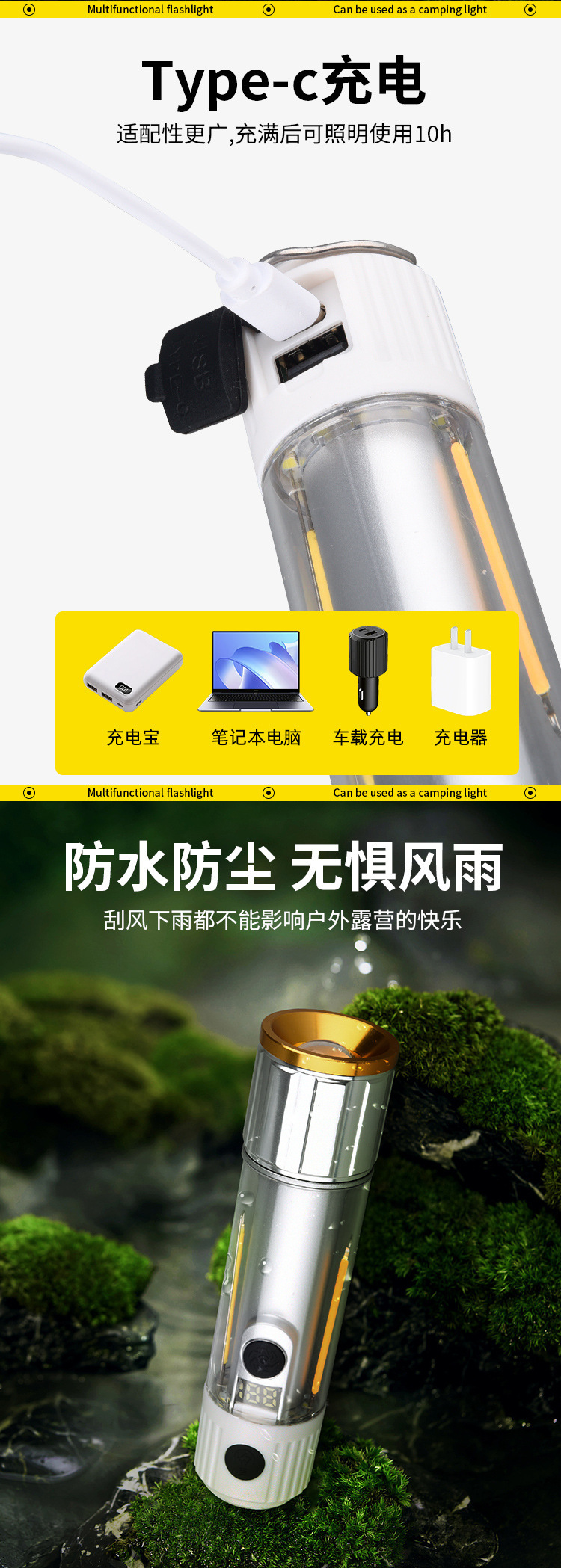 새로운 다기능 손전등 강한 빛 장거리 야외 후크 작업 조명 충전식 캠핑 텐트 조명