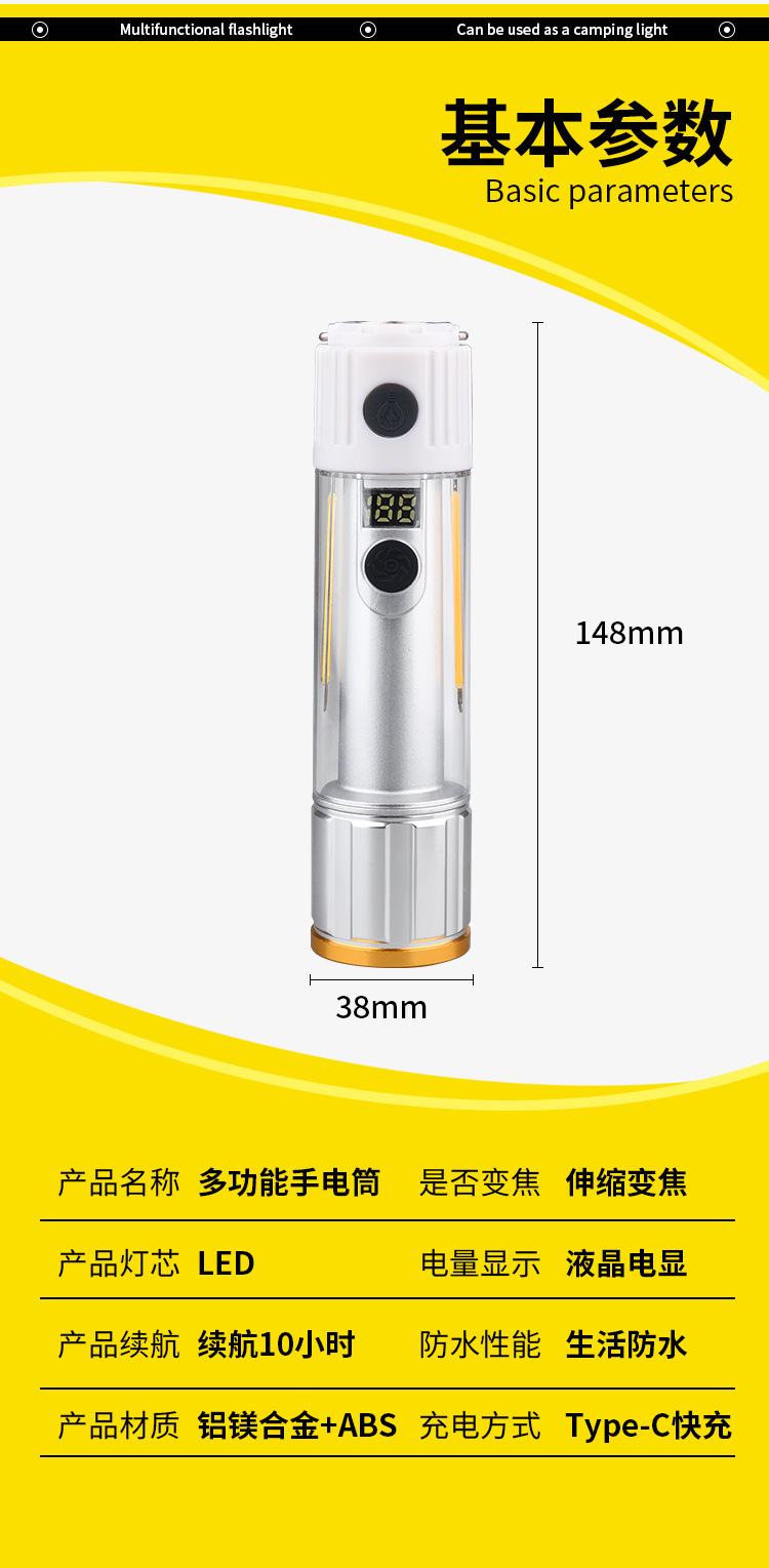 새로운 다기능 손전등 강한 빛 장거리 야외 후크 작업 조명 충전식 캠핑 텐트 조명스토어 가기
